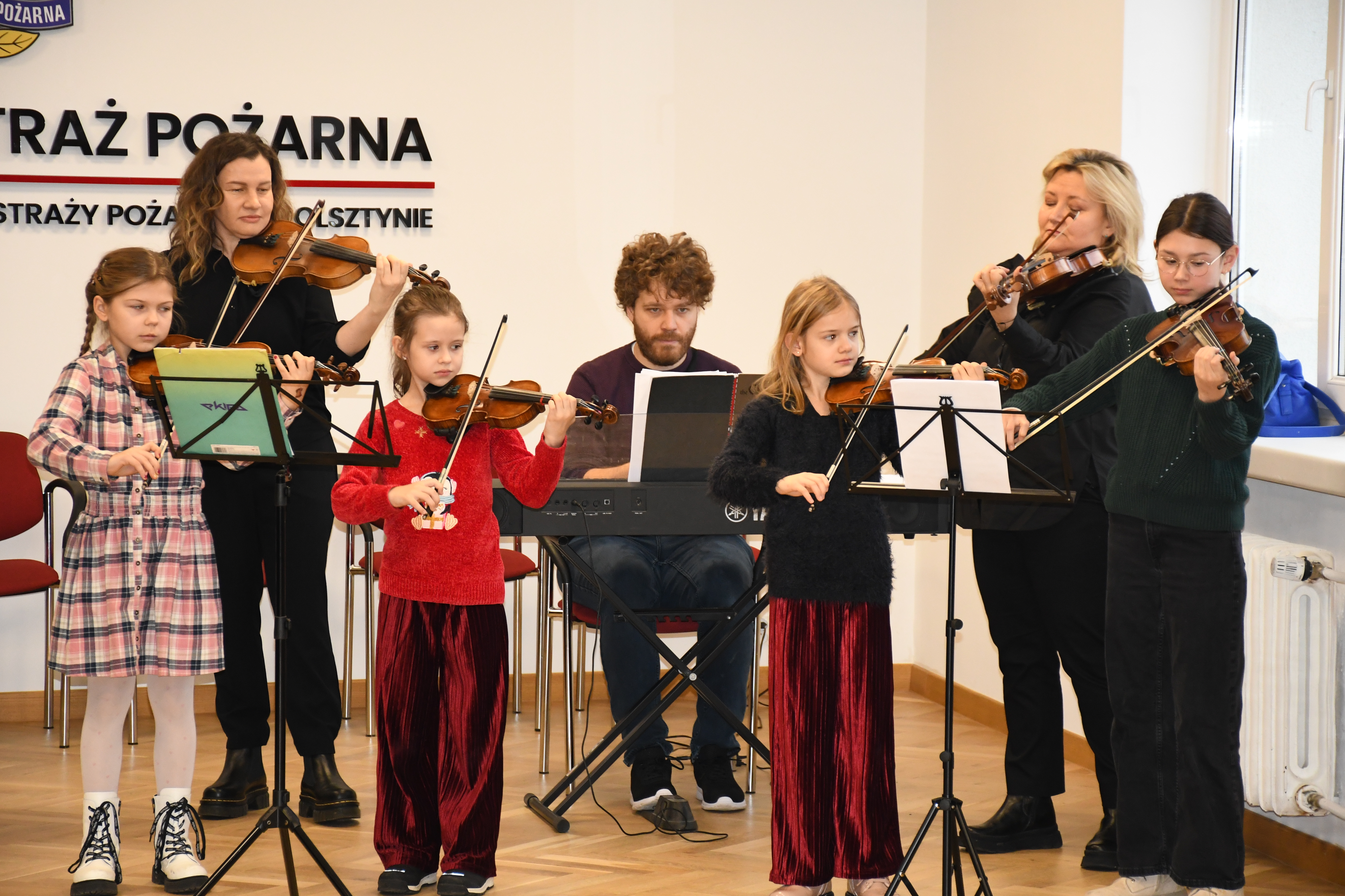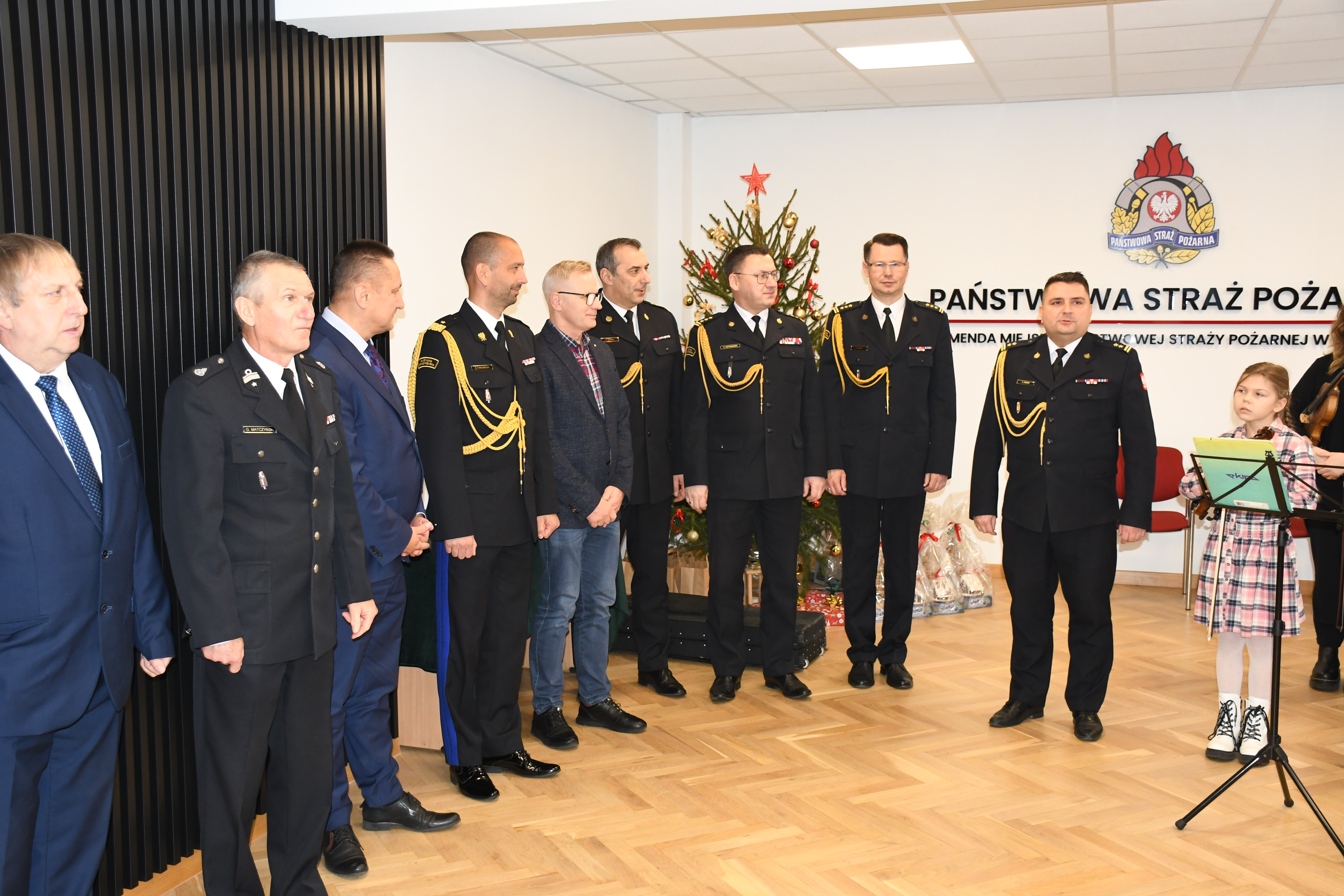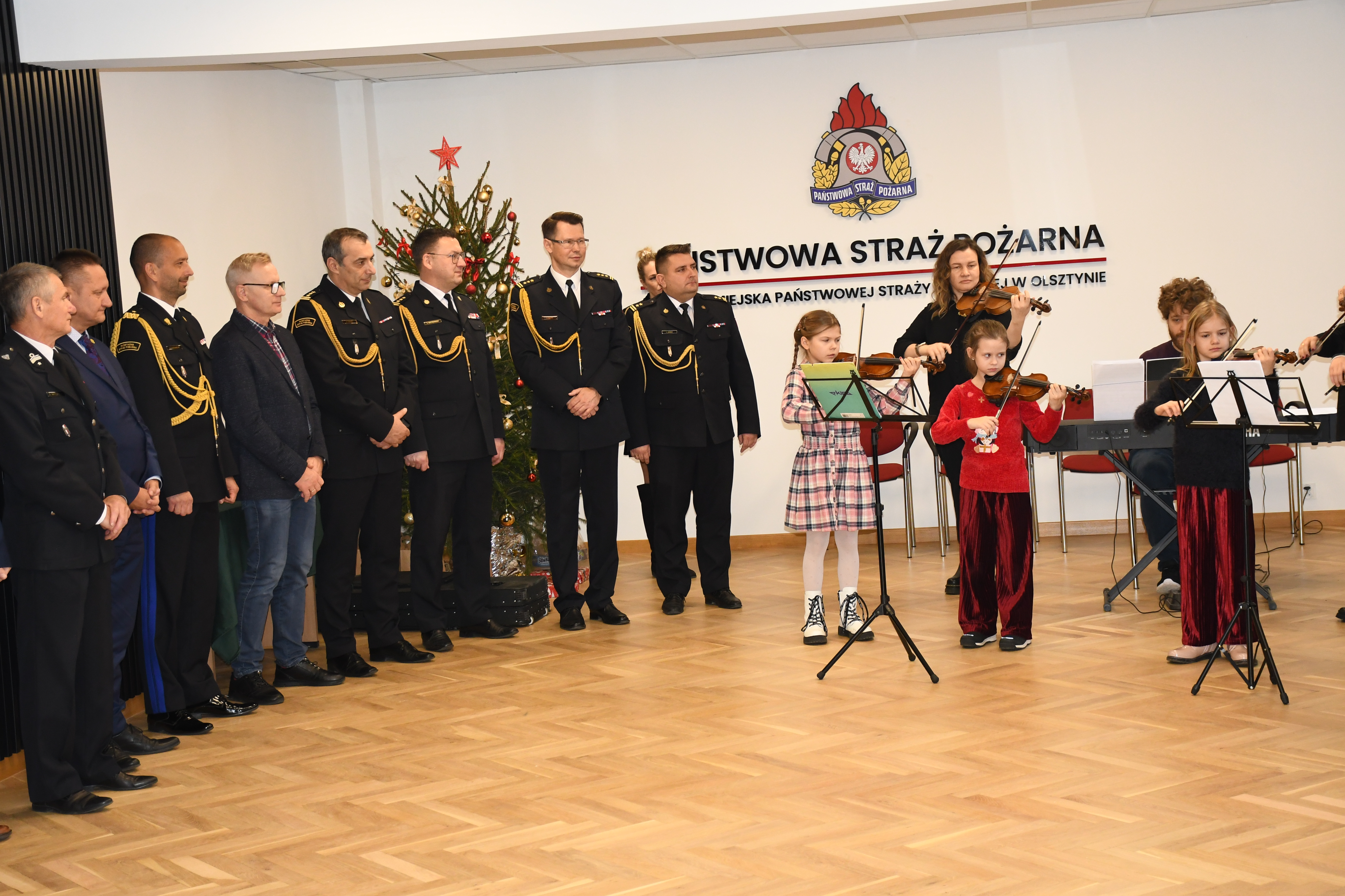 Przybyłych przywitał bryg. Łukasz Jasiński olsztyński Komendant Miejski PSP, po czym odbył się mini recital kolęd w wykonaniu nauczycieli i uczniów Państwowej Szkoły Muzycznej im. Fryderyka Chopina w Olsztynie.