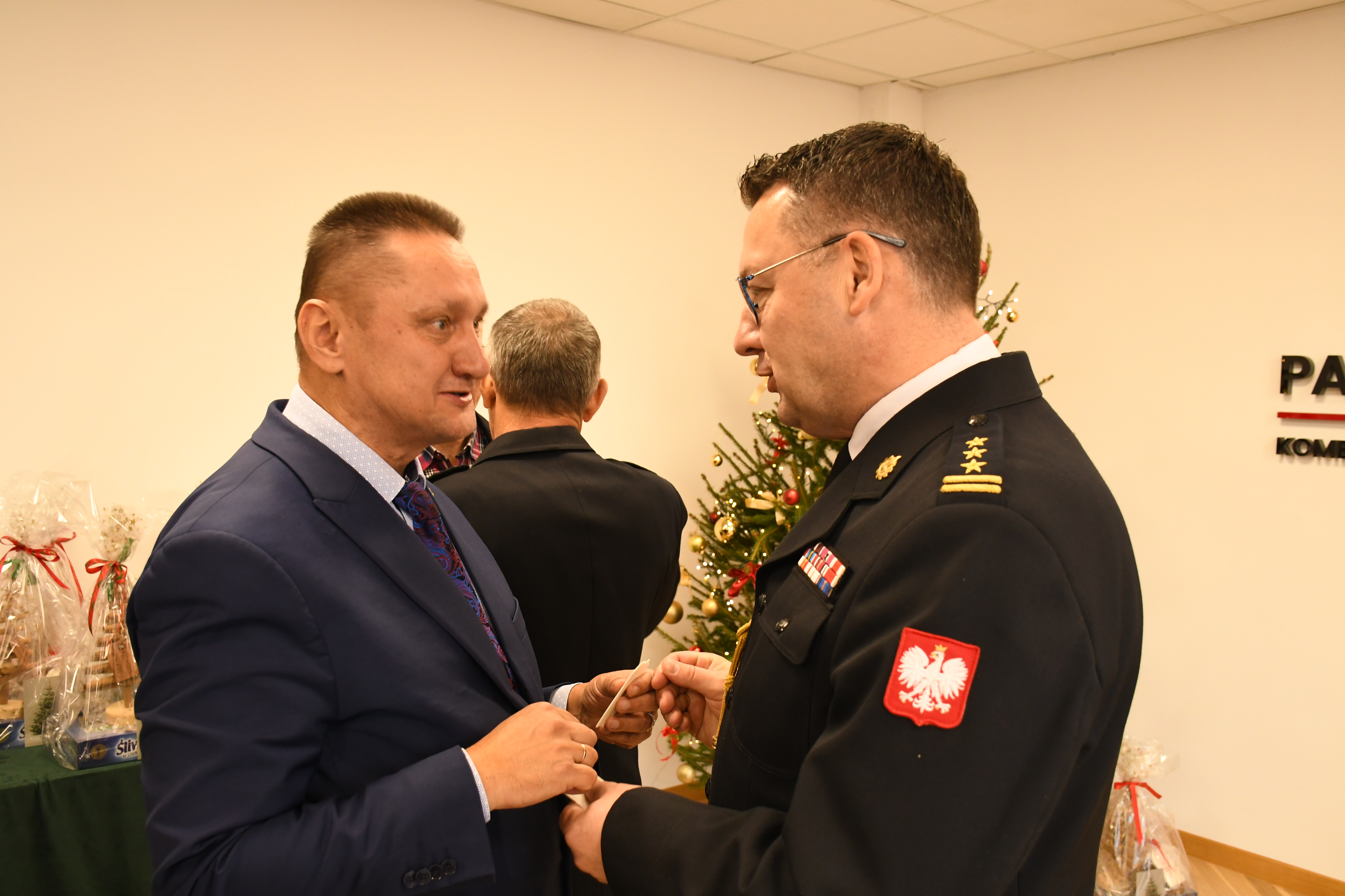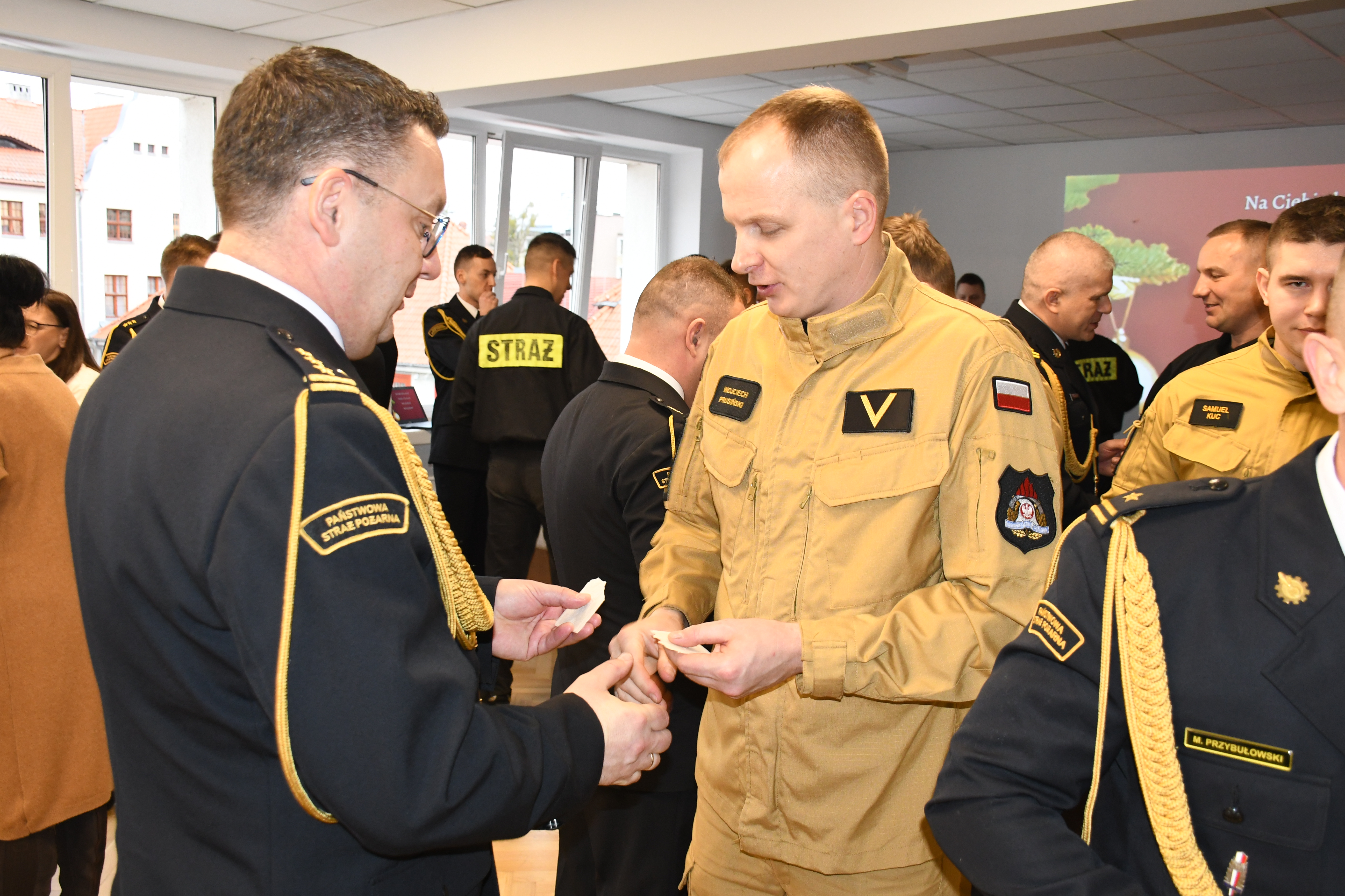 W czwartkowe przedpołudnie 19 grudnia w sali konferencyjnej Komendy Miejskiej Państwowej Straży Pożarnej w Olsztynie zgromadzili się funkcjonariusze oraz pracownicy komendy, oraz zaproszeni goście, między innymi nadbryg. Michał Kamieniecki Warmińsko-Mazurski Komendant Wojewódzki PSP wraz z Zastępcami st. bryg. Andrzejem Harhajem i st. bryg. Tomaszem Ostrowskim, na spotkaniu opłatkowym.