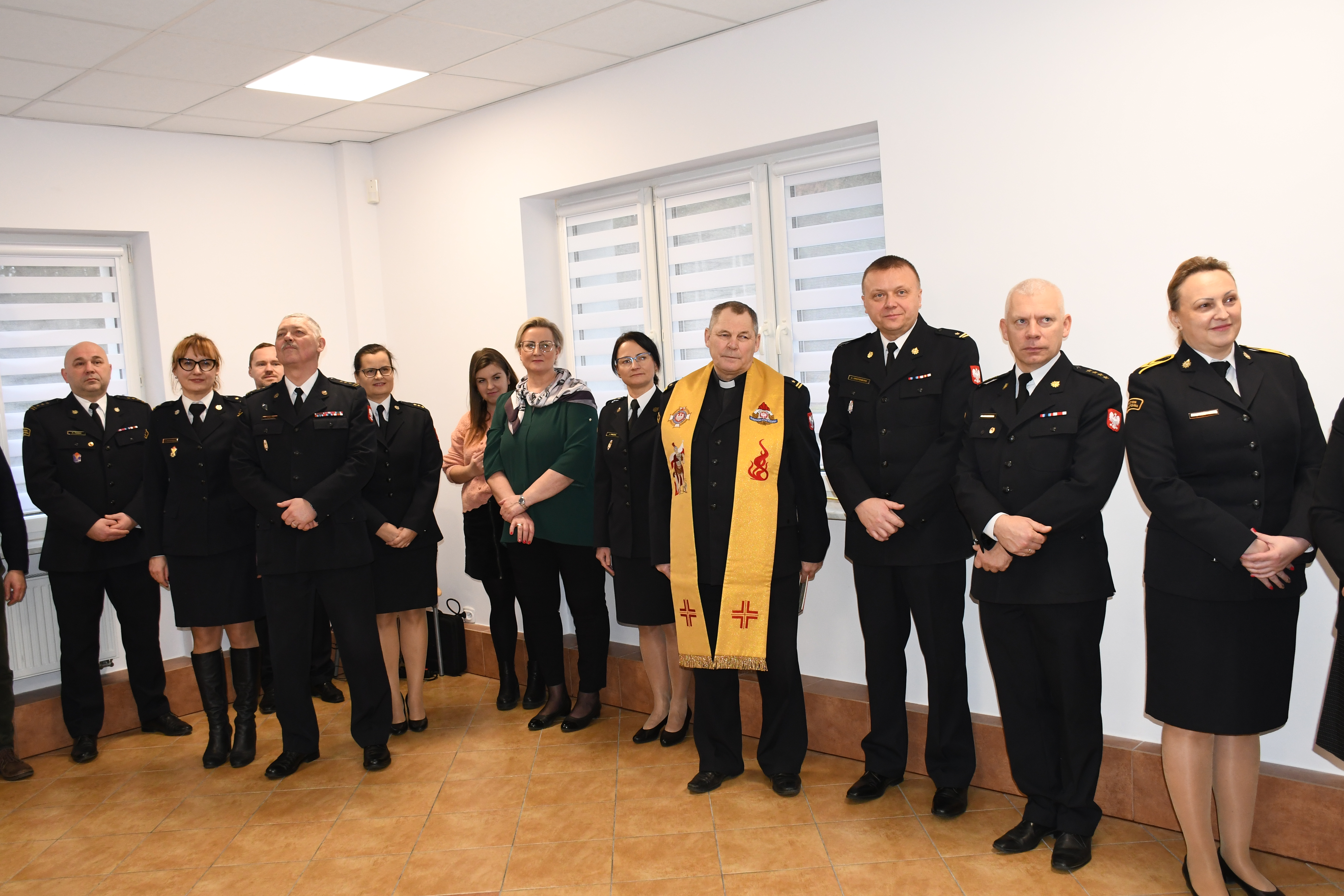 Fragment Ewangelii odczytał mł. bryg. ks. Andrzej Bawirsz Kapelan Wojewódzki Strażaków, który pobłogosławił zgromadzonych i poświęcił opłatki.