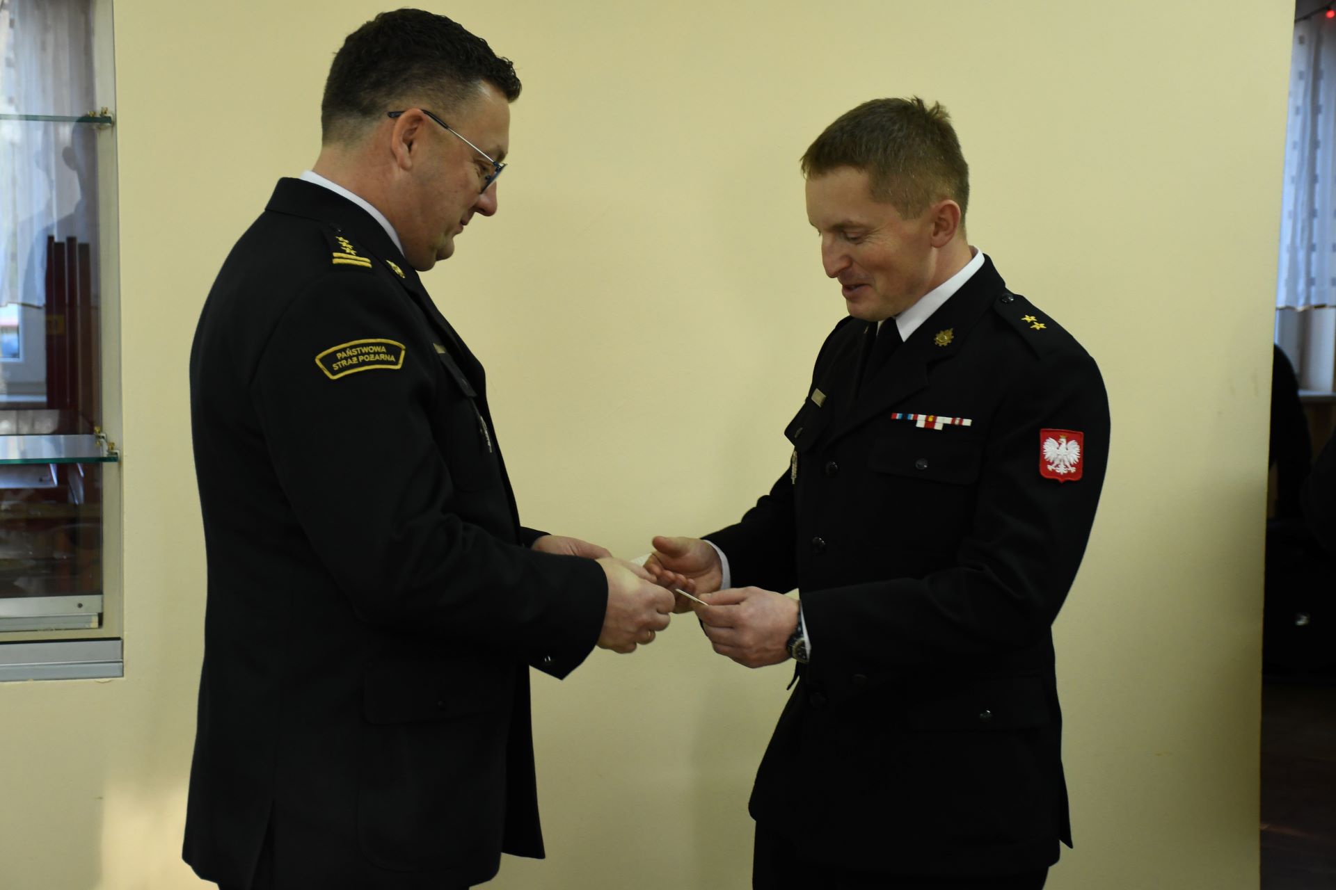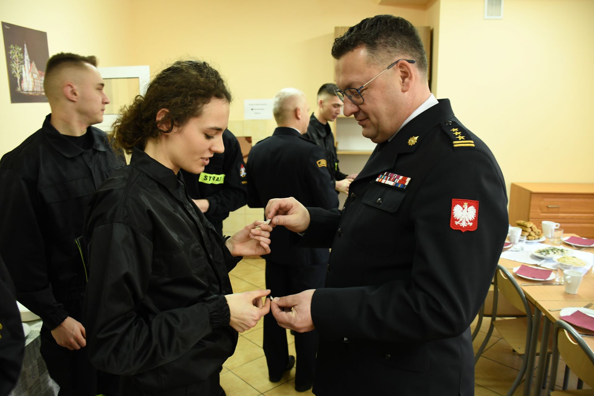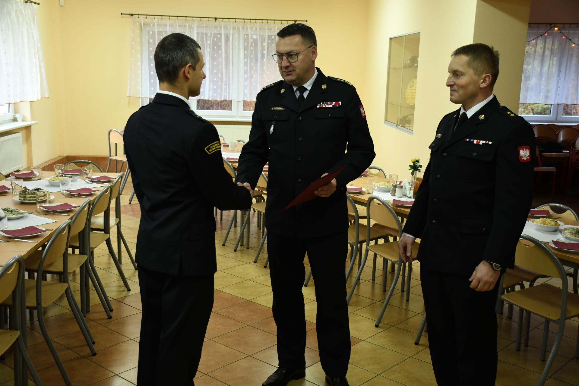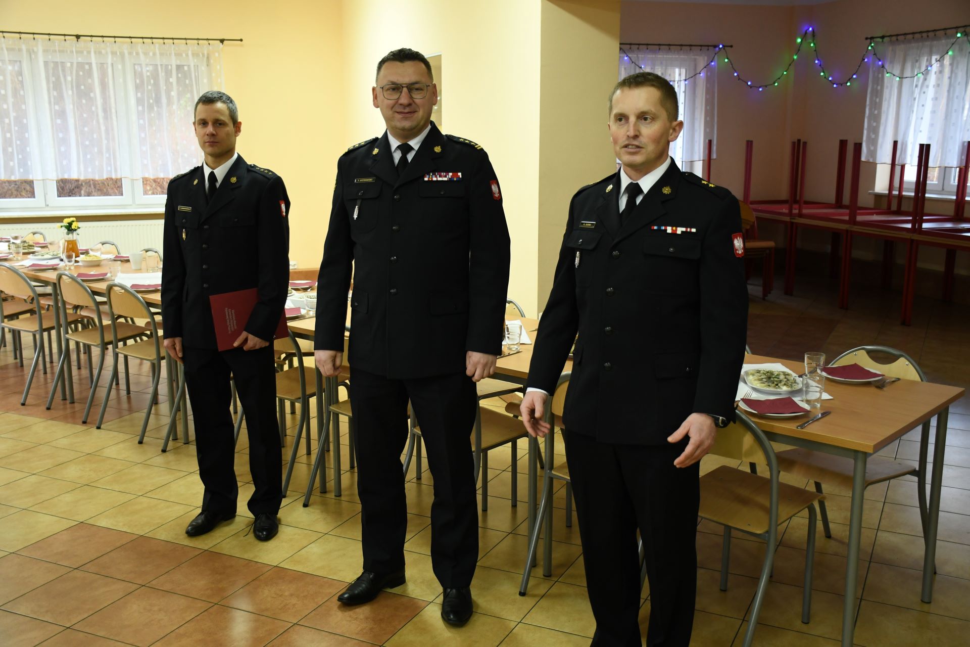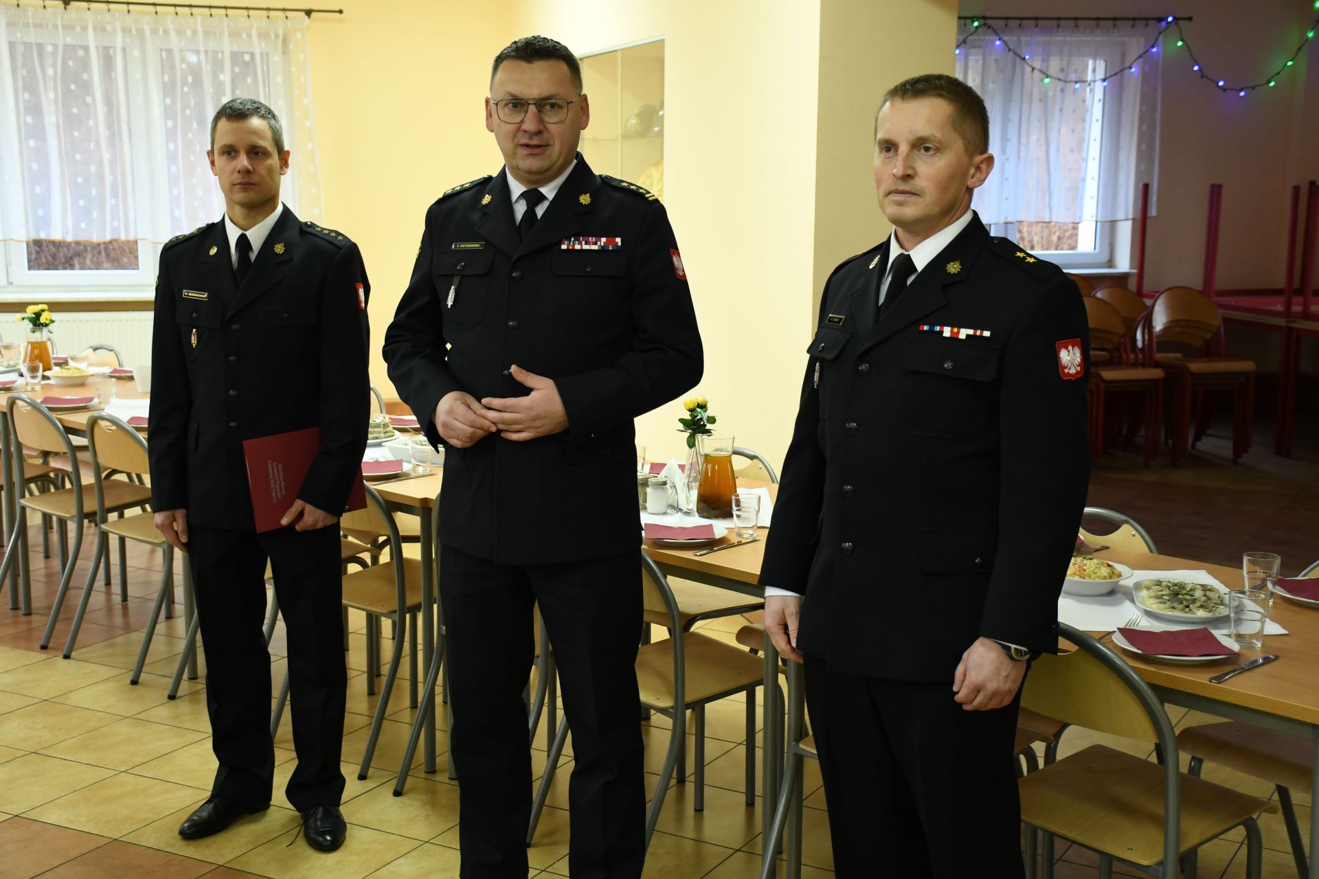 20 grudnia w Ośrodku Szkolenia Komendy Wojewódzkiej Państwowej Straży Pożarnej w Olsztynie odbyło się spotkanie wigilijne, w którym udział wzięli słuchacze kursu podstawowego w zawodzie strażak, kadra ośrodka oraz st. bryg. Tomasz Ostrowski Zastępca Warmińsko-Mazurskiego Komendanta Wojewódzkiego PSP. Podczas spotkania w imieniu nadbryg. Tomasza Komoszyńskiego Warmińsko-Mazurskiego Komendanta Wojewódzkiego PSP st. bryg. Tomasz Ostrowski wręczył decyzję o mianowaniu na stanowisko zastępcy naczelnika ośrodka szkolenia st. kpt. Michałowi Senderowskiemu. Zgromadzonych przywitał mł. kpt. Rafał Suski – Naczelnik ośrodka szkolenia, a Zastępca Komendanta Wojewódzkiego skierował życzenia w imieniu kierownictwa Komendy Wojewódzkiej PSP w Olsztynie i swoim na zbliżające się święta bożego narodzenia. Następnie przy dźwiękach kolęd nadszedł czas na wzajemne składanie sobie życzeń i przełamywanie się opłatkiem