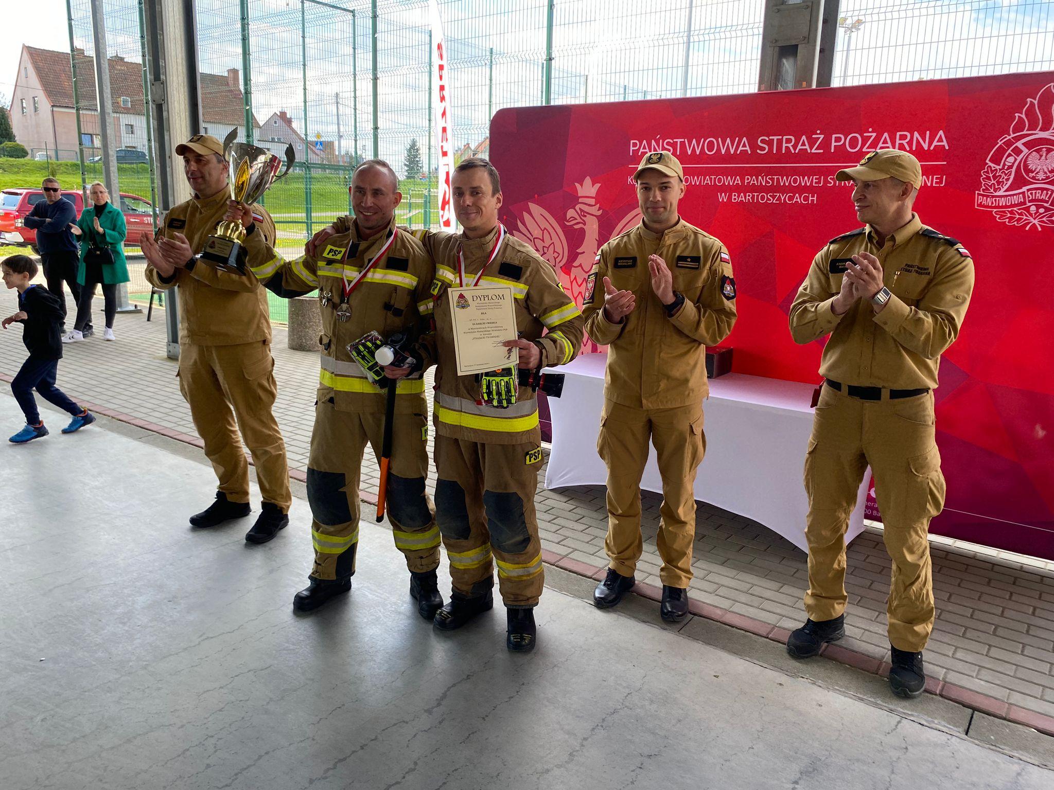 Mistrzami Województwa zostali strażacy z Komendy Powiatowej PSP w Ełku – Rafał Zabłocki i Łukasz Zub. Wicemistrzostwo zdobyli Paweł Sokołowski i Łukasz Łukaszewski z Komendy Powiatowej PSP w Szczytnie, a trzecie miejsce zajęli strażacy z kętrzyńskiej Komendy Powiatowej PSP – Dominik Brunejko i Tomasz Olechnowicz.