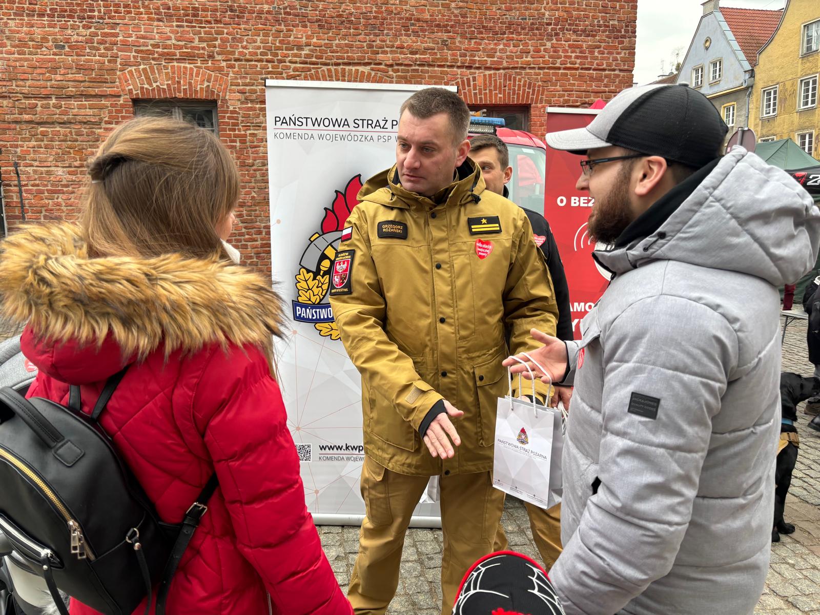 Na olsztyńskim Starym Mieście strażacy z Komendy Wojewódzkiej PSP w Olsztynie, Komendy Miejskiej PSP w Olsztynie oraz z OSP Klebark Wielki rozdali kilkadziesiąt czujek tlenku węgla i czujek dymu. Co bardzo nas strażaków ucieszyło, wiele osób już takie czujki ma zamontowane w swoich domach.