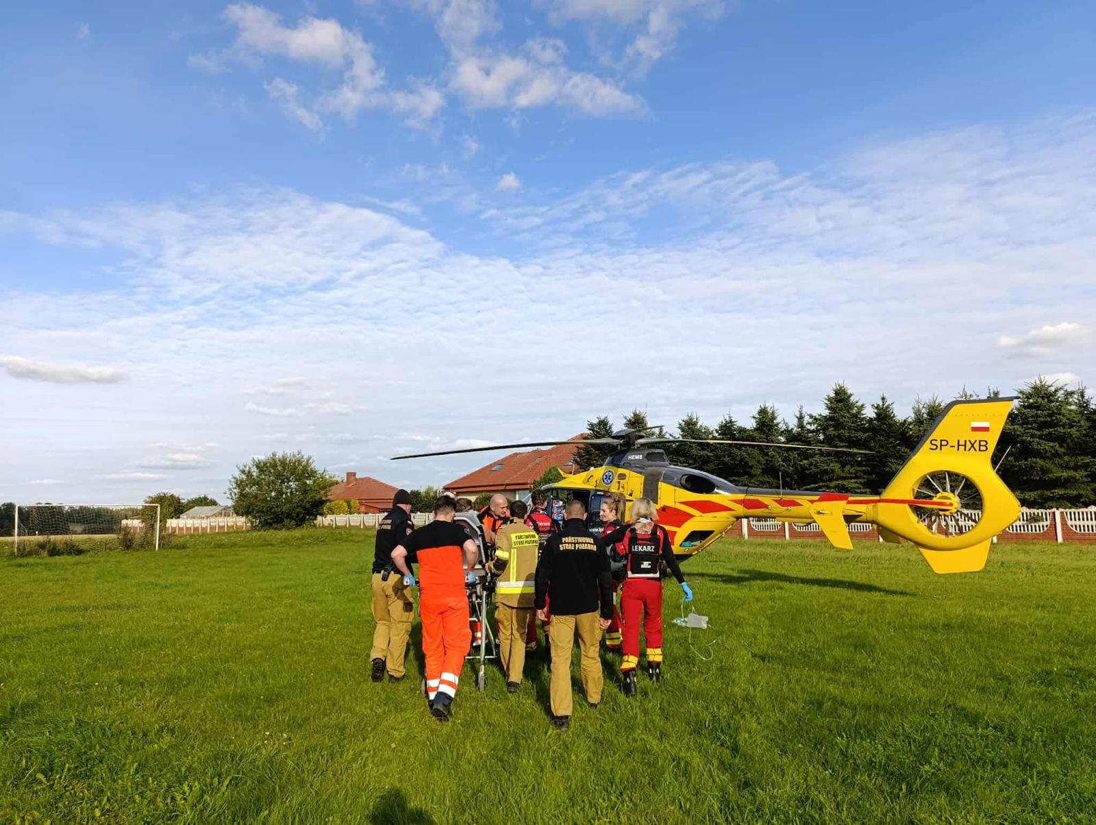 Strażacy, gdy przybyli na miejsce zdarzenia, zastali leżącego na trawniku nieprzytomnego mężczyznę bez oznak życia. Natychmiast podjęli resuscytację krążeniowo-oddechową. Prowadzili ją do momentu przybycia zespołu PRM, który przejął poszkodowanego i kontynuował działania ratownicze. Pod opieką zespołu PRM i załogi śmigłowca Lotniczego Pogotowia Ratunkowego czynności życiowe u mężczyzny powróciły. Poszkodowany został zabrany śmigłowcem LPR do szpitala.