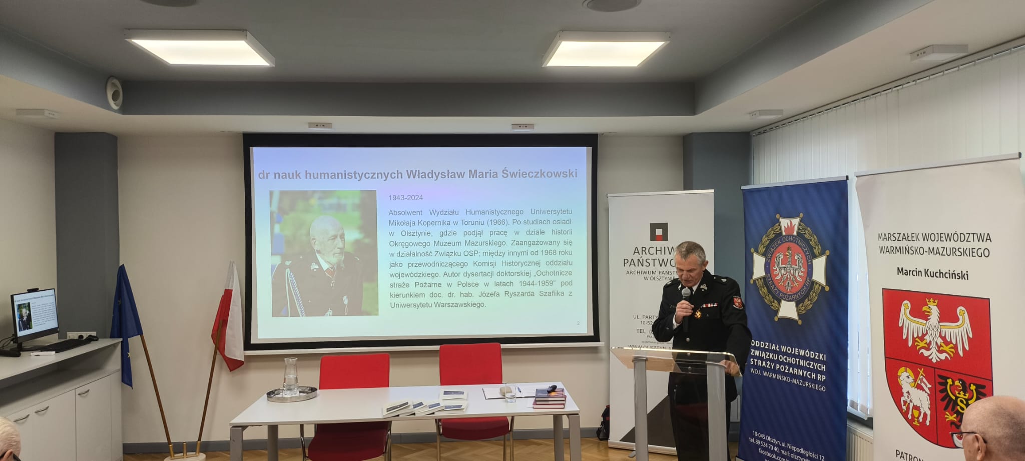 Na zakończenie odbyła się promocja publikacji dr. Władysława Marii Świeczkowskiego „Z uwarunkowań działalności pożarniczej w województwie olsztyńskim w latach 1945-1975”.