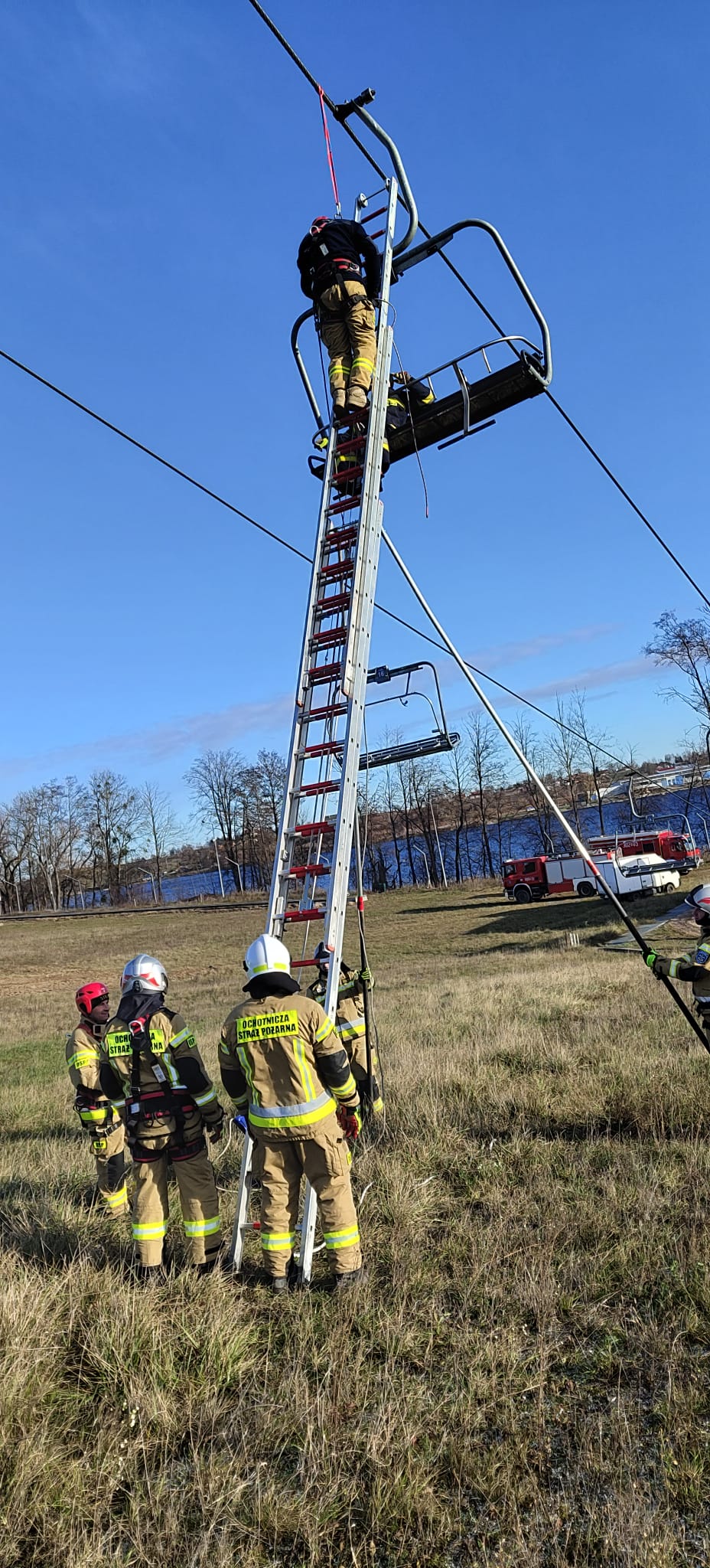 Strażacy z jednostek Ochotniczych Straży Pożarnych w: Mikołajkach, Woźnicach i Olszewie odbyli szkolenie z zakresu ratownictwa wysokościowego. Nieprzypadkowo w szkoleniu tym wzięły właśnie te jednostki. W Mikołajkach znajduje się krzesełkowa kolej linowa, z której w okresie zimowym korzysta wielu turystów. Jednostki te swoje siedziby mają nieopodal właśnie tego obiektu. Szkolenie, które przeprowadził mł. kpt. Paweł Zapadka wojewódzki koordynator ratownictwa wysokościowego z Komendy Wojewódzkiej PSP w Olsztynie, obejmowało zakresem zajęcia teoretyczne oraz z ćwiczenia praktyczne w tematyce ewakuacji osób z kolei linowej przy wykorzystaniu drabin pożarniczych. Strażacy poznali techniki szybkiej ewakuacji osób uwięzionych w przypadku zatrzymania kolejki linowej.
