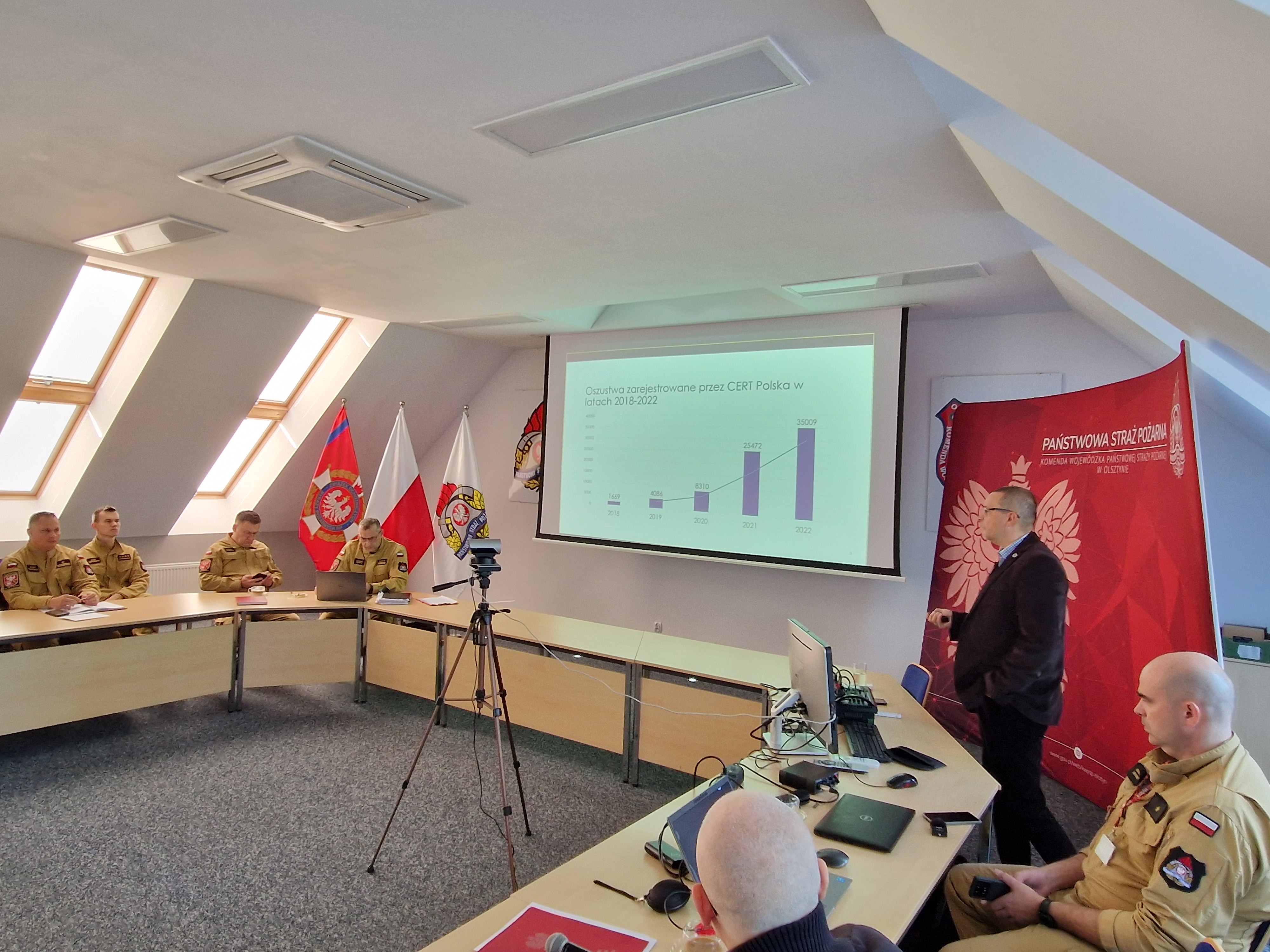 W Ośrodku Szkolenia Komendy Wojewódzkiej Państwowej Straży Pożarnej w Olsztynie oraz w formie transmisji online Komenda Wojewódzka PSP zorganizowała cykl szkoleń mających na celu podniesienie świadomości na temat zagrożeń wynikających z korzystania z Internetu w środowisku pracy. Szkolenia zostały przeprowadzone we współpracy z Centralnym Biurem Zwalczania Cyberprzestępczości, oddziałem w Olsztynie, a ich prowadzącym był sierżant sztabowy Rafał Stępień.