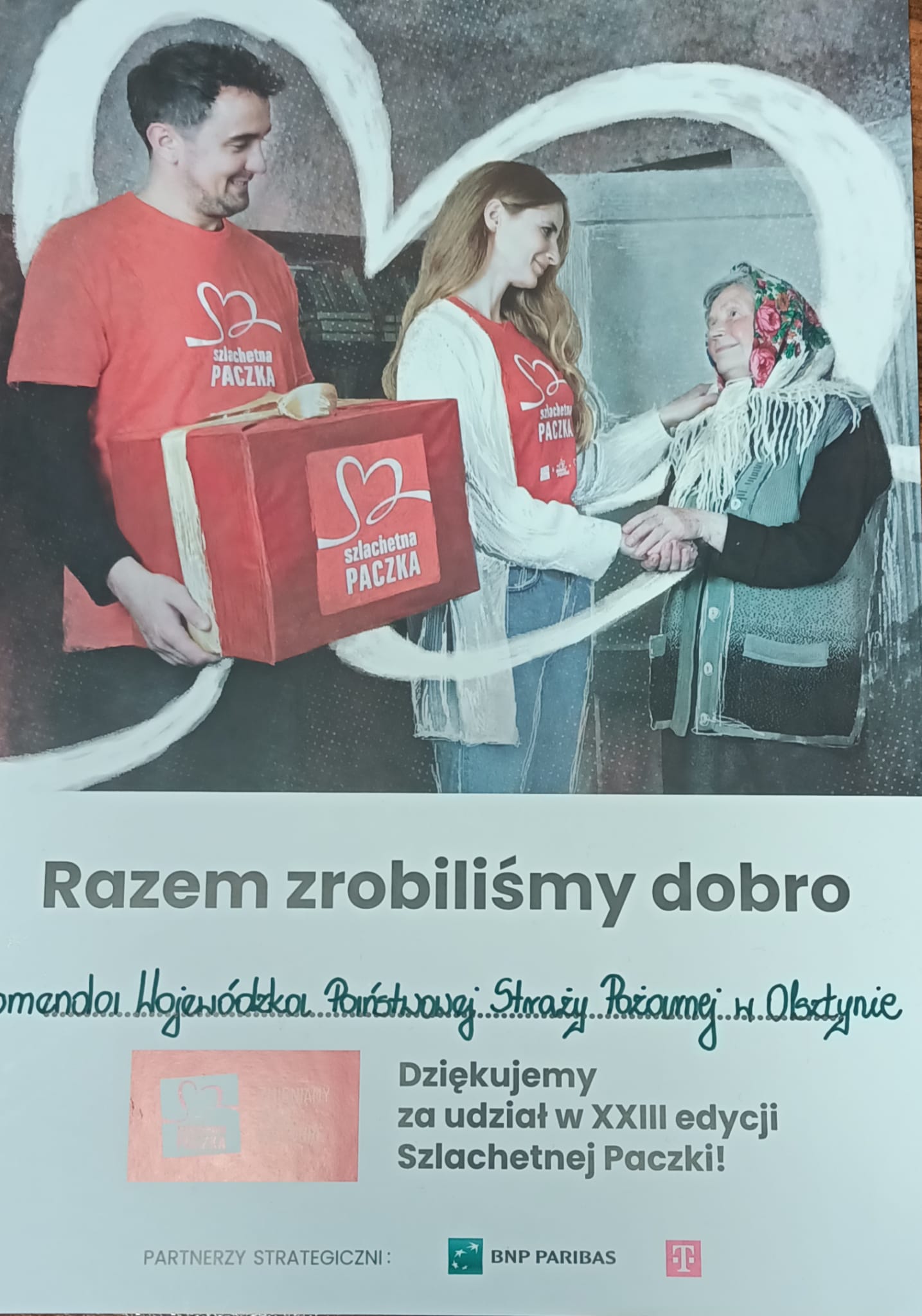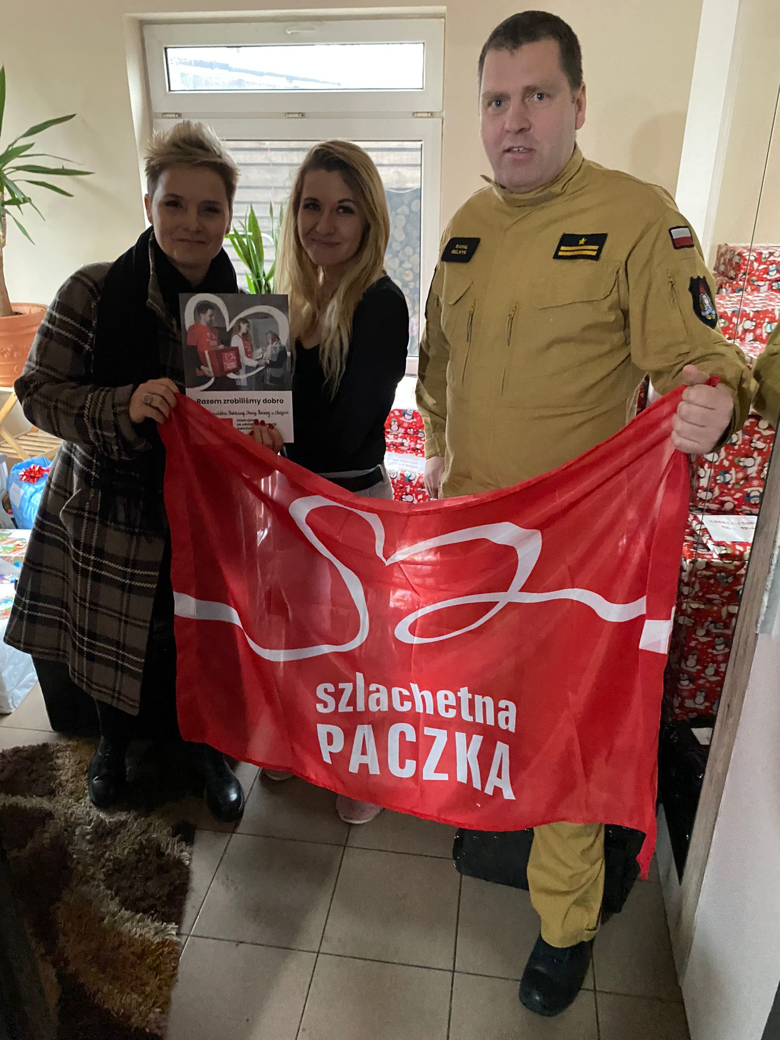 Funkcjonariusze i pracownicy Komendy Wojewódzkiej Państwowej Straży Pożarnej w Olsztynie kolejny raz przygotowali „Szlachetną Paczkę”. W tym roku prezenty trafiły do rodziny z powiatu szczycieńskiego. Czerwiec bieżącego roku zmienił historię tej rodziny. Z dnia na dzień musieli nauczyć się żyć bez jedynego żywiciela rodziny. Mąż pani Anny zmarł, osierocił troje malutkich dzieci. Pani Anna została sama, bez pracy i pomysłu na dalszą przyszłość. Najstarszy z dzieci Jan miesiąc po stracie taty zachorował na cukrzycę typu 1. Codziennością dla niego stała się pompa insulinowa, która musi stale kontrolować. W wyniku straty ojca pojawił się u chłopca stres, który spowodował łysienie na głowie. Strasznie przeżył odejście jednego z rodziców. Chłopiec również zmaga się z bielactwem, które najbardziej jest widoczne na dłoniach (odziedziczył je po tacie). Mimo młodego wieku musi zmagać się z tyloma chorobami. Natan to mała "kopia" taty. Przebojowy chłopiec, który po śmierci tatusia prosiłby nazywać go jego imieniem. Antonii to malutki chłopiec, ma powalającą urodę dzięki swoim pięknym, długim blond włosom. Do rodziny zgodnie ze zgłoszonymi potrzebami trafiły między innymi laptop i telewizor, a także odzież i obuwie. Ponadto wyposażenie szkolne dla dzieci, zabawki oraz masa artykułów spożywczych. To już tradycja, że w okresie przedświątecznym z wielką chęcią i szczodrością włączamy się w niesienie pomocy osobom potrzebującym w akcji „Szlachetna Paczka”.