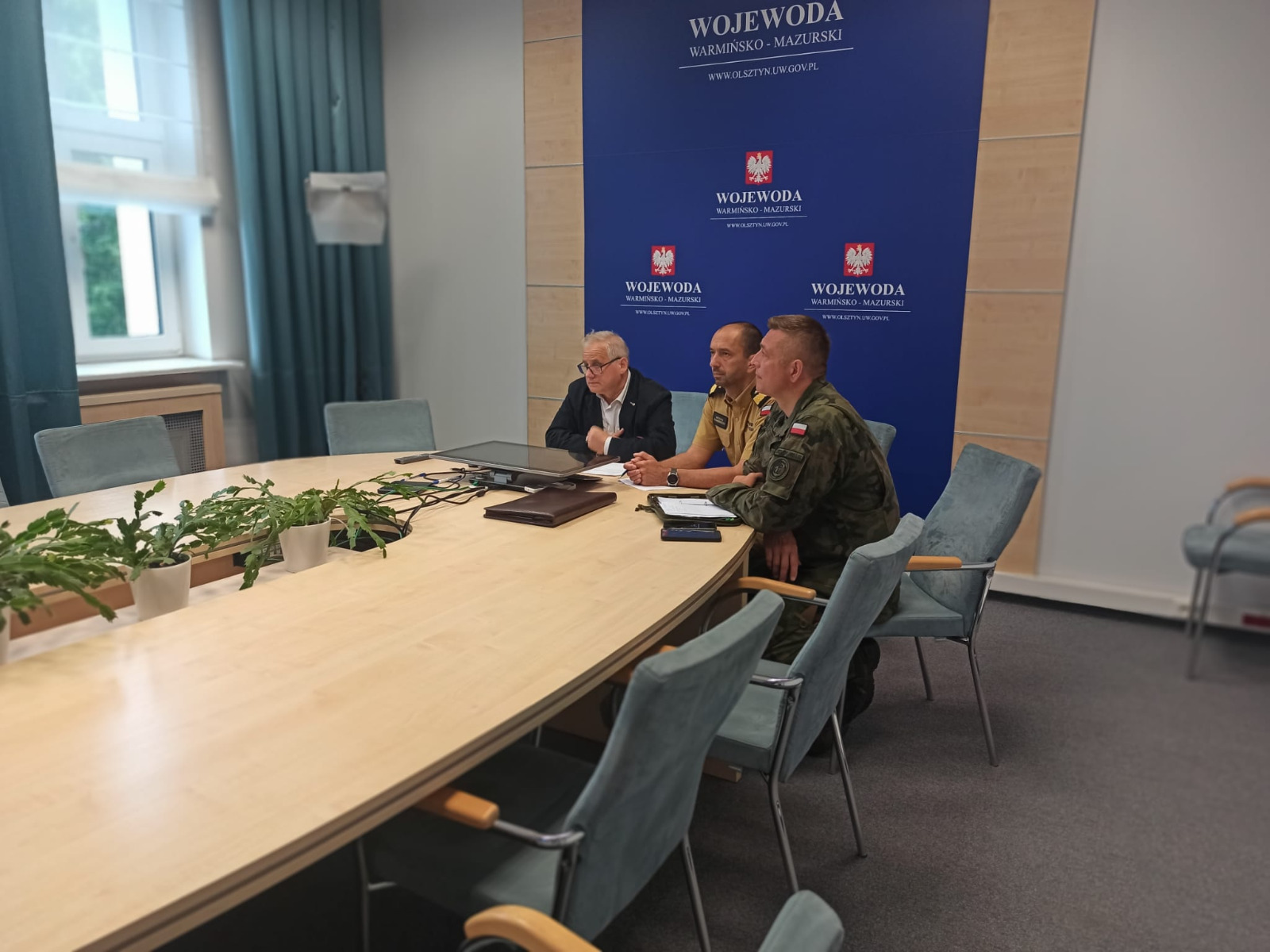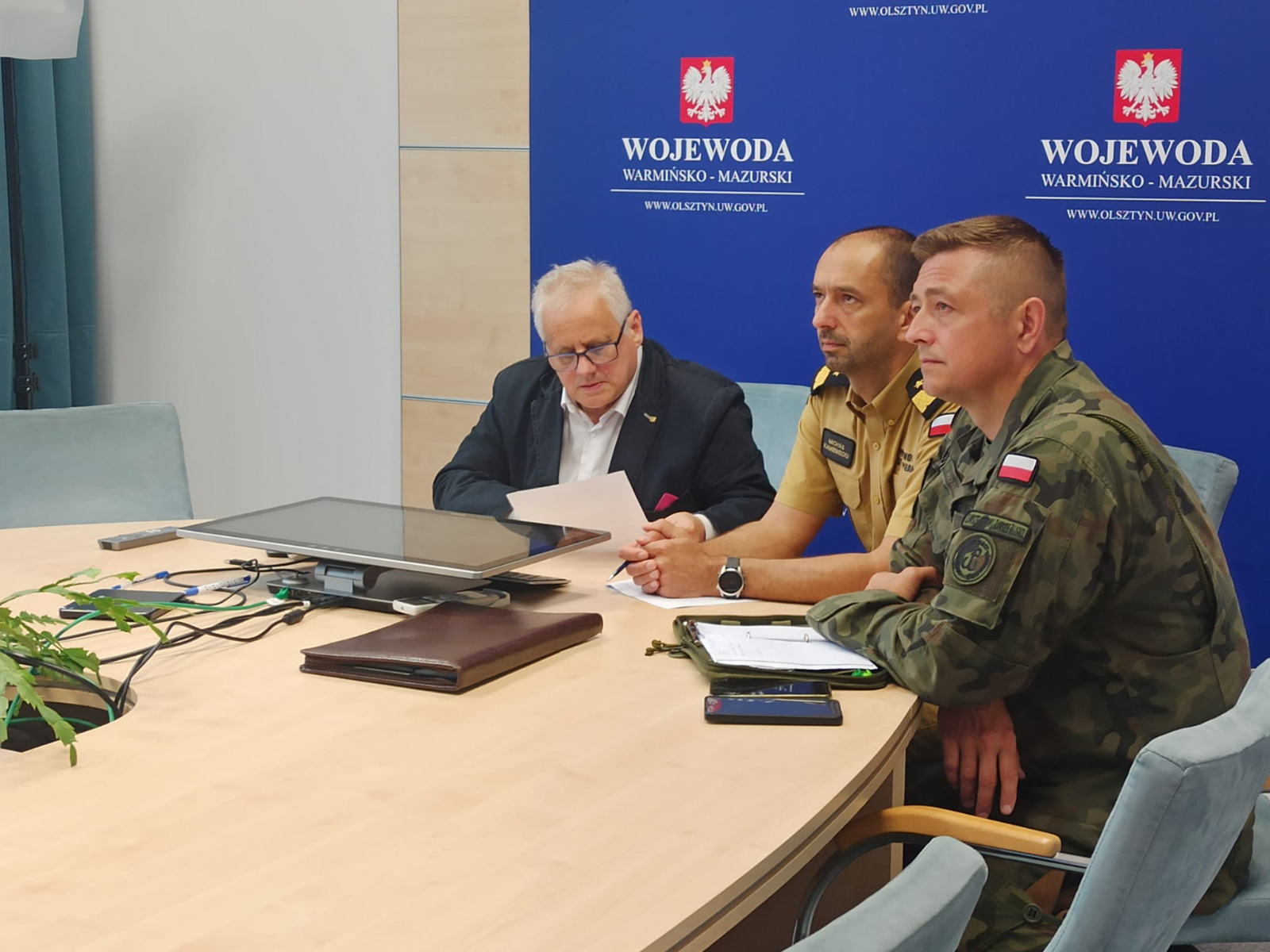 Dziś w Urzędzie Wojewódzkim w Olsztynie odbył się sztab kryzysowy w związku z intensywnymi opadami deszczu. W odprawie udział wzięli wszyscy wojewodowie w kraju – w Olsztynie uczestniczył Zbigniew Szczypiński Wicewojewoda Warmińsko-Mazurski, a Państwową Straż Pożarną reprezentował nadbryg. Michał Kamieniecki Warmińsko-Mazurski Komendant Wojewódzki PSP.