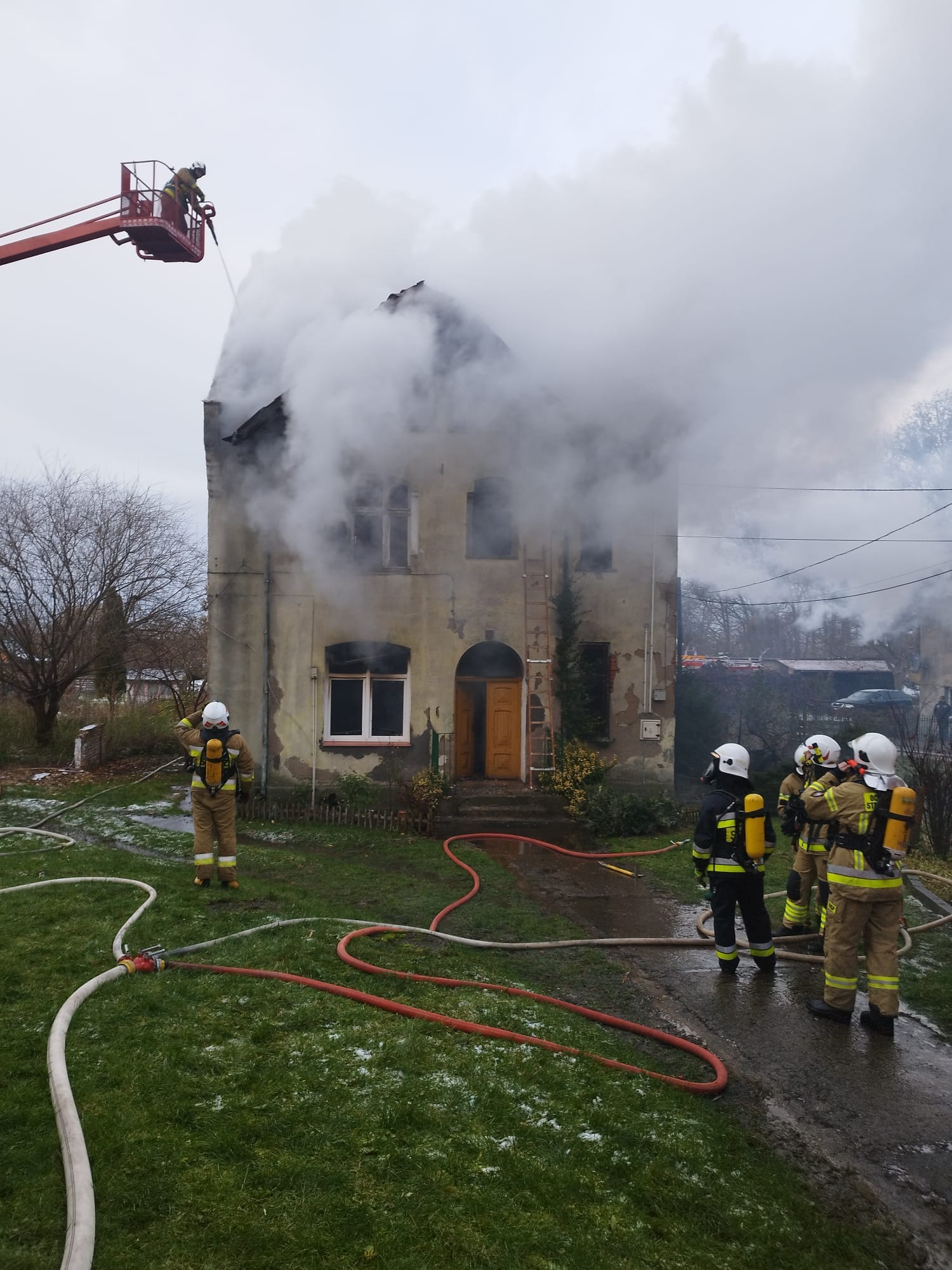 Kilkanaście minut przed godziną siódmą 24 listopada wpłynęło zgłoszenie do stanowiska kierowania komendanta miejskiego PSP w Olsztynie z informacją o pożarze budynku mieszkalnego w Jezioranach – pow. olsztyński. Ze zgłoszenia wynikało, że w budynku mogli przebywać mieszkańcy.