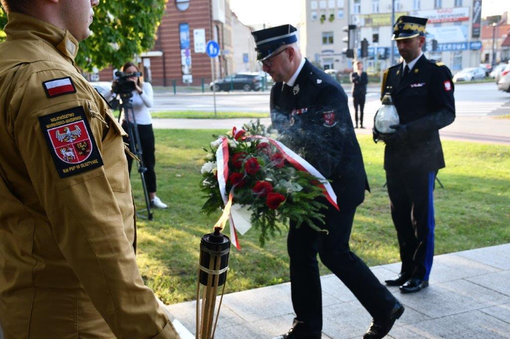 W środę 11 września w rocznicę zamachu na wieże World Trade Center, nadbryg. Michał Kamieniecki Warmińsko-Mazurski Komendant Wojewódzki PSP wraz z Radosławem Królem Wojewodą Warmińsko-Mazurskim, insp. Mirosławem Elszkowskim Komendantem Wojewódzkim Policji w Olsztynie oraz dh. Maciejem Jasińskim Dyrektorem Zarządu Wykonawczego ZOW ZOSP RP w Olsztynie złożyli kwiaty i znicze pod pomnikiem Strażakom Poległym w Akcji.