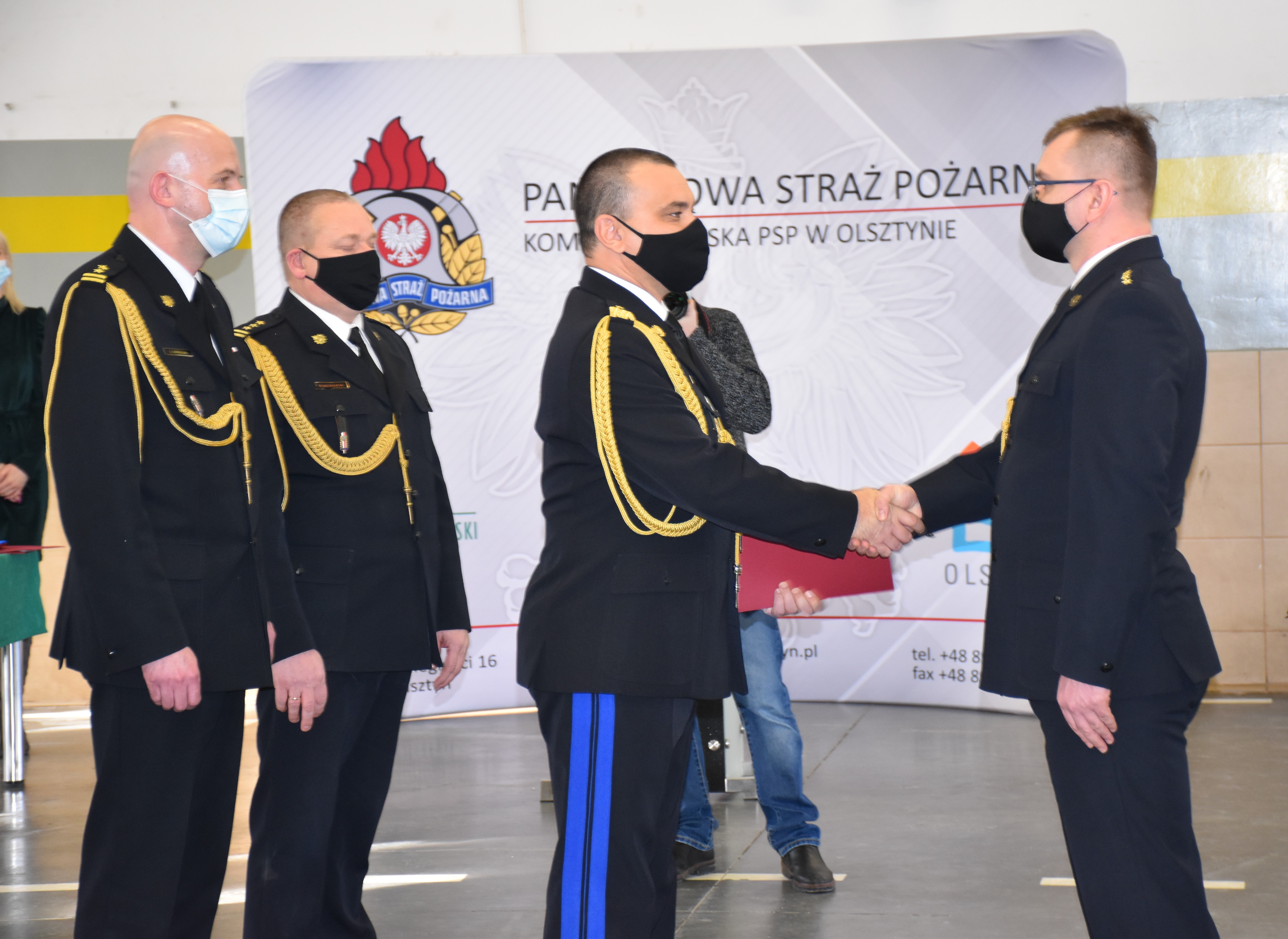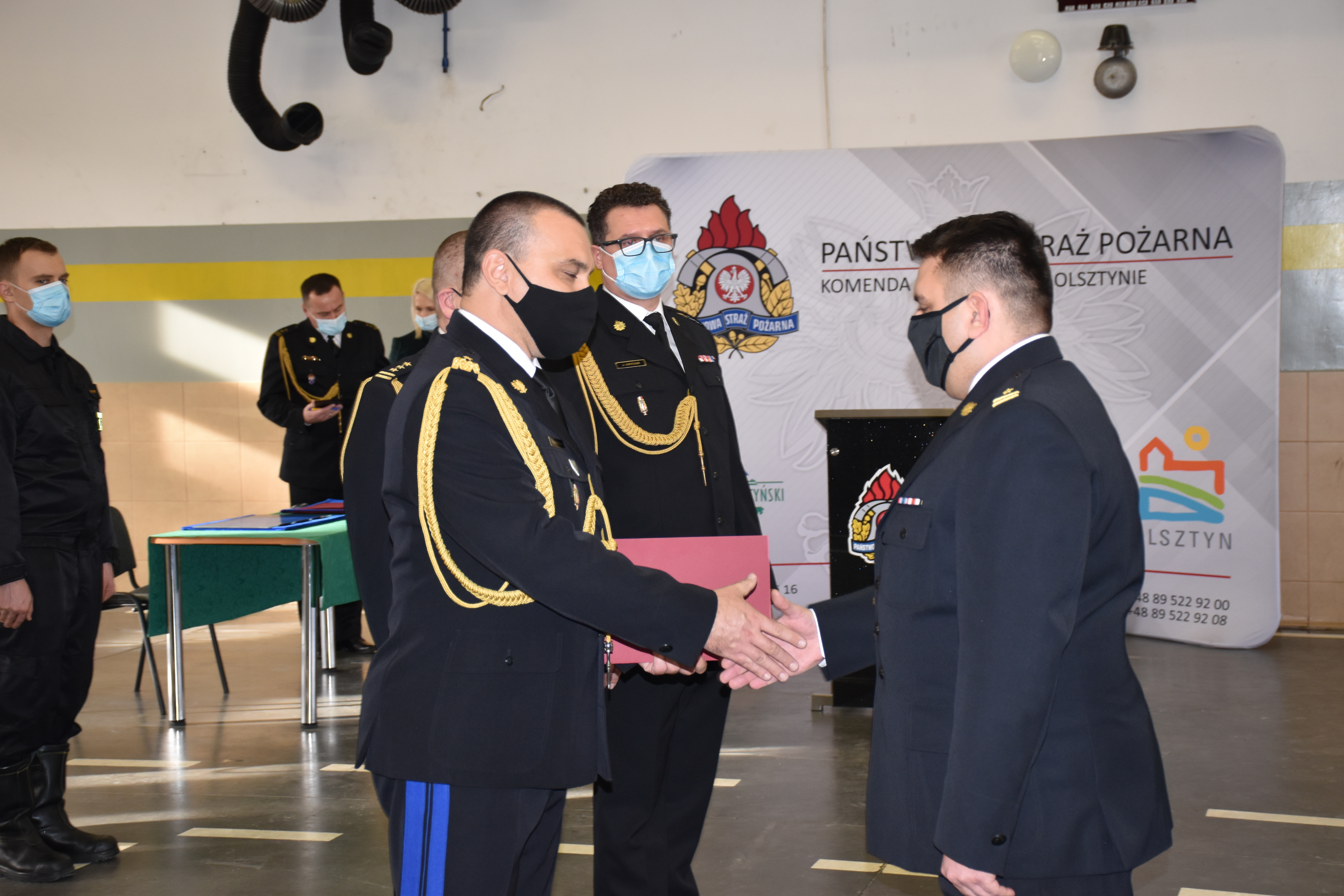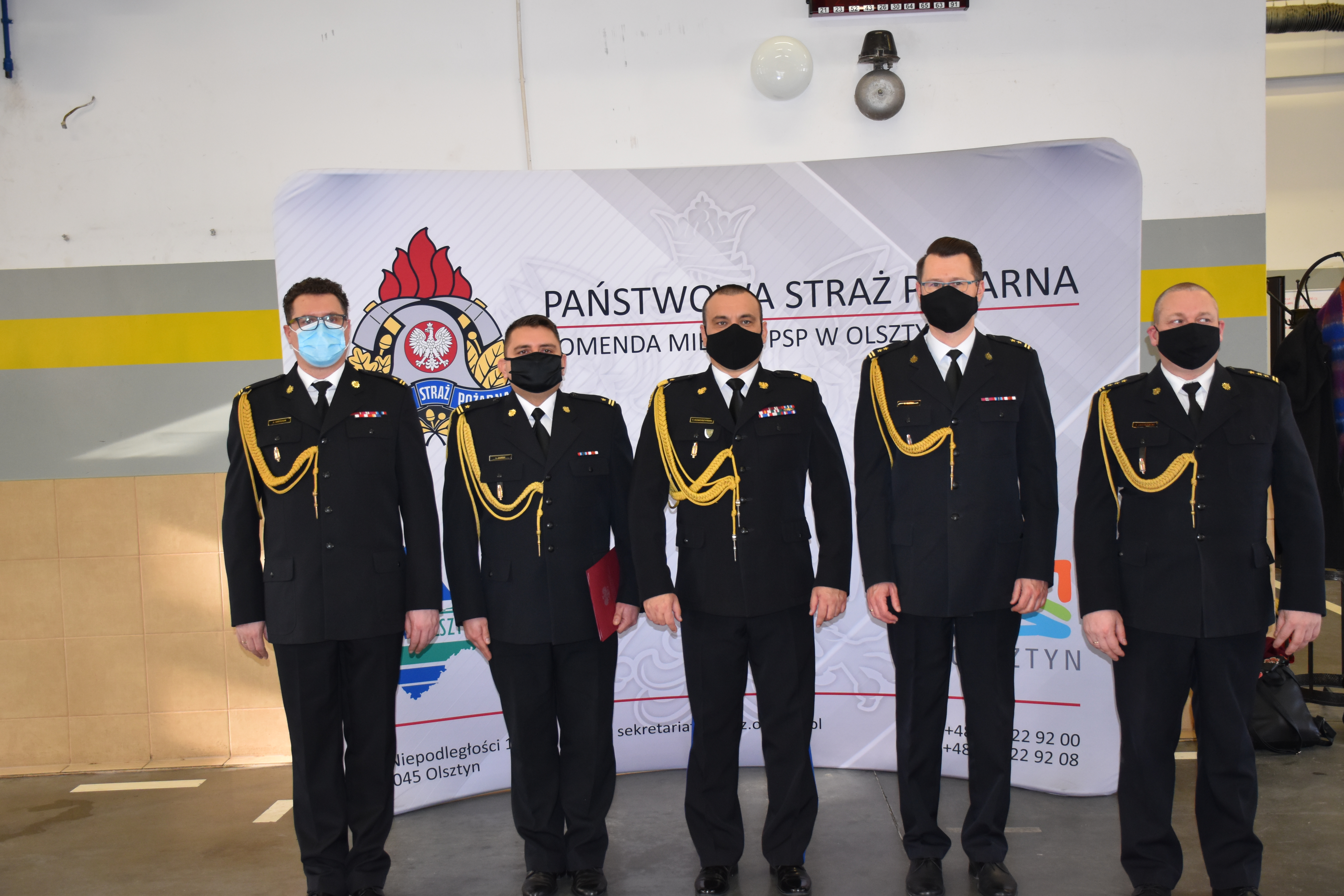 1 lutego 2021 roku na terenie Jednostki Ratowniczo-Gaśniczej nr 1 w Olsztynie, z udziałem: Warmińsko-Mazurskiego Komendanta Wojewódzkiego PSP - nadbryg. Tomasza Komoszyńskiego, Zastępcy Warmińsko-Mazurskiego Komendanta Wojewódzkiego PSP - st. bryg. Adama Jastrzębskiego, Komendanta Miejskiego PSP w Olsztynie - mł. bryg. Jarosława Gryciuka, Komendanta Powiatowego PSP w Działdowie - bryg. Leszka Góralskiego, Zastępcy Komendanta Miejskiego PSP w Olsztynie - bryg. Sergiusza Dłuskiego, funkcjonariuszy i pracowników cywilnych KM PSP w Olsztynie,