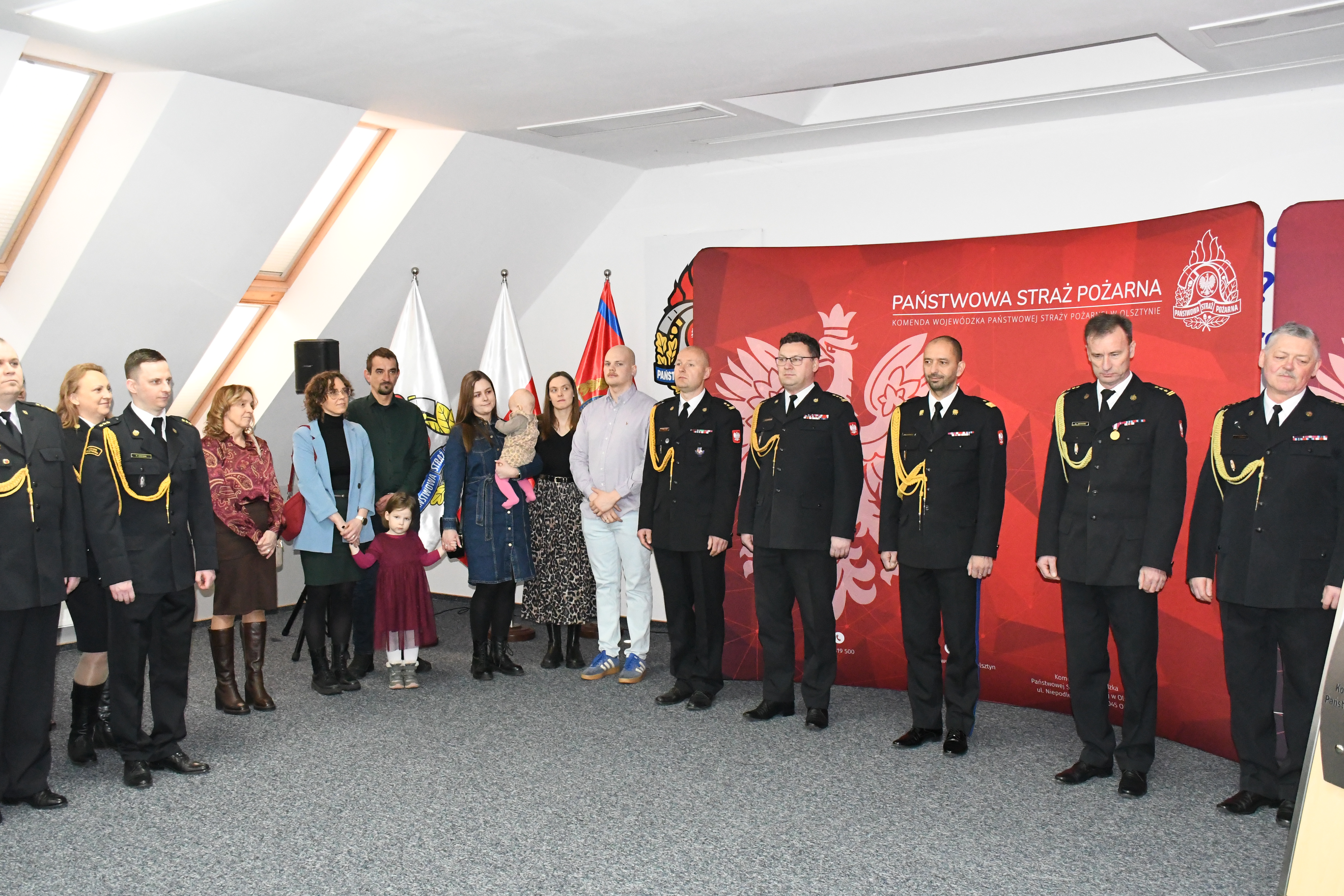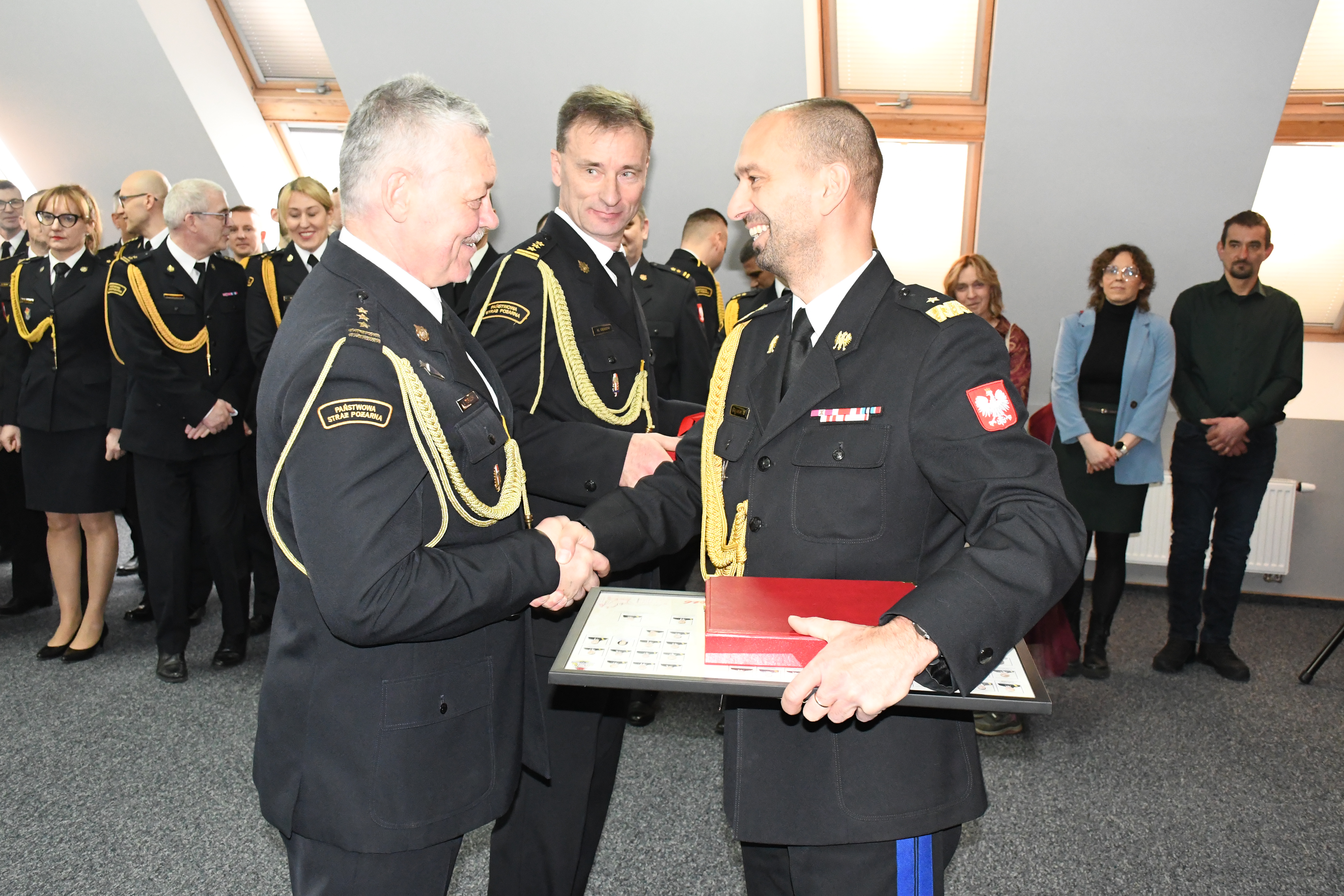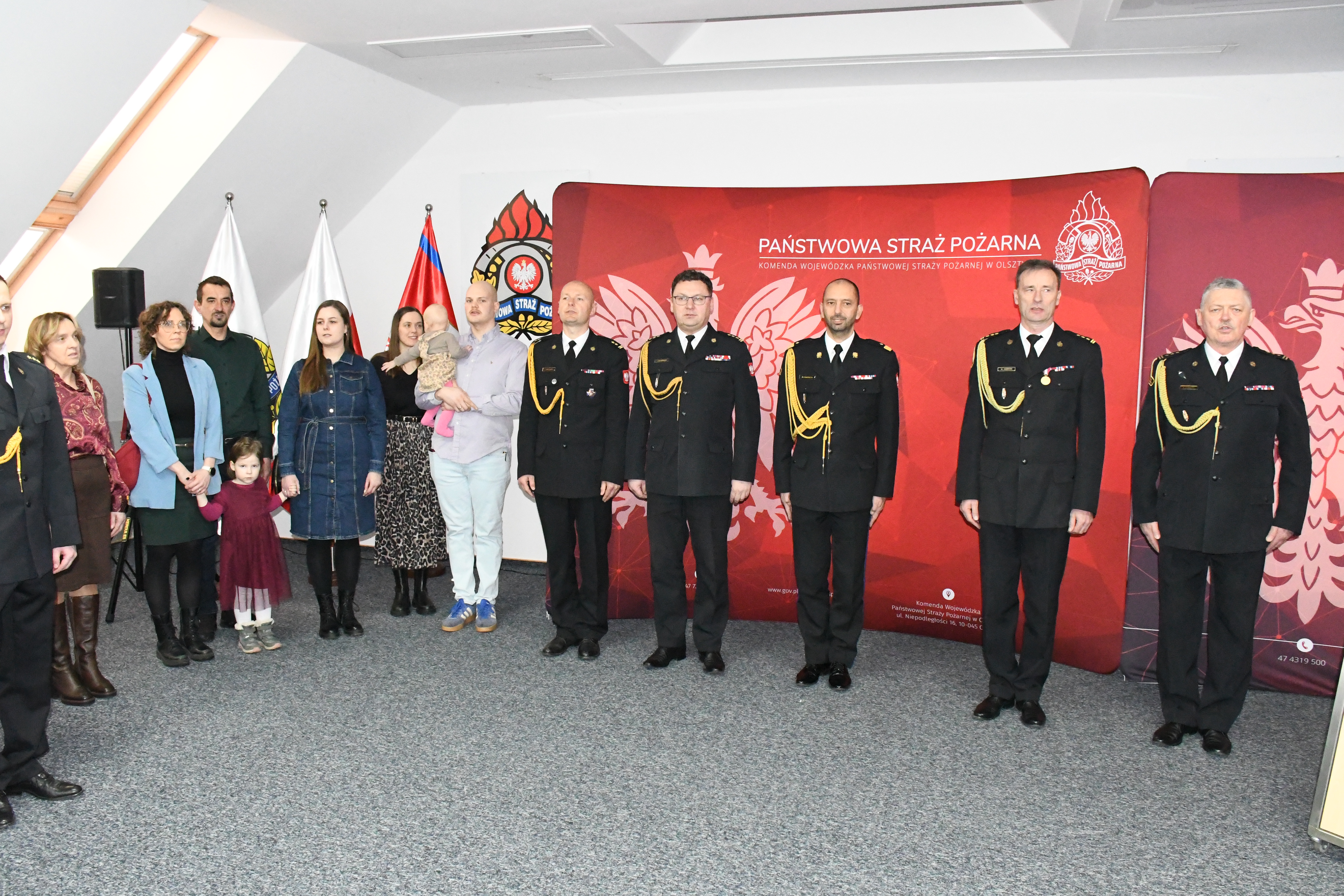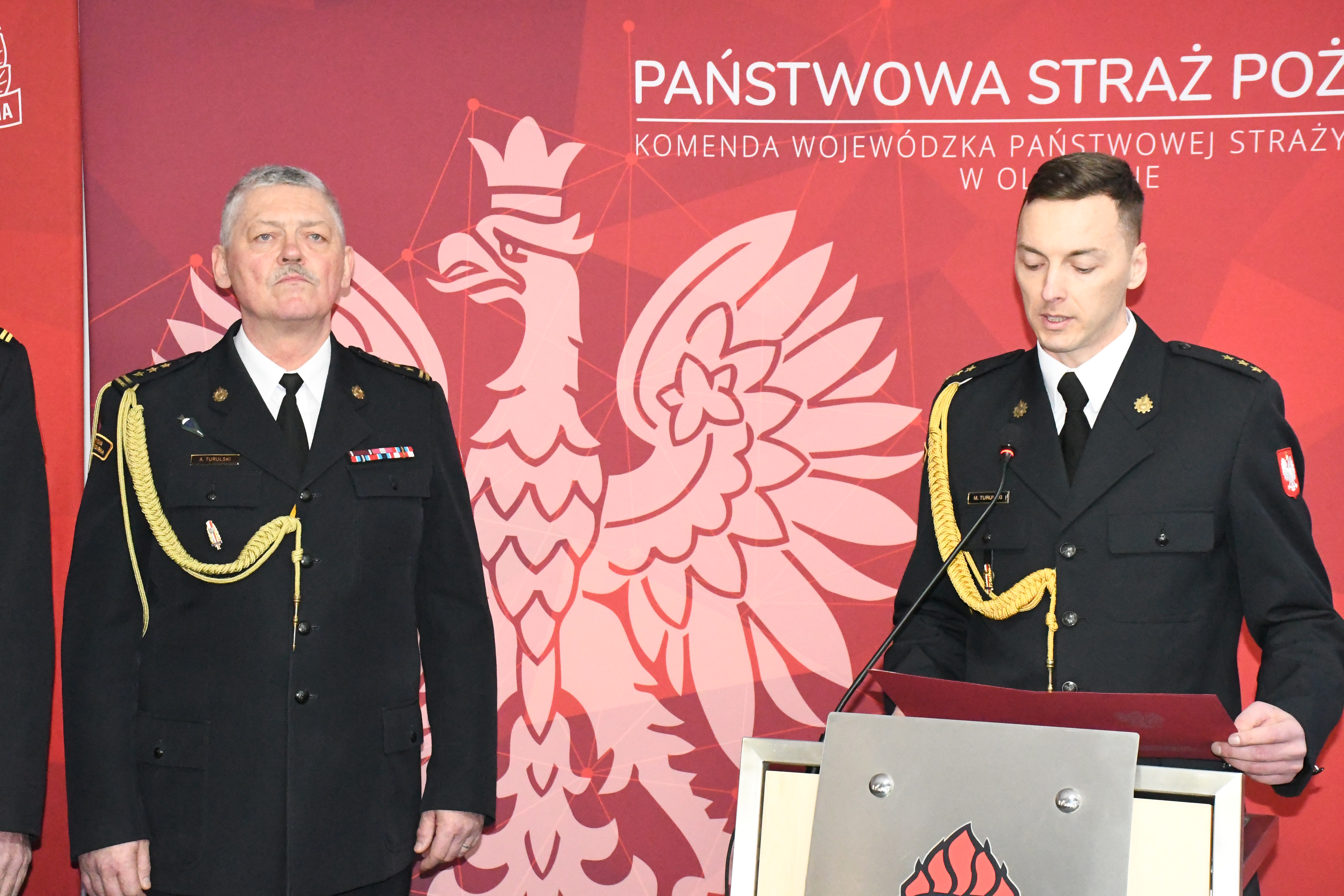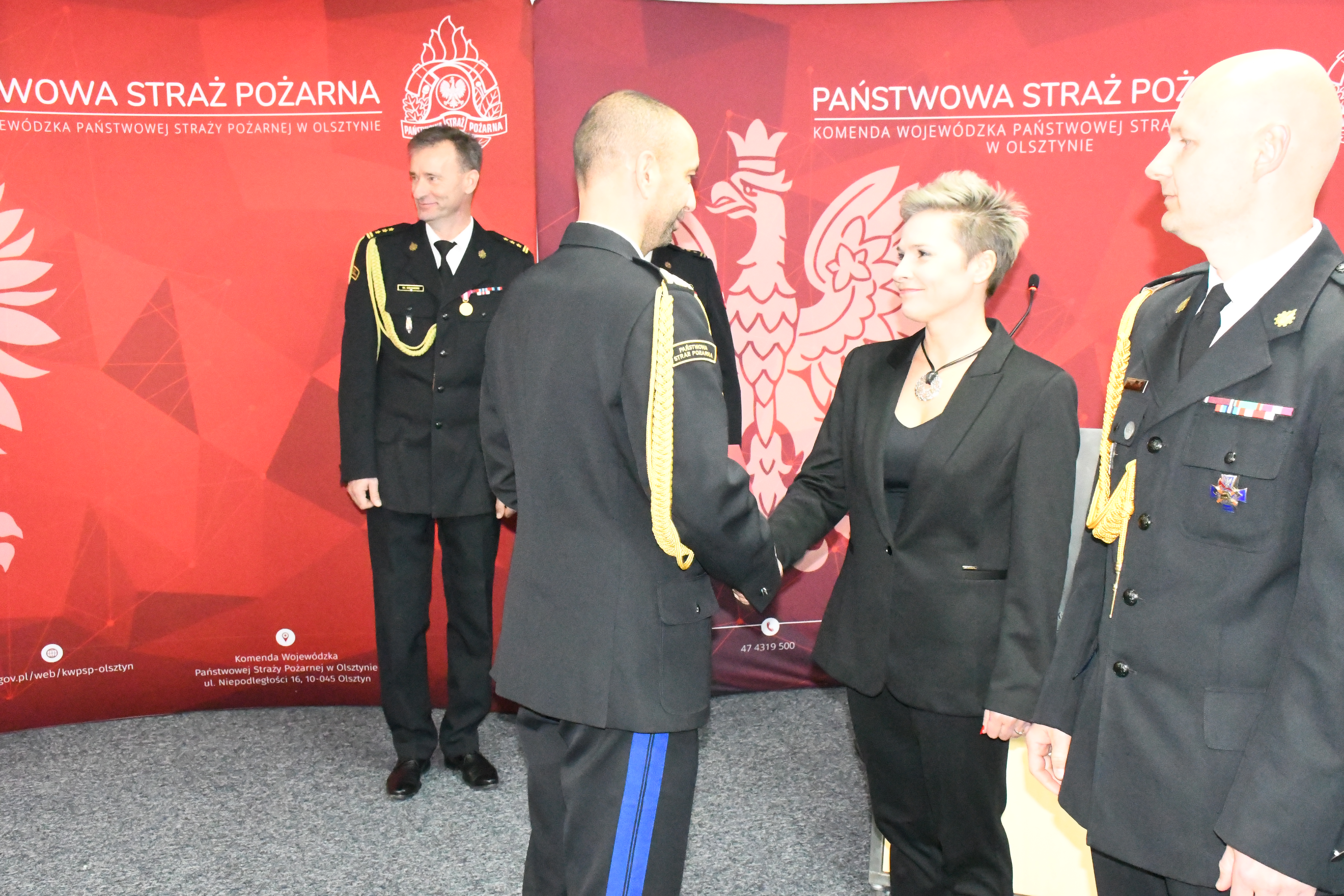 Podczas zbiórki odbyło się także, oficjalne wprowadzenie bryg. Kamila Pawlukanisa pełniącego obowiązki Zastępcy Warmińsko-Mazurskiego Komendanta Wojewódzkiego PSP na stanowisko oraz wręczenie decyzji przez nadbryg. Michała Kamienieckiego Warmińsko-Mazurskiego Komendanta Wojewódzkiego PSP o powierzeniu Pani Małgorzacie Busz obowiązków Naczelnika Wydziału Kadr Komendy Wojewódzkiej PSP w Olsztynie.