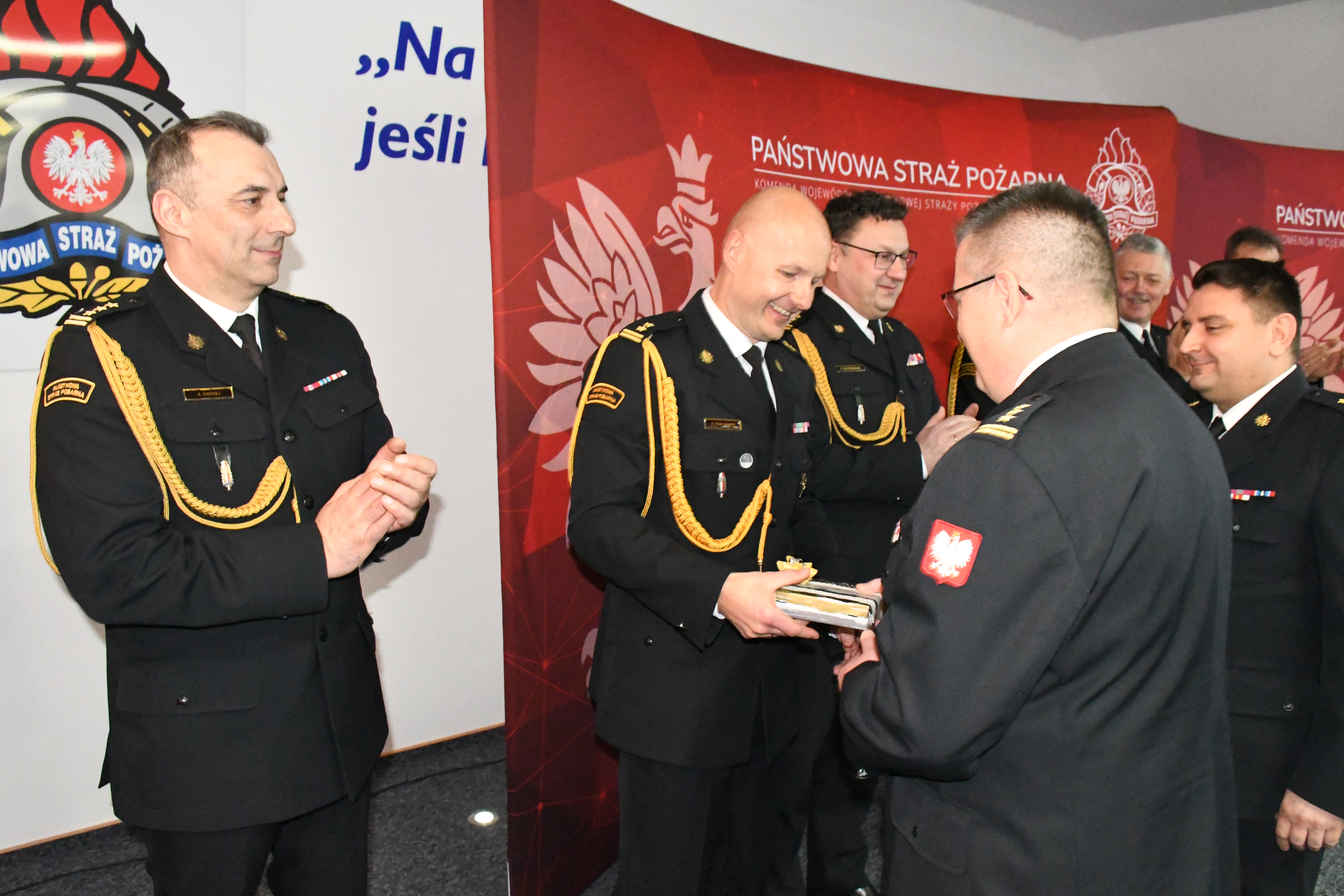 Złotą Odznaką Zasłużony dla Ochrony Przeciwpożarowej.