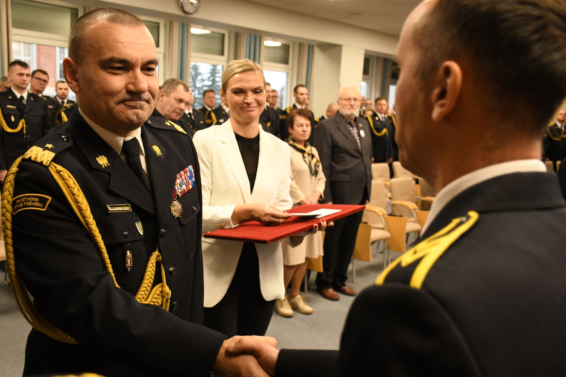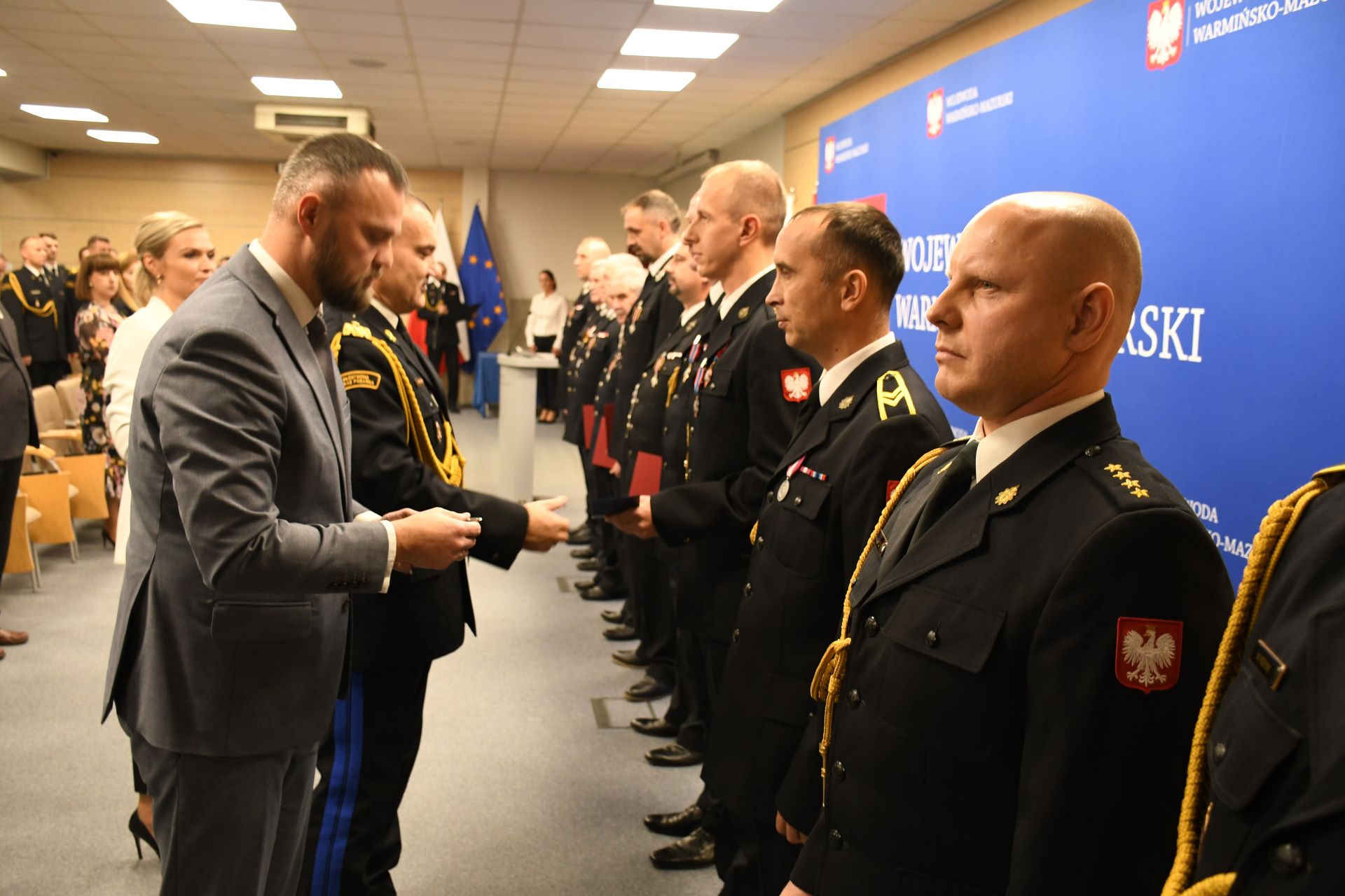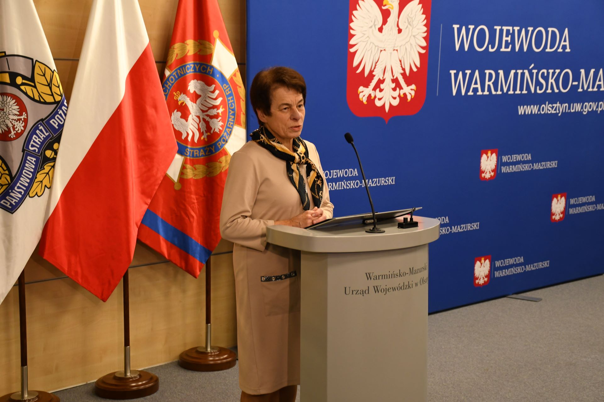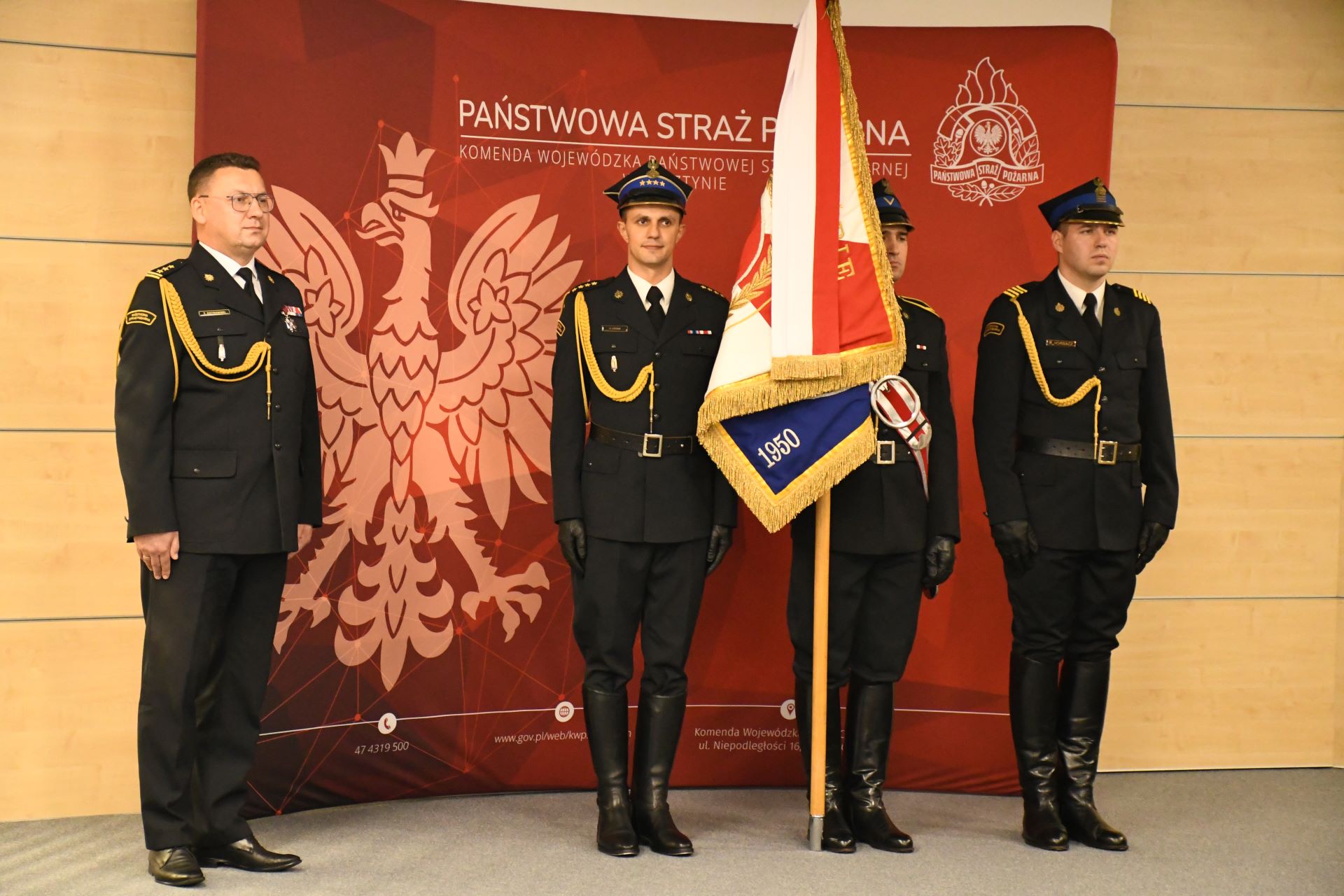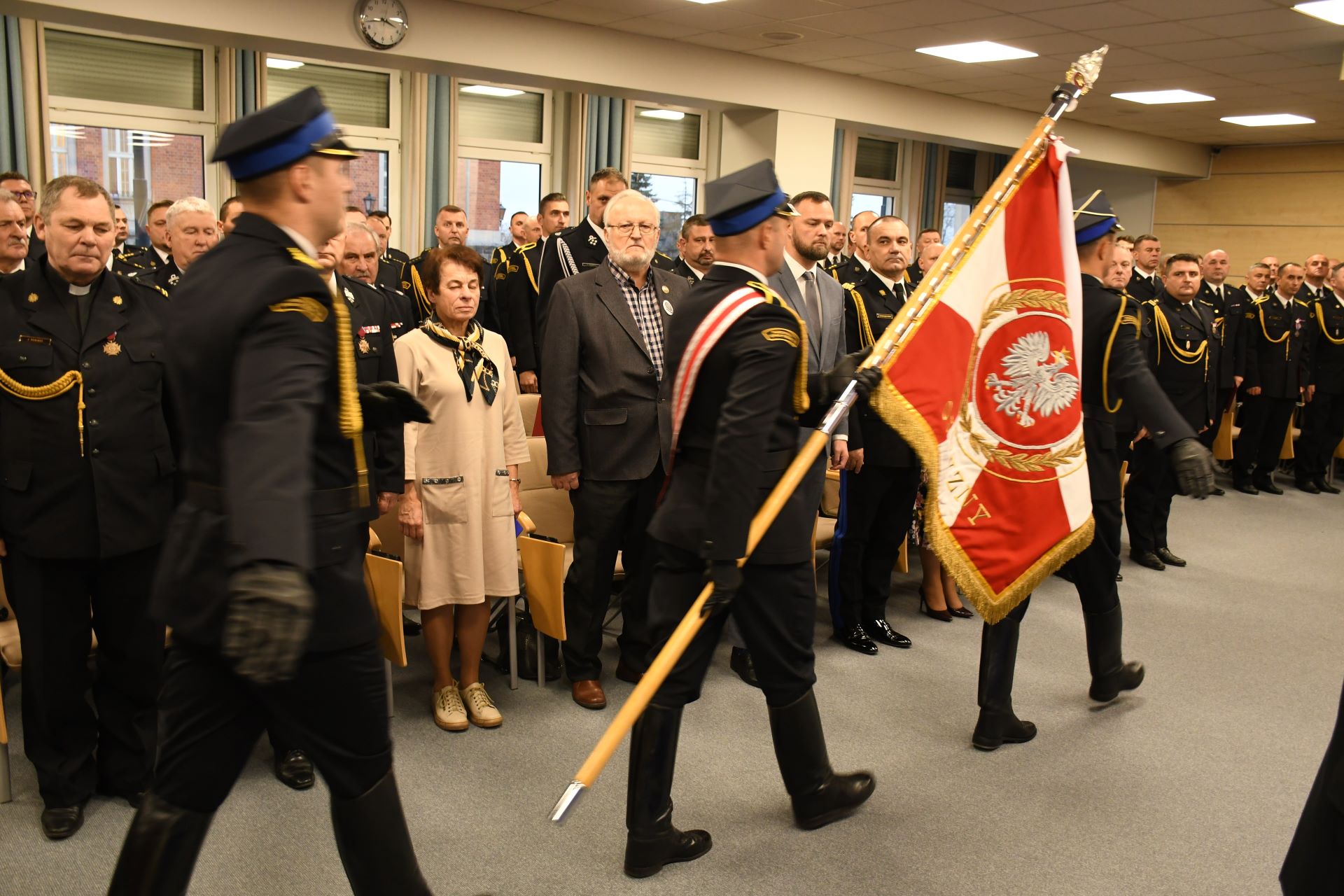 We wtorek 14 listopada w Urzędzie Wojewódzkim w Olsztynie odbyła się uroczysta zbiórka z okazji Narodowego Święta Niepodległości. Uroczystość rozpoczęła się od złożenia meldunku Piotrowi Opaczewskiemu Wicewojewodzie Warmińsko-Mazurskiemu o gotowości pododdziału do zbiórki, po czym odśpiewano hymn państwowy. Następnie nadbryg. Tomasz Komoszyński Warmińsko-Mazurski Komendant Wojewódzki Państwowej Straży Pożarnej przywitał zaproszonych gości, między innymi Piotra Opaczewskiego Wicewojewodę Warmińsko-Mazurskiego wraz z Dyrektorami urzędu, Barbarę Gawlicką Prezes Stowarzyszenia Rodzina Katyńska w Olsztynie wraz z Ryszardem Bombą członkiem zarządu stowarzyszenia oraz dh. Macieja Jasińskiego Dyrektora Zarządu Wykonawczego ZOSP RP w Olsztynie, a także kierownictwo Komendy Wojewódzkiej PSP w Olsztynie i kadrę kierowniczą PSP z woj. warmińsko-mazurskiego i pozostałych zgromadzonych. W rocznicowy, niepodległościowy nastrój uczestników uroczystości wprowadziła Prezes Barbara Gawlicka, która przedstawiła referat na temat walki o niepodległość Polski. Kolejnym punktem zbiórki było wręczenie funkcjonariuszom i pracownikom PSP oraz druhom Ochotniczych Straży Pożarnych z naszego województwa odznaczeń państwowych i resortowych. Ponadto strażacy PSP otrzymali awanse na wyższe stopnie służbowe oraz indywidualne wyróżnienia. Podczas uroczystości Komendant Wojewódzki PSP w Olsztynie wręczył st. kpt. Łukaszowi Zaniewskiemu akt powołania na stanowisko Zastępcy Komendanta Powiatowego PSP w Ostródzie. Wyjątkową chwilą podczas uroczystości było, wręczenie przez Członków Zarządu Stowarzyszenia Rodzina Katyńska w Olsztynie nadbryg. Tomaszowi Komoszyńskiemu repliki „Orła Katyńskiego”, który został odnaleziony w Charkowie podczas ekshumacji polskich oficerów, w dowód uznania za dbałość i pamięć o poległych za niepodległość Polski. Na zakończenie głos zabrał Wicewojewoda Piotr Opaczewski, który podziękował strażakom PSP i strażakom ochotnikom za codzienne poświęcenie i zaangażowanie w służbie dla dobra społeczeństwa.