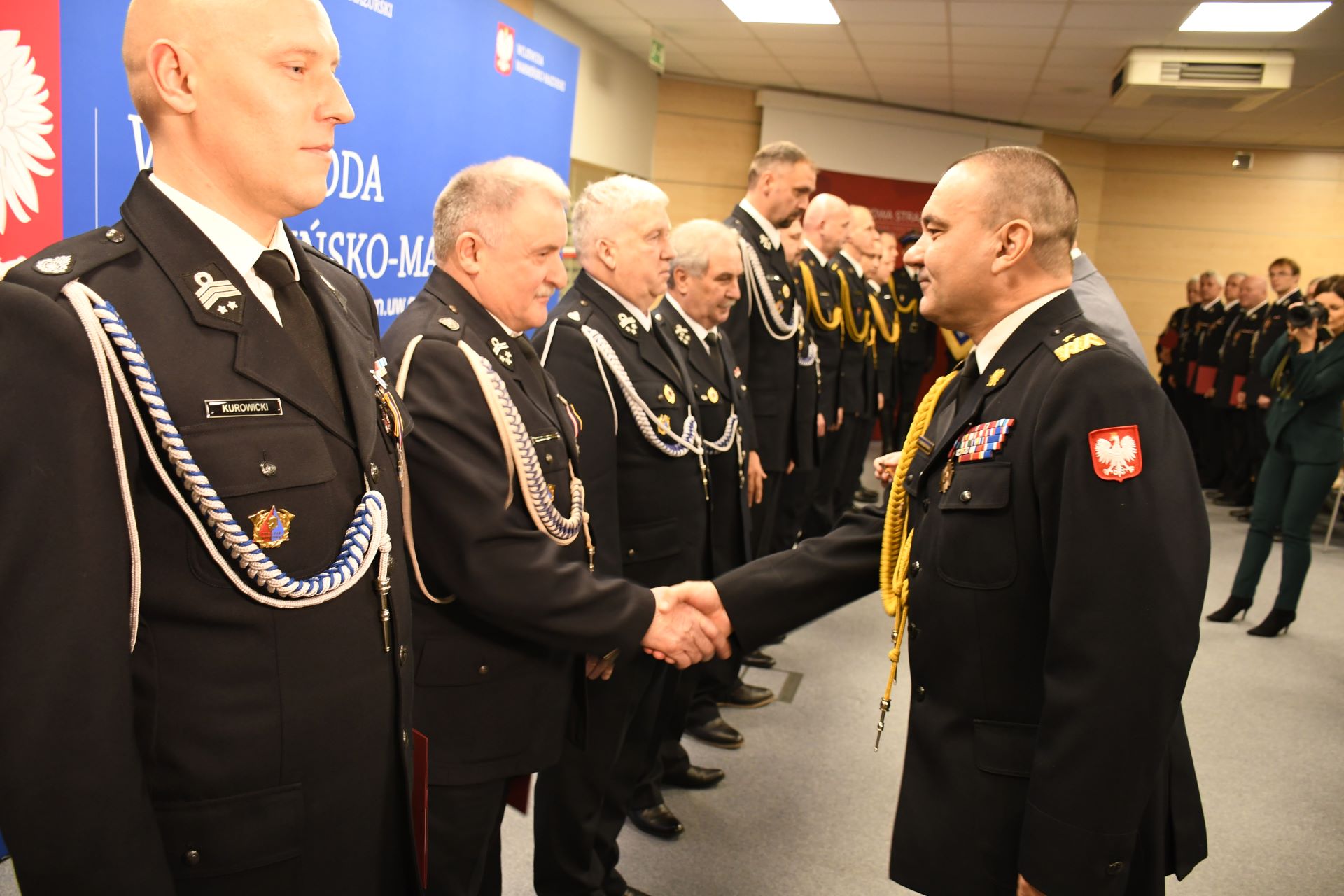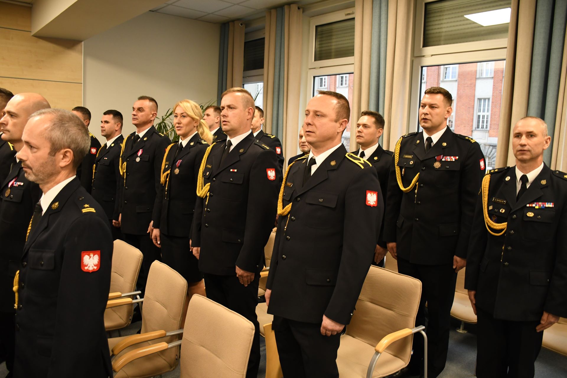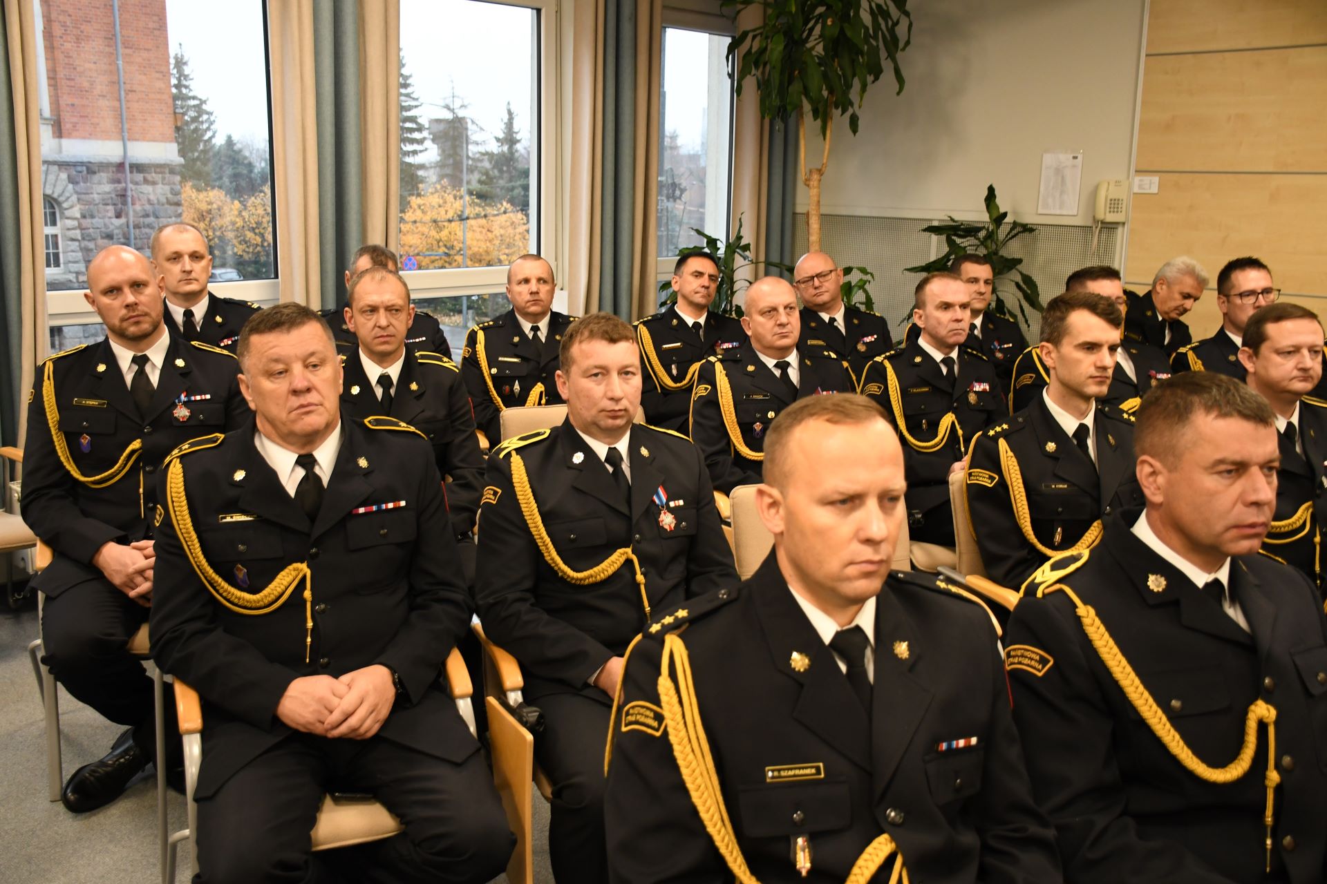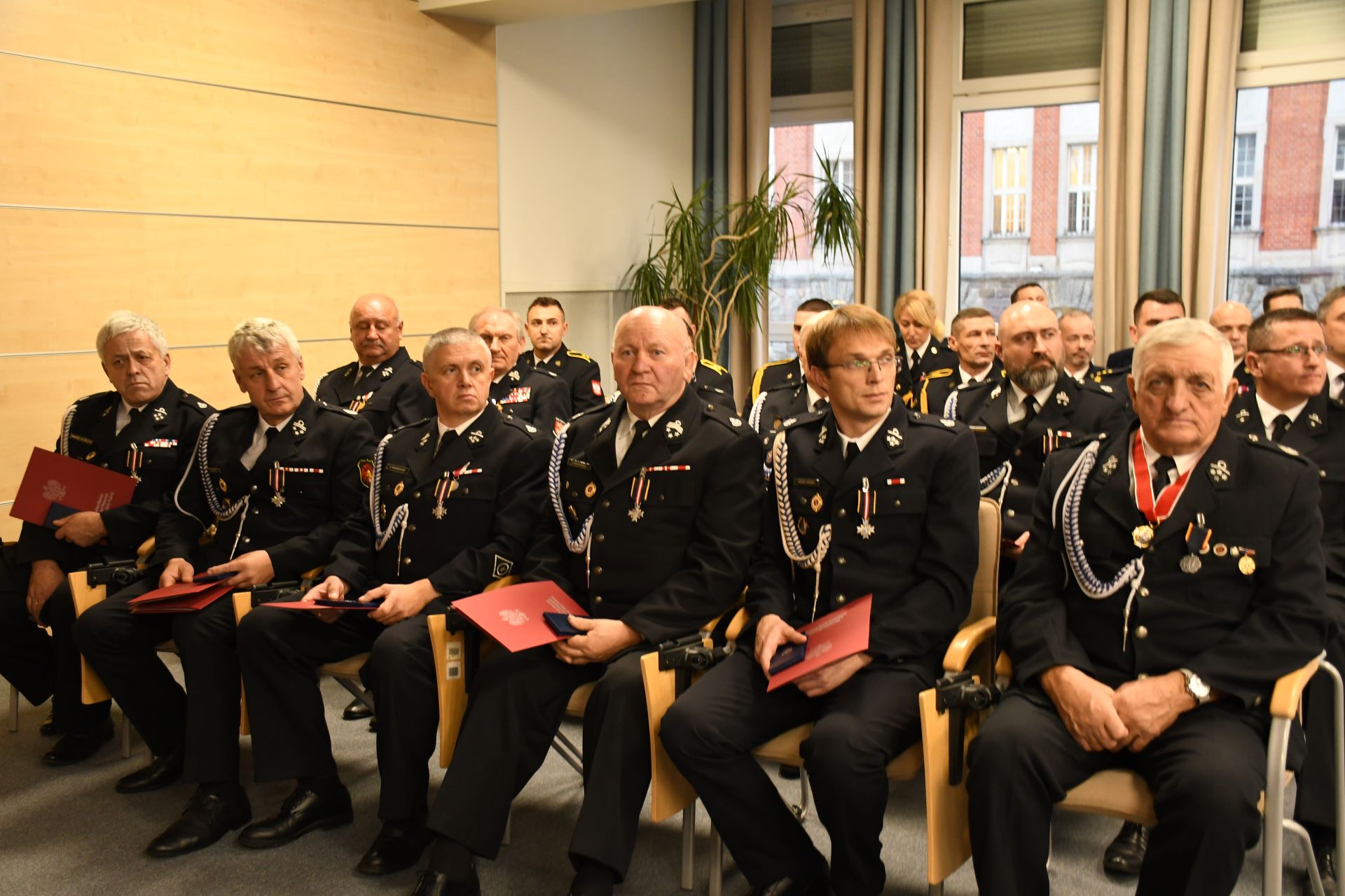 We wtorek 14 listopada w Urzędzie Wojewódzkim w Olsztynie odbyła się uroczysta zbiórka z okazji Narodowego Święta Niepodległości. Uroczystość rozpoczęła się od złożenia meldunku Piotrowi Opaczewskiemu Wicewojewodzie Warmińsko-Mazurskiemu o gotowości pododdziału do zbiórki, po czym odśpiewano hymn państwowy. Następnie nadbryg. Tomasz Komoszyński Warmińsko-Mazurski Komendant Wojewódzki Państwowej Straży Pożarnej przywitał zaproszonych gości, między innymi Piotra Opaczewskiego Wicewojewodę Warmińsko-Mazurskiego wraz z Dyrektorami urzędu, Barbarę Gawlicką Prezes Stowarzyszenia Rodzina Katyńska w Olsztynie wraz z Ryszardem Bombą członkiem zarządu stowarzyszenia oraz dh. Macieja Jasińskiego Dyrektora Zarządu Wykonawczego ZOSP RP w Olsztynie, a także kierownictwo Komendy Wojewódzkiej PSP w Olsztynie i kadrę kierowniczą PSP z woj. warmińsko-mazurskiego i pozostałych zgromadzonych. W rocznicowy, niepodległościowy nastrój uczestników uroczystości wprowadziła Prezes Barbara Gawlicka, która przedstawiła referat na temat walki o niepodległość Polski. Kolejnym punktem zbiórki było wręczenie funkcjonariuszom i pracownikom PSP oraz druhom Ochotniczych Straży Pożarnych z naszego województwa odznaczeń państwowych i resortowych. Ponadto strażacy PSP otrzymali awanse na wyższe stopnie służbowe oraz indywidualne wyróżnienia. Podczas uroczystości Komendant Wojewódzki PSP w Olsztynie wręczył st. kpt. Łukaszowi Zaniewskiemu akt powołania na stanowisko Zastępcy Komendanta Powiatowego PSP w Ostródzie. Wyjątkową chwilą podczas uroczystości było, wręczenie przez Członków Zarządu Stowarzyszenia Rodzina Katyńska w Olsztynie nadbryg. Tomaszowi Komoszyńskiemu repliki „Orła Katyńskiego”, który został odnaleziony w Charkowie podczas ekshumacji polskich oficerów, w dowód uznania za dbałość i pamięć o poległych za niepodległość Polski. Na zakończenie głos zabrał Wicewojewoda Piotr Opaczewski, który podziękował strażakom PSP i strażakom ochotnikom za codzienne poświęcenie i zaangażowanie w służbie dla dobra społeczeństwa.