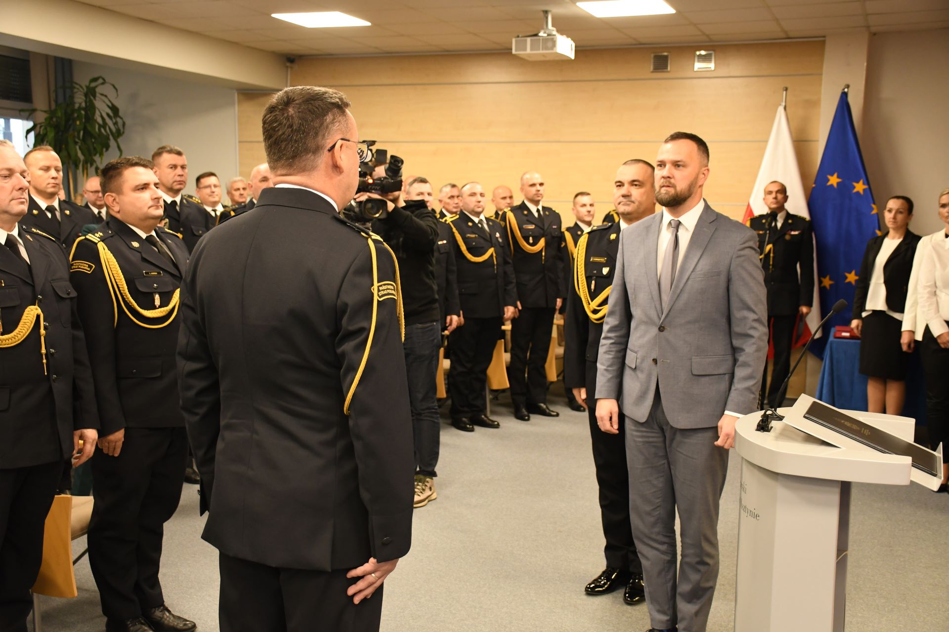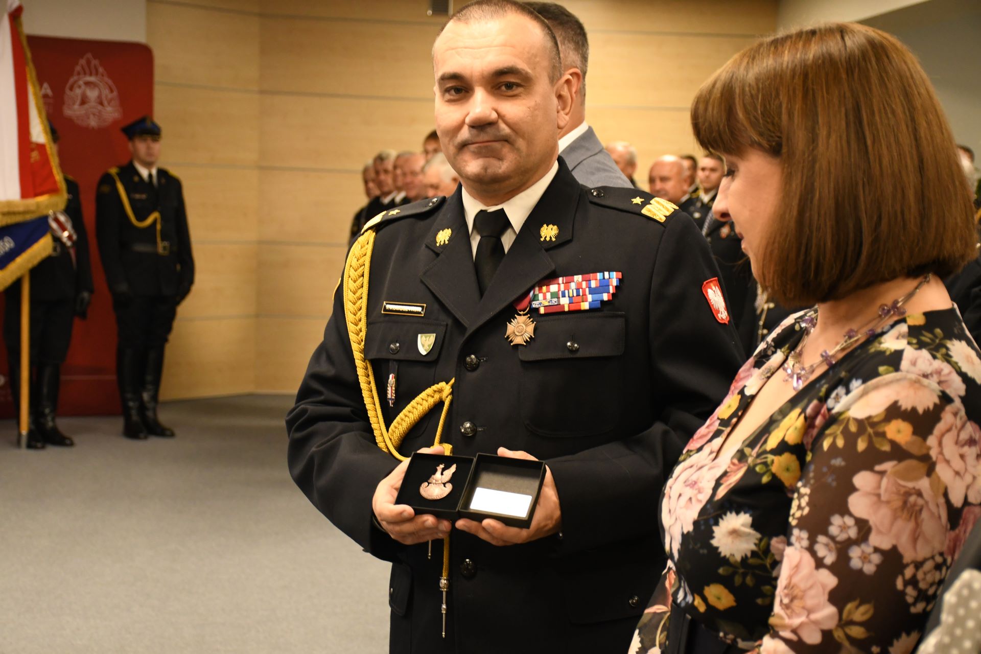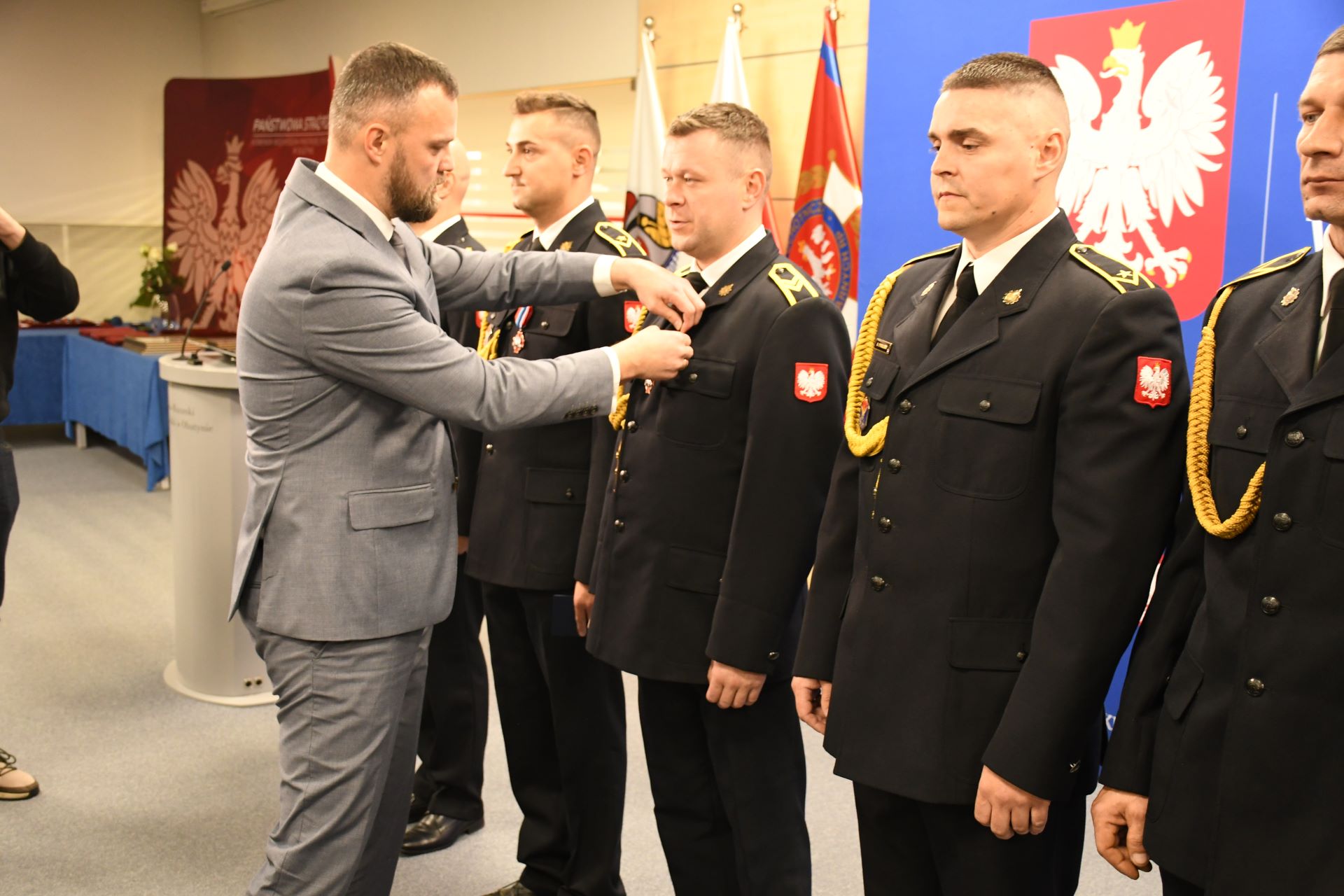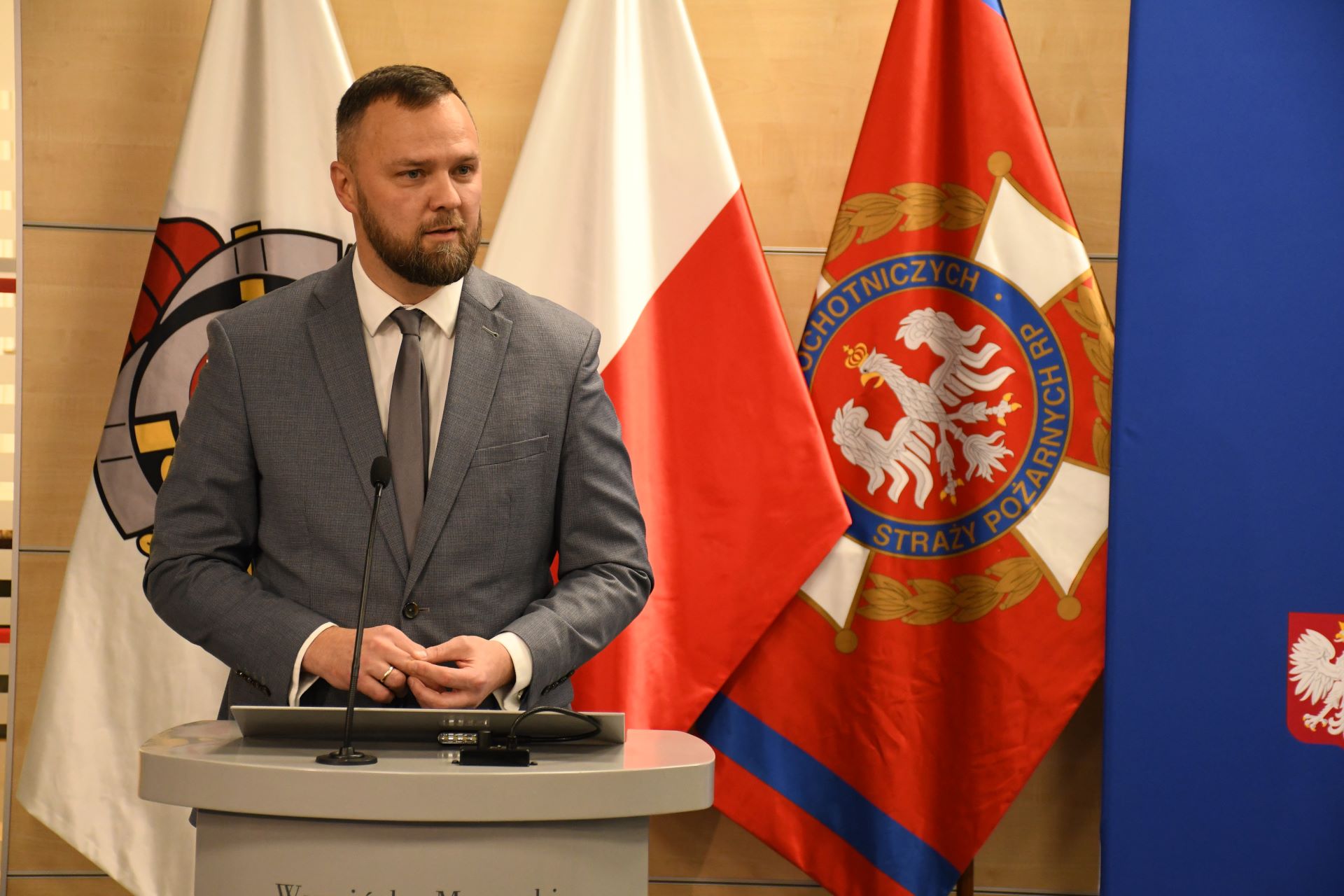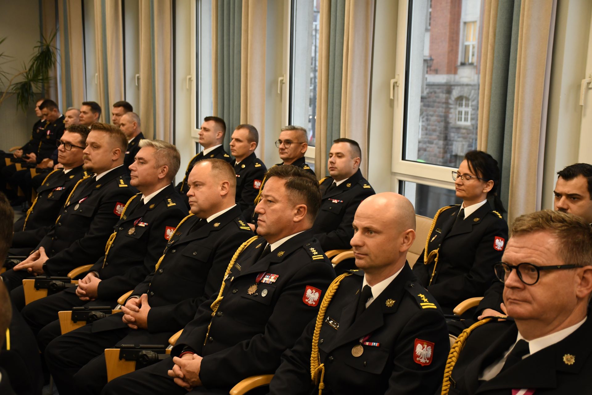 We wtorek 14 listopada w Urzędzie Wojewódzkim w Olsztynie odbyła się uroczysta zbiórka z okazji Narodowego Święta Niepodległości. Uroczystość rozpoczęła się od złożenia meldunku Piotrowi Opaczewskiemu Wicewojewodzie Warmińsko-Mazurskiemu o gotowości pododdziału do zbiórki, po czym odśpiewano hymn państwowy. Następnie nadbryg. Tomasz Komoszyński Warmińsko-Mazurski Komendant Wojewódzki Państwowej Straży Pożarnej przywitał zaproszonych gości, między innymi Piotra Opaczewskiego Wicewojewodę Warmińsko-Mazurskiego wraz z Dyrektorami urzędu, Barbarę Gawlicką Prezes Stowarzyszenia Rodzina Katyńska w Olsztynie wraz z Ryszardem Bombą członkiem zarządu stowarzyszenia oraz dh. Macieja Jasińskiego Dyrektora Zarządu Wykonawczego ZOSP RP w Olsztynie, a także kierownictwo Komendy Wojewódzkiej PSP w Olsztynie i kadrę kierowniczą PSP z woj. warmińsko-mazurskiego i pozostałych zgromadzonych. W rocznicowy, niepodległościowy nastrój uczestników uroczystości wprowadziła Prezes Barbara Gawlicka, która przedstawiła referat na temat walki o niepodległość Polski. Kolejnym punktem zbiórki było wręczenie funkcjonariuszom i pracownikom PSP oraz druhom Ochotniczych Straży Pożarnych z naszego województwa odznaczeń państwowych i resortowych. Ponadto strażacy PSP otrzymali awanse na wyższe stopnie służbowe oraz indywidualne wyróżnienia. Podczas uroczystości Komendant Wojewódzki PSP w Olsztynie wręczył st. kpt. Łukaszowi Zaniewskiemu akt powołania na stanowisko Zastępcy Komendanta Powiatowego PSP w Ostródzie. Wyjątkową chwilą podczas uroczystości było, wręczenie przez Członków Zarządu Stowarzyszenia Rodzina Katyńska w Olsztynie nadbryg. Tomaszowi Komoszyńskiemu repliki „Orła Katyńskiego”, który został odnaleziony w Charkowie podczas ekshumacji polskich oficerów, w dowód uznania za dbałość i pamięć o poległych za niepodległość Polski. Na zakończenie głos zabrał Wicewojewoda Piotr Opaczewski, który podziękował strażakom PSP i strażakom ochotnikom za codzienne poświęcenie i zaangażowanie w służbie dla dobra społeczeństwa.