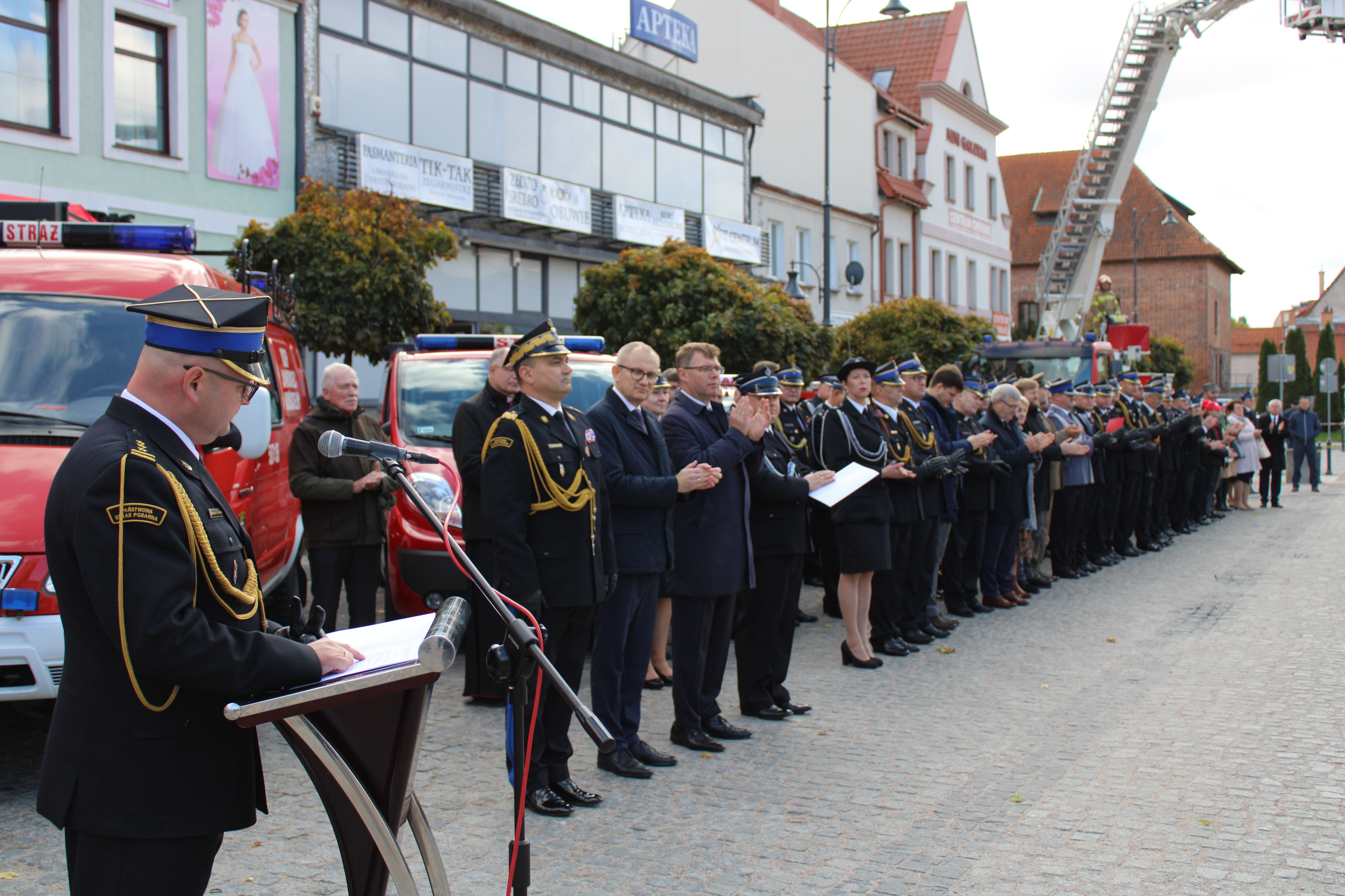 Uroczystość uświetniły swoją obecnością: Orkiestra Morskiego Oddziału Straży Granicznej w Gdańsku, Kompania Reprezentacyjna KW PSP w Olsztynie oraz poczty sztandarowe komend powiatowych PSP i jednostek OSP.