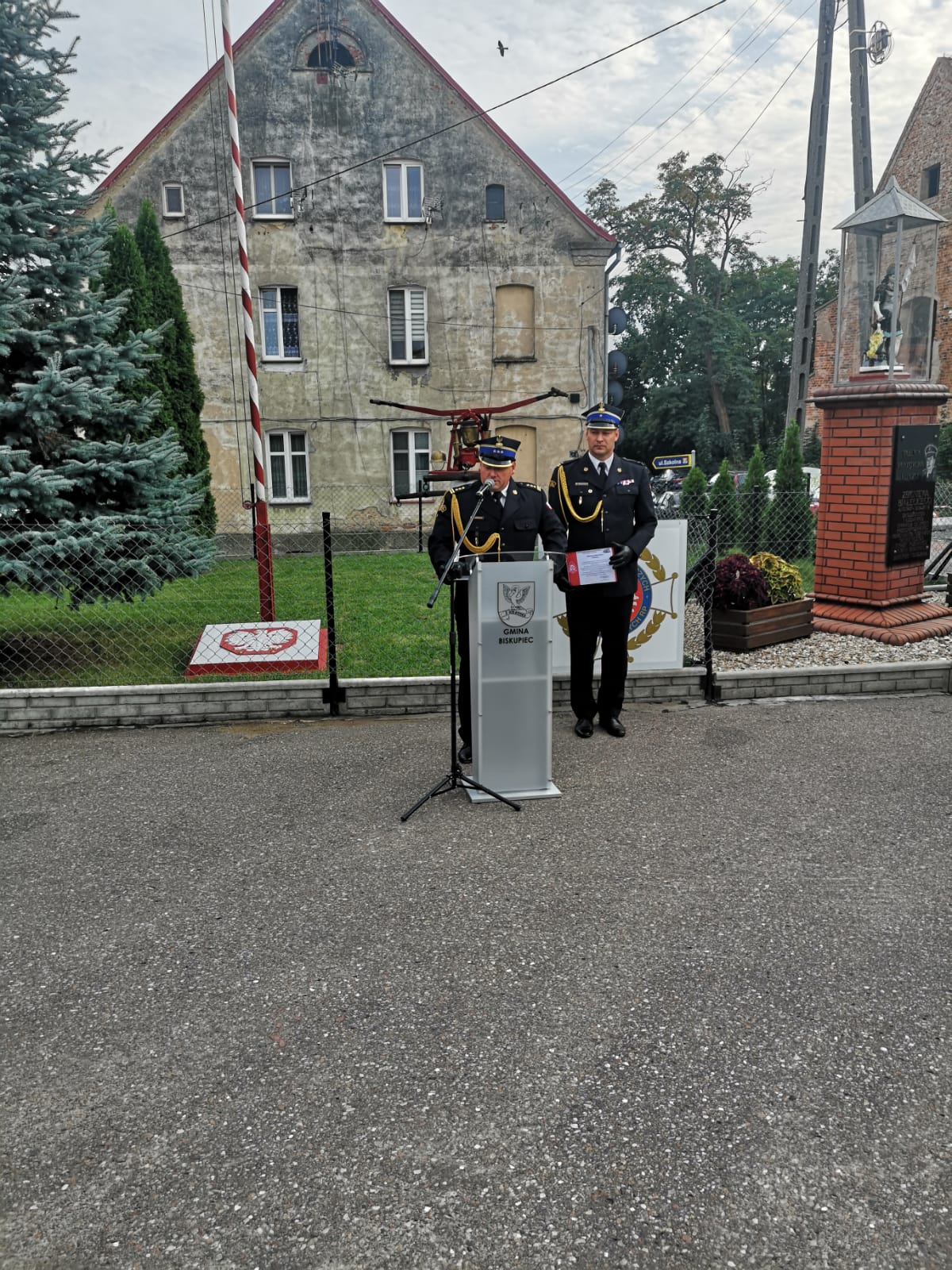 Uroczyste przekazanie samochodu pożarniczego jednostce OSP Biskupiec w pow. nowomiejskim – w uroczystości udział wziął zastępca komendanta wojewódzkiego PSP