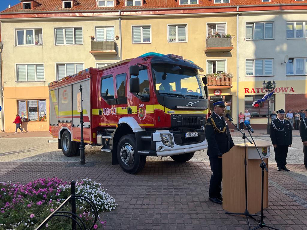 Podczas uroczystości nowy pojazd pożarniczy został poświęcony, a naczelnik OSP wraz z kierowcą odebrali akt przekazania oraz dokumenty, a także kluczyki do pojazdu, które w imieniu nadbryg. Tomasza Komoszyńskiego Warmińsko-Mazurskiego Komendanta Wojewódzkiego PSP przekazał st. bryg. Tomasz Ostrowski. Na zakończenie uroczystości okolicznościowe przemówienia wygłosili zaproszeni goście.
