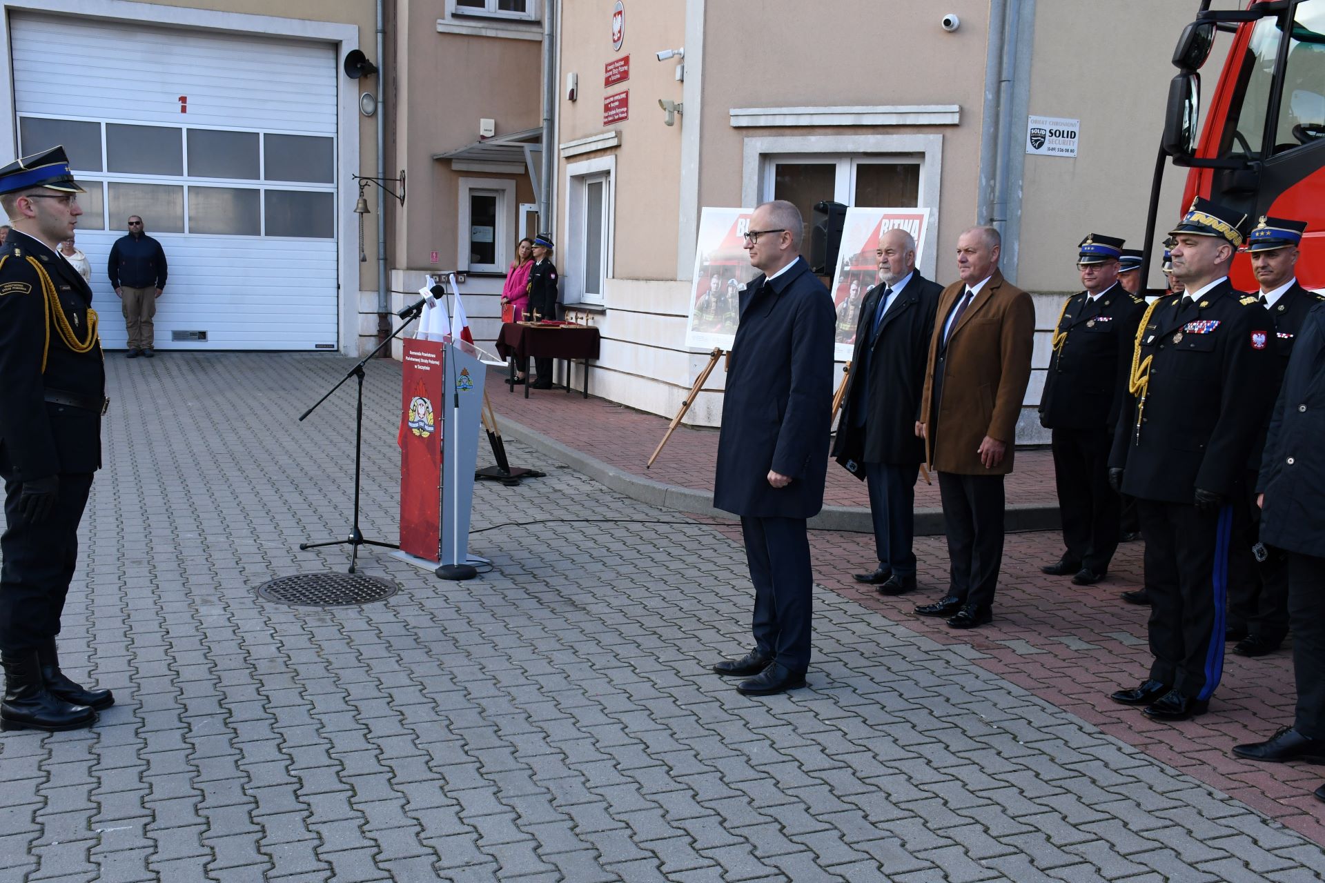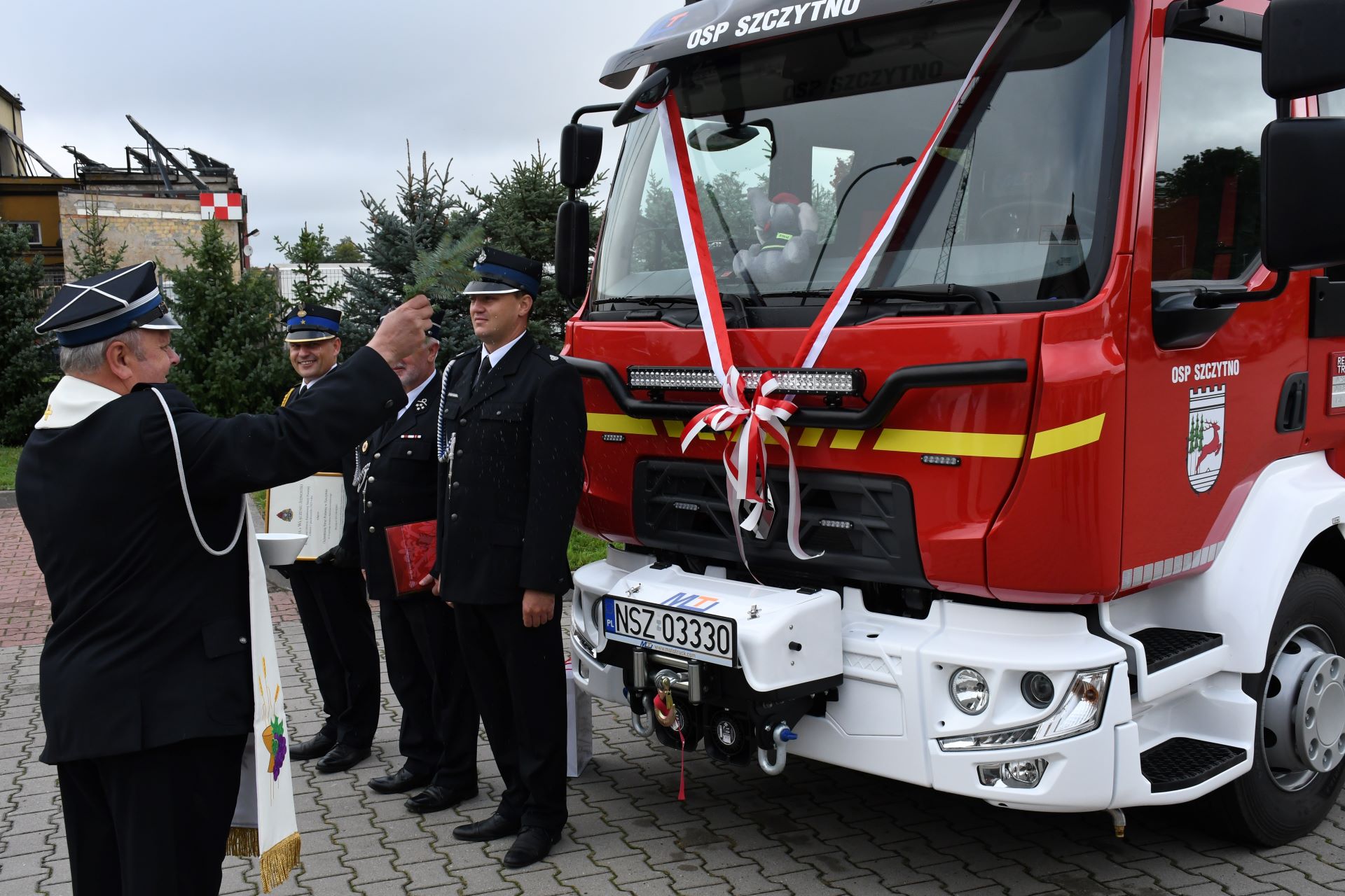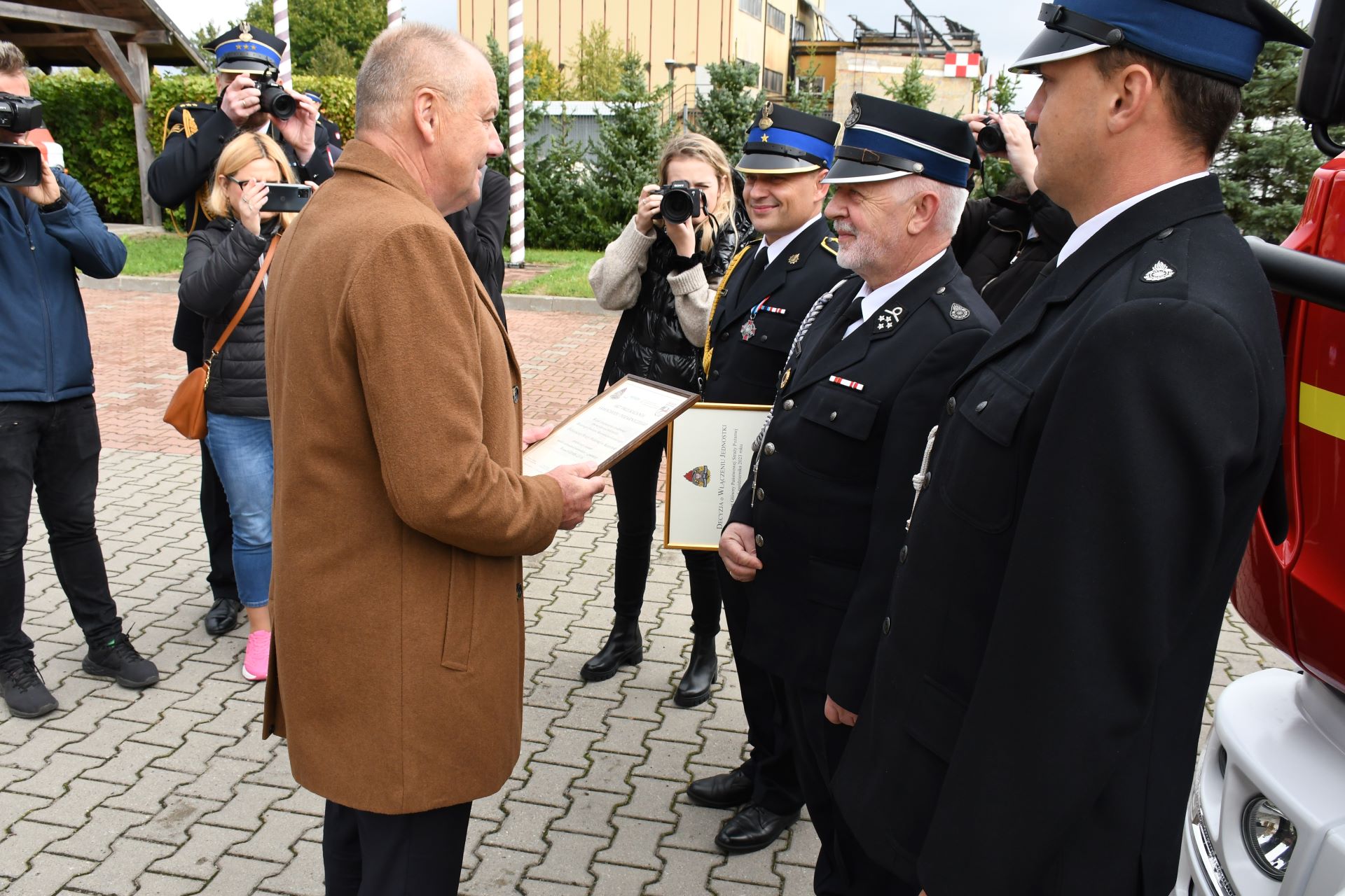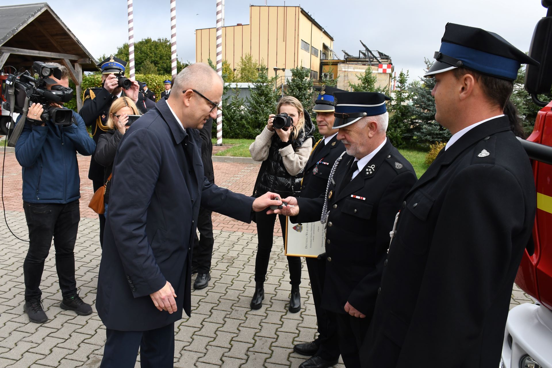 Uroczyste przekazanie samochodu pożarniczego jednostce OSP w Szczytnie – w uroczystości udział wziął Wiceminister MSWiA oraz Komendant Wojewódzki PSP