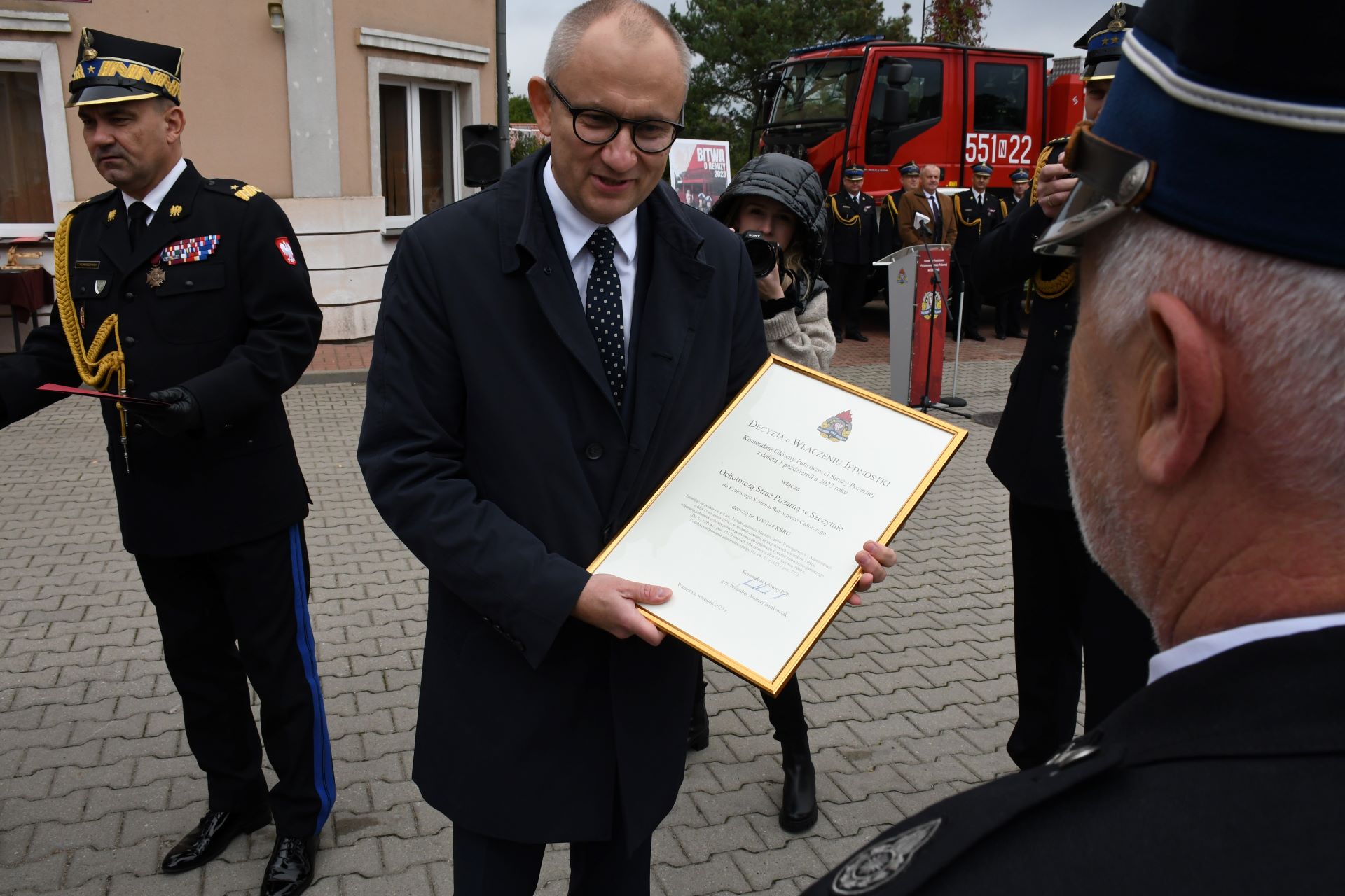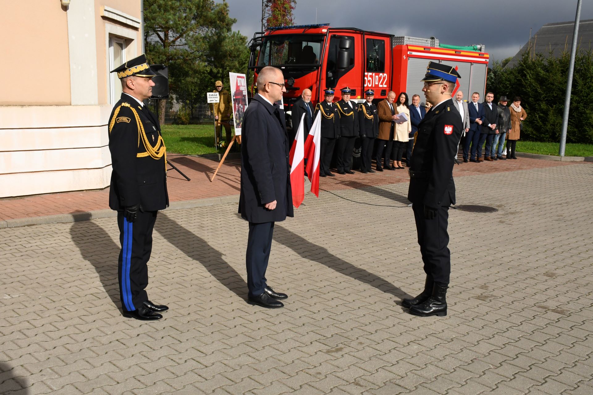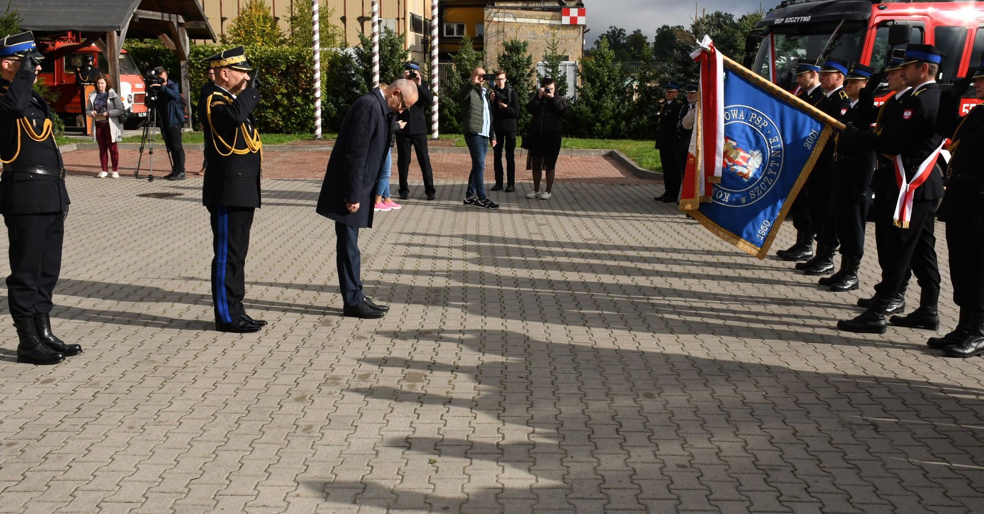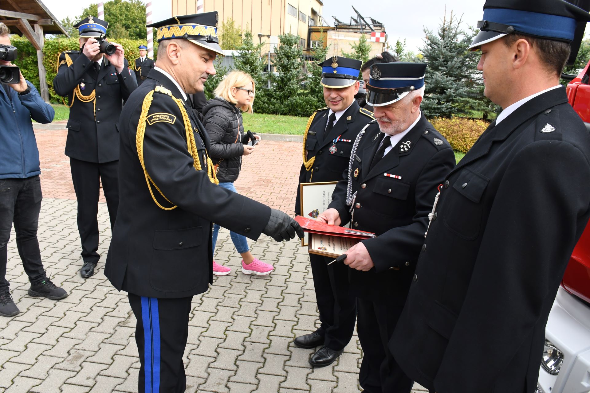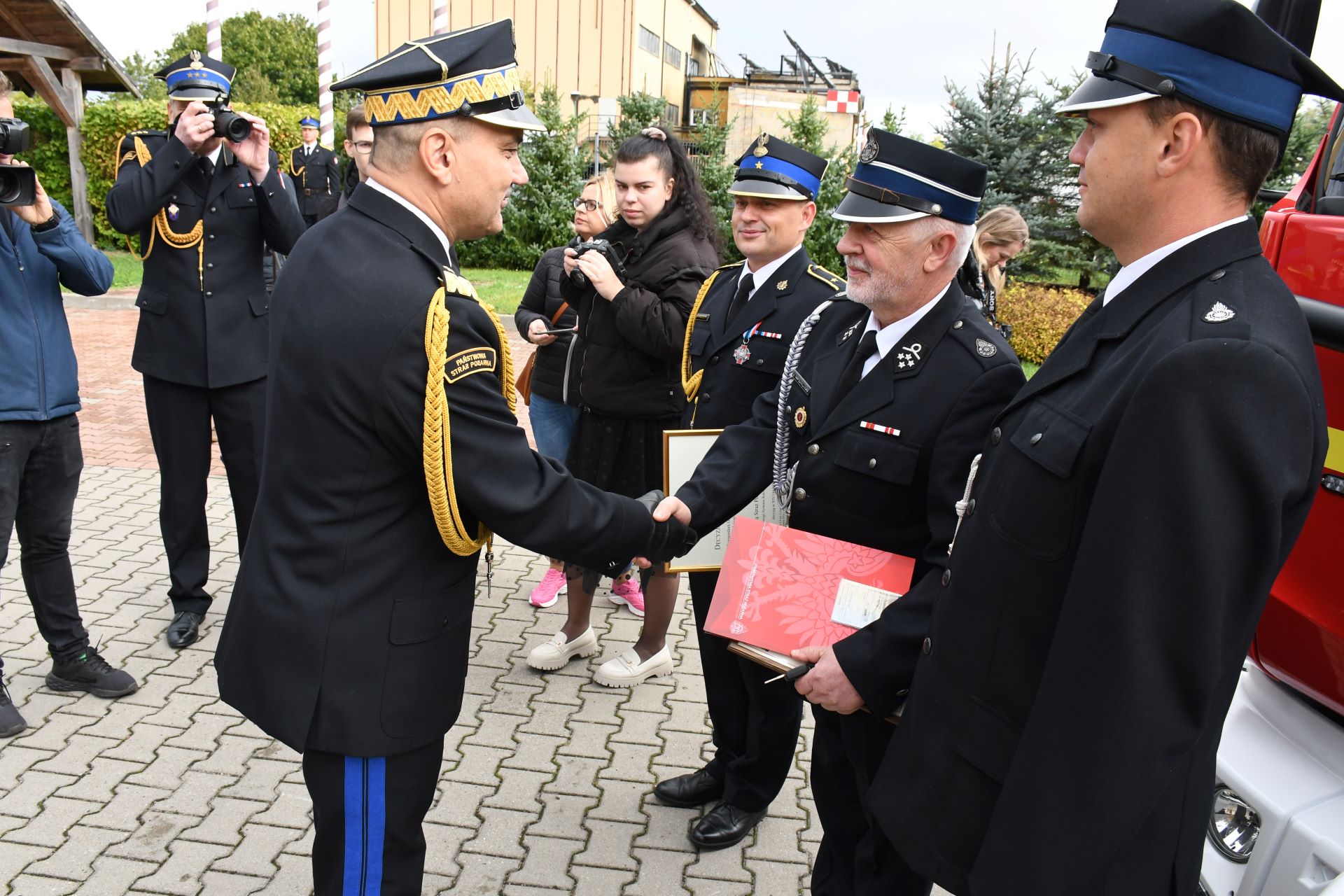 Uroczyste przekazanie samochodu pożarniczego jednostce OSP w Szczytnie – w uroczystości udział wziął Wiceminister MSWiA oraz Komendant Wojewódzki PSP