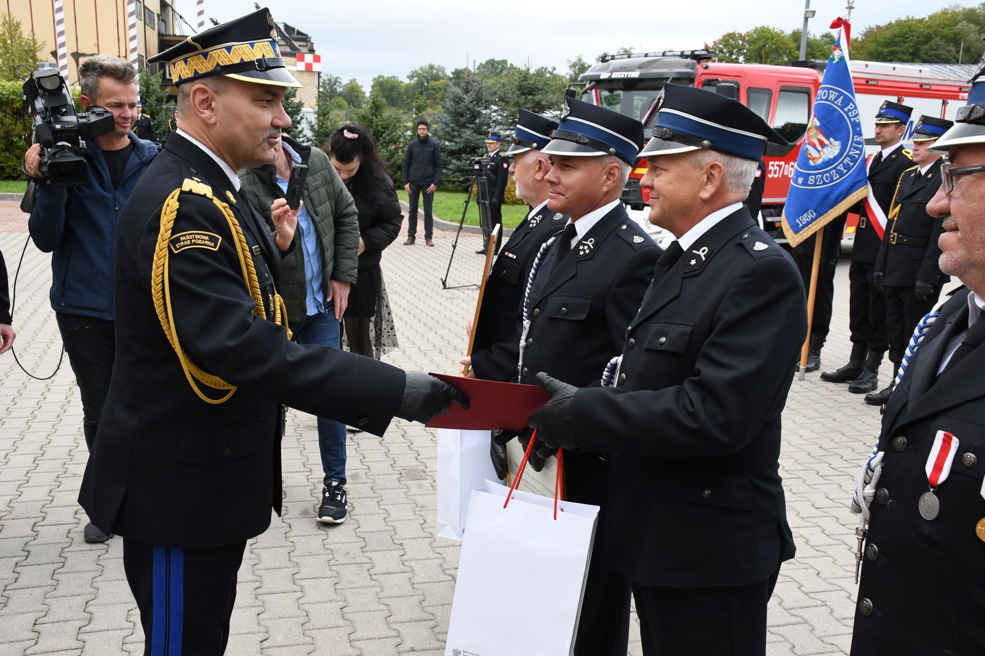 Ochotnicza Straż Pożarna w Szczytnie jest najmłodsza stażem w KSRG w powiecie szczycieńskim. Jednostka po wznowieniu działalności w ciągu kilku lat wyjeżdżała już blisko 200 razy do interwencji ratowniczych. Mimo że strażacy ochotnicy ze Szczytna działają na nowo dopiero kilka lat, to stale podnoszą swój poziom wyszkolenia i wyposażenia w sprzęt pożarniczy. Ich determinacja i zapał pokazuje każdego dnia, że ochotnicze niesienie pomocy potrzebującym, jest wspaniałą ideą, a wytrwałe dążenie do profesjonalizmu i odpowiedniego poziomu, daje wymierne efekty. Dziś 6 października odbyła się uroczysta zbiórka, na której do OSP Szczytno oficjalnie przekazano nowy samochód ratowniczo-gaśniczy, a jednostka została włączona do Krajowego Systemu Ratowniczo-Gaśniczego. Na placu alarmowym szczycieńskiej Komendy Powiatowej Państwowej Straży Pożarnej, gdzie odbyła się uroczystość, zgromadzili się funkcjonariusze i pracownicy PSP, a także druhowie OSP oraz zaproszeni goście, między innymi: