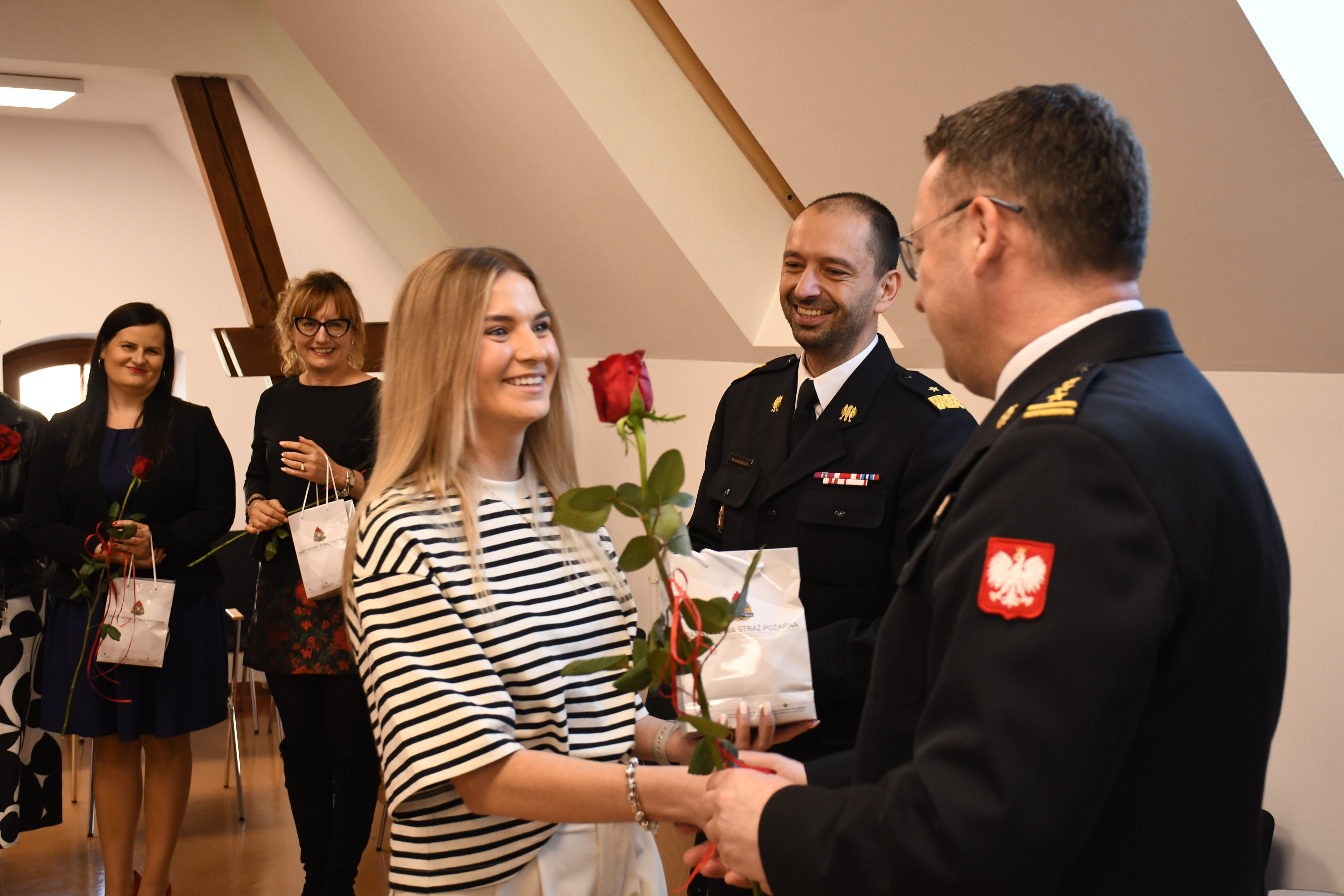 W przededniu Międzynarodowego Dnia Kobiet, który obchodzony jest 8 marca, w sali konferencyjnej Komendy Wojewódzkiej Państwowej Straży Pożarnej w Olsztynie odbyło się uroczyste spotkanie z okazji Dnia Kobiet. Spotkanie rozpoczął nadbryg. Michał Kamieniecki Warmińsko-Mazurski Komendant Wojewódzki PSP, który w imieniu własnym i całej męskiej części pracowników oraz funkcjonariuszy Komendy Wojewódzkiej PSP złożył Paniom pracującym na stanowiskach cywilnych i Funkcjonariuszkom w olsztyńskiej Komendzie Wojewódzkiej PSP z okazji Dnia Kobiet najserdeczniejsze życzenia zdrowia, pomyślności i spełnienia marzeń. Komendant podziękował Paniom za trud pracy, którą godzą z obowiązkami rodzinnymi.