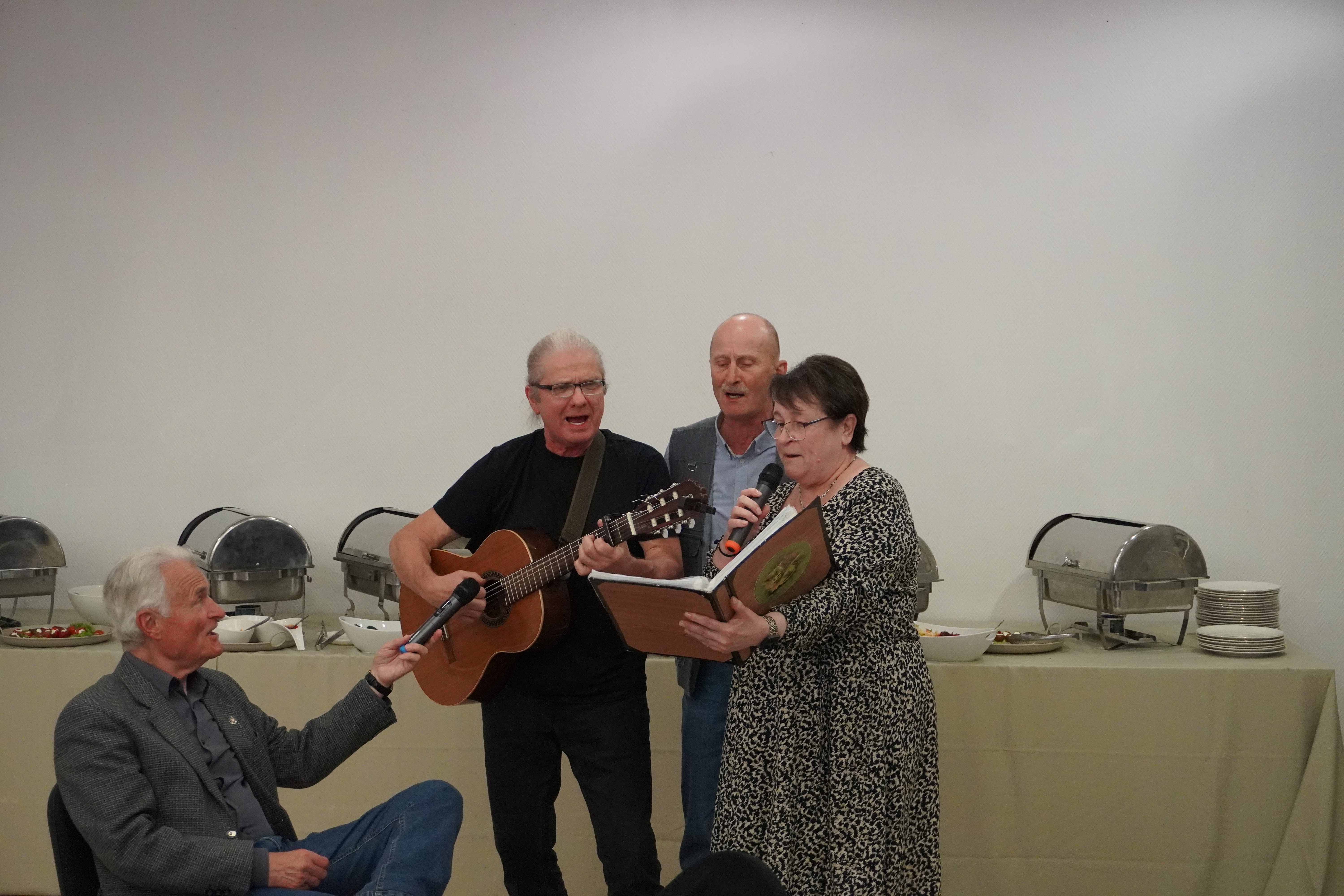 Po części oficjalnej przystąpiliśmy do świętowania. Atmosfera była bardzo miła i koleżeńska, jedzenie stanowiły potrawy grillowe, napoje, kawa, herbata i ciasta. Reszta należała do inwencji własnej. Całe spotkanie umilali nam „Grajkowie” Teresa P. Mirosław W. Grzegorz W i Andrzej H. reszta uczestników czynnie włączała się do śpiewów i zabawy.