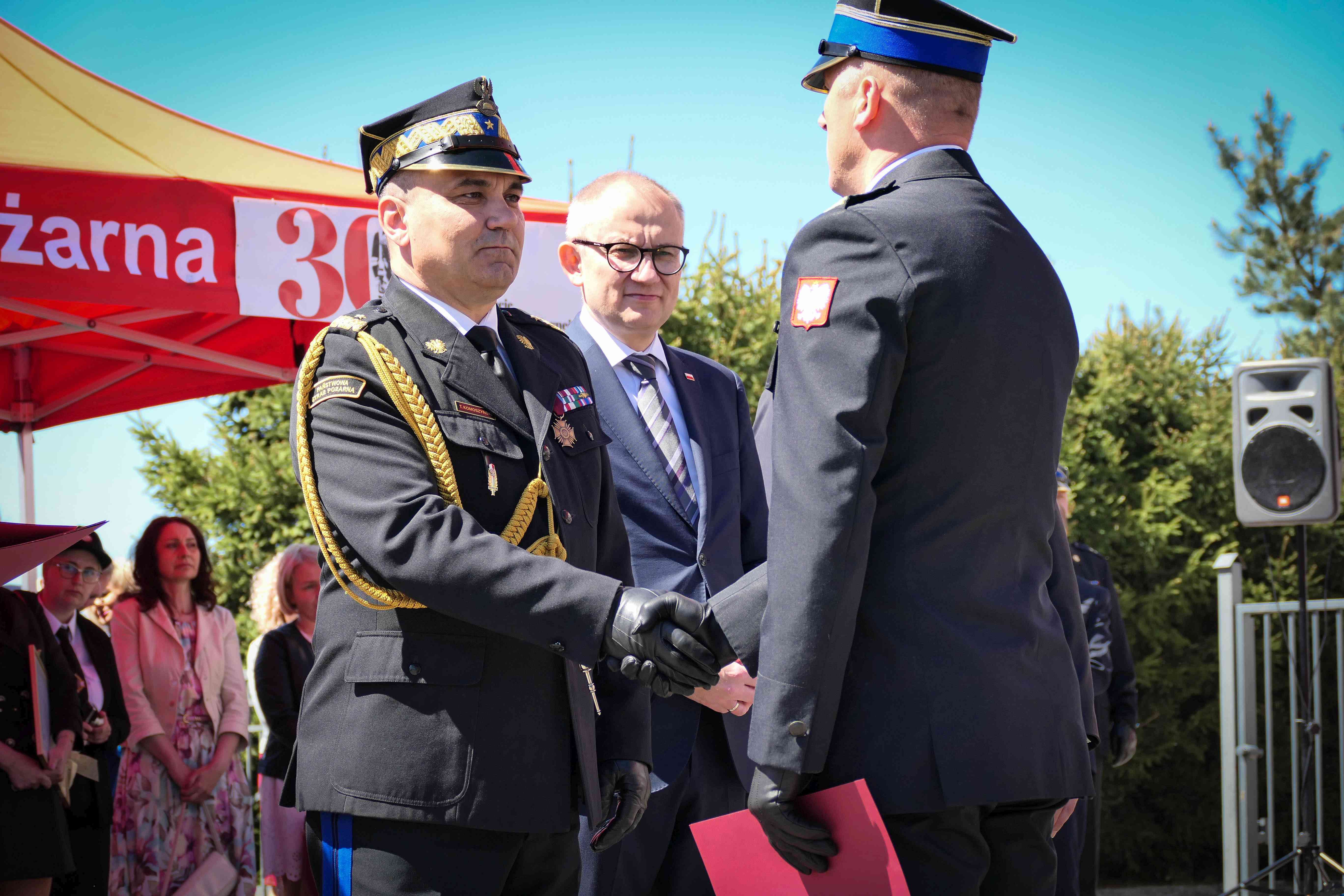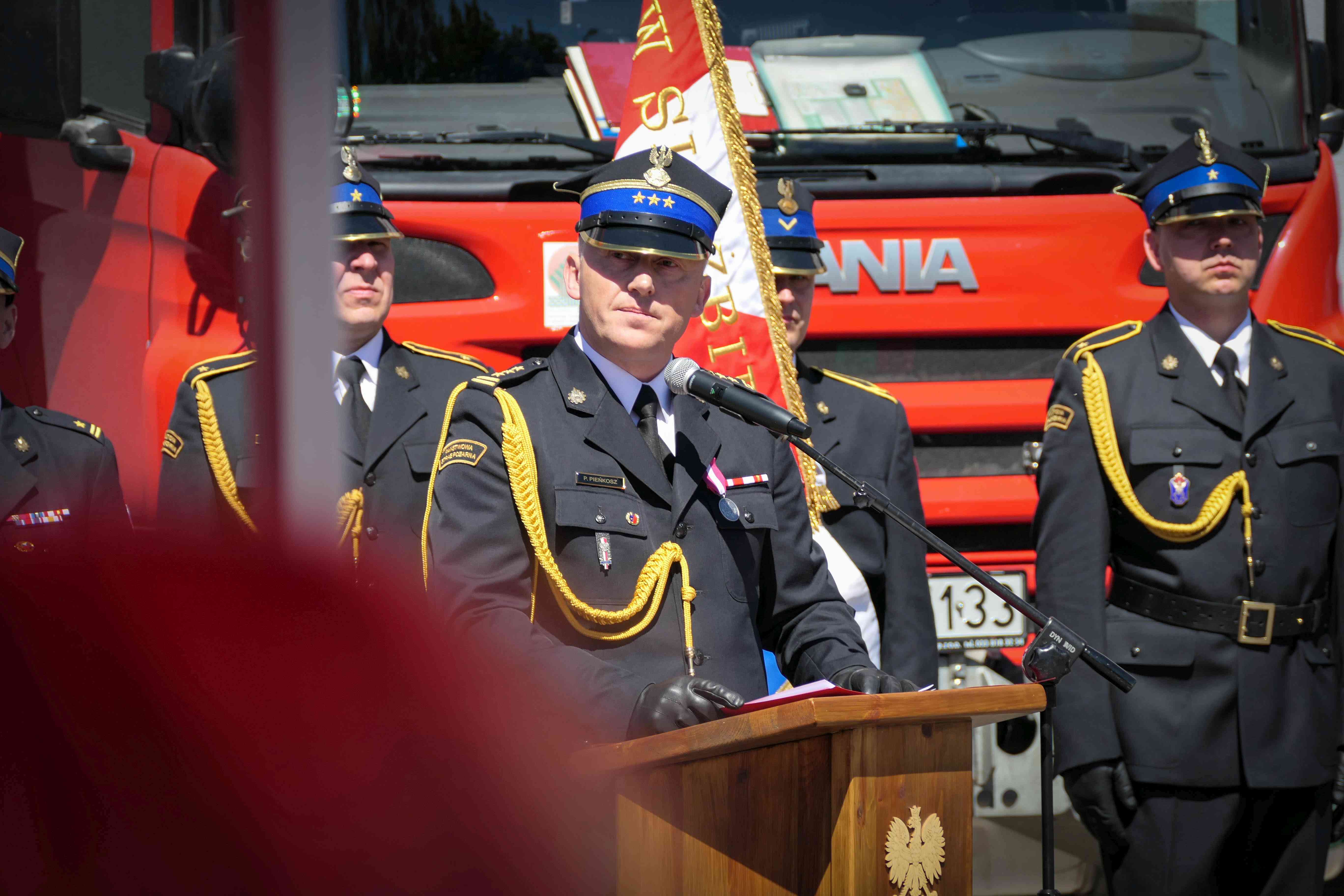 Komendant Powiatowy PSP w Piszu st. bryg. Paweł Pieńkosz przywitał przybyłych gości, a podczas przemówienia zwrócił uwagę na szczególny charakter uroczystości w związku z obchodzonym w tym roku jubileuszem 30-lecia uchwalenia ustawy o Państwowej Straży Pożarnej.