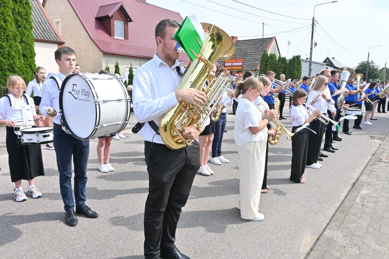 Przegląd rozpoczął się od uroczystego złożenia kwiatów przy obelisku upamiętniającym Jana Wiśniewskiego – założyciela, instruktora i wieloletniego kapelmistrza Młodzieżowej Orkiestry Dętej OSP w Płośnicy.