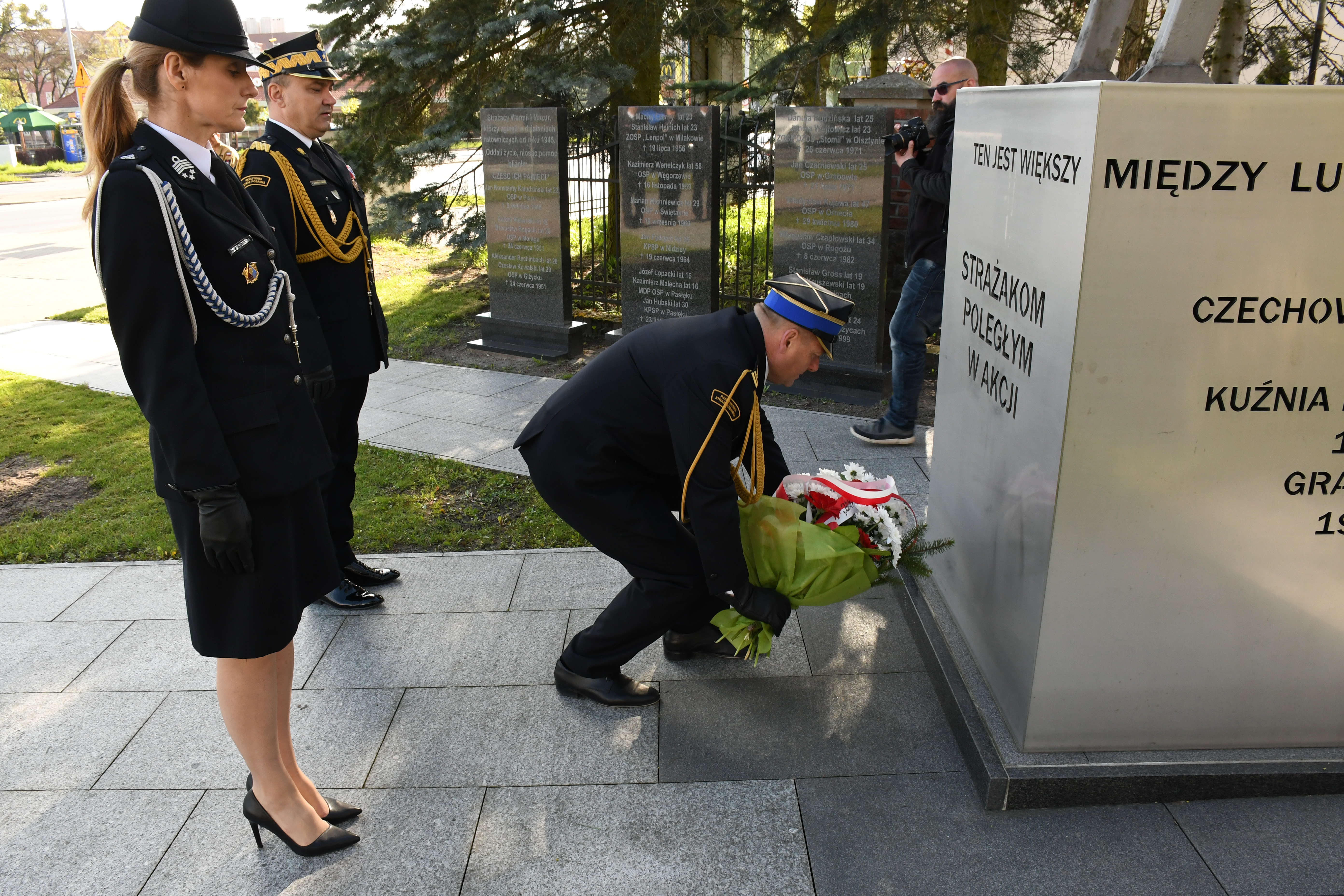 W dniu Świętego Floriana 4 maja obchodzimy Międzynarodowy Dzień Strażaka. W dniu naszego święta pamiętamy o strażakach, którzy odeszli na wieczną służbę. 4 maja o poranku nadbryg. Tomasz Komoszyński Warmińsko-Mazurski Komendant Wojewódzki Państwowej Straży Pożarnej wraz z dh Sylwią Jaskulską Wiceprezesem Zarządu Wojewódzkiego ZOSP RP, a zarazem Członkiem Zarządu Województwa Warmińsko-Mazurskiego i w asyście swoich Zastępców st. bryg. Adama Jastrzębskiego i st. bryg. Tomasza Ostrowskiego, a także st. bryg. Sergiusza Dłuskiego Zastępcy Komendanta Miejskiego PSP w Olsztynie i dh Macieja Jasińskiego Dyrektora Wykonawczego Zarządu Wojewódzkiego ZOSP RP złożyli symboliczną wiązankę kwiatów i zapalili znicz przed Pomnikiem Pamięci Poległym Strażakom w Olsztynie, ku pamięci strażaków, którzy odeszli na wieczną służbę.