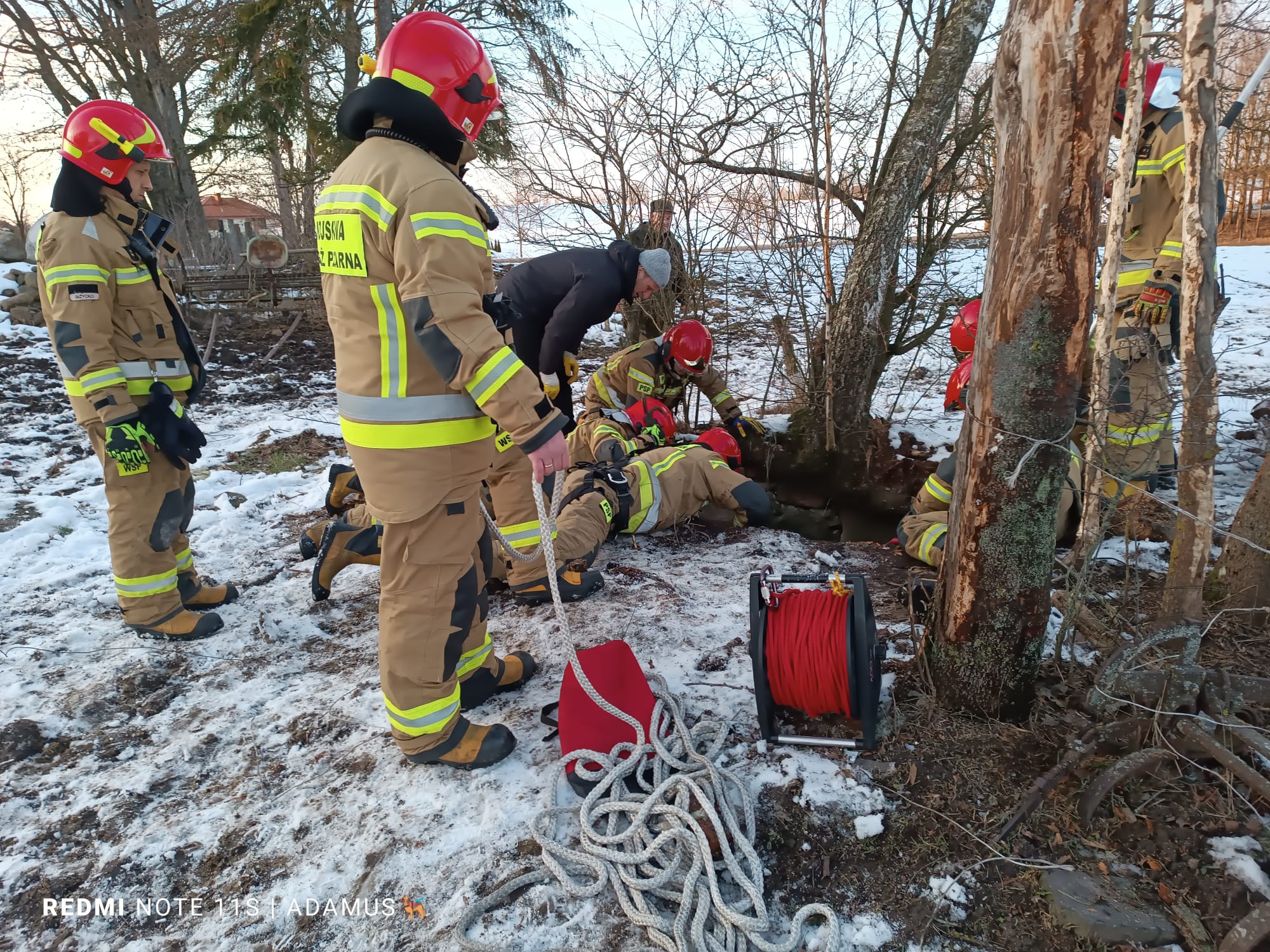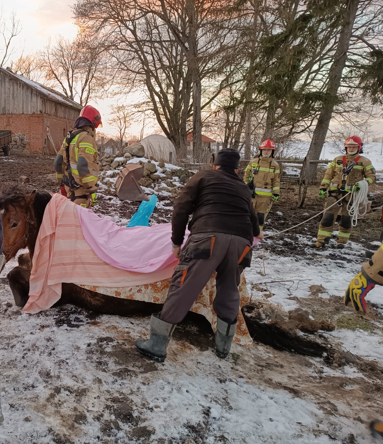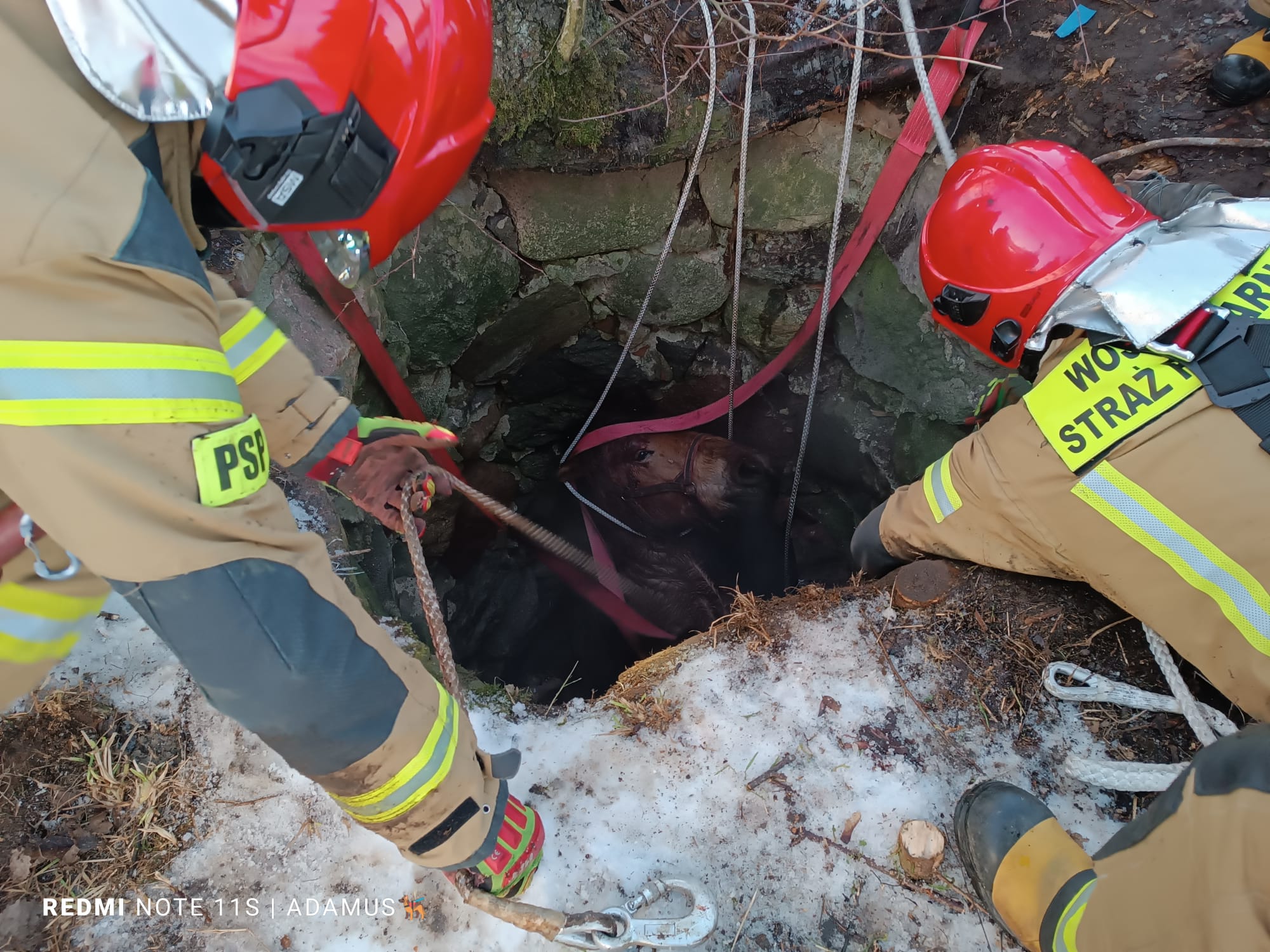 Po godzinie piętnastej 8 lutego w Sulimach w pow. giżyckim doszło do nieszczęśliwego wypadku. W pobliżu jednej z posesji klacz wpadła do starej studni. Zwierzę znalazło się w wąskiej, kamiennej studni na głębokości ponad 3 metrów. Klacz nie była w stanie samodzielnie się wydostać. Do akcji ratowniczej z giżyckiej jednostki ratowniczo-gaśniczej zadysponowano dwa zastępy pożarnicze oraz jeden z wojskowej straży pożarnej. Gdy strażacy przybyli na miejsce zdarzenia właściciel poinformował, że zwierzę jest bardzo wystraszone i już dosyć zmęczone. Klacz w studni usadowiona była zadem na dnie, a głowa w nienaturalny sposób opierała się o ściany. Strażacy przygotowali teren wokół studni, usunęli krzewy i konary drzew, które utrudniały dostęp do zwierzęcia. Równolegle strażacy przygotowali zawiesia pasowe, które przełożyli za grzbietem i przednimi kończynami klaczy, tworząc w ten sposób pętlę ratowniczą. Ponadto głowę zwierzęcia ustabilizowali przy pomocy linek ratowniczych. Tak przygotowaną klacz wydobyto ze studni przy wykorzystaniu ciągnika rolniczego, wyposażonego w wysięgnik hydrauliczny. Klacz po chwili odpoczynku o własnych siłach powróciła do stajni.