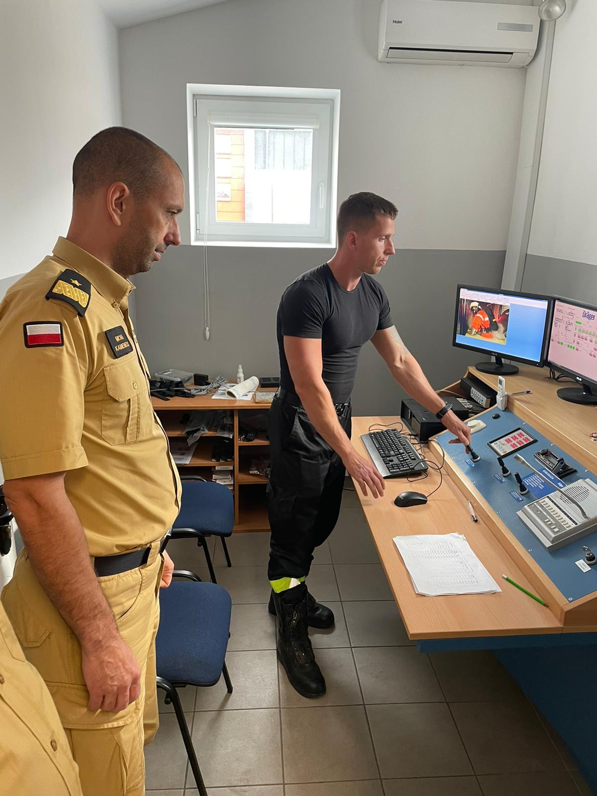 Komendant Wojewódzki PSP ponadto zapoznał się ze sprawami bieżącymi jednostki, a także obejrzał trenażer symulujący warunki pożarowe tzw. komorę dymową.