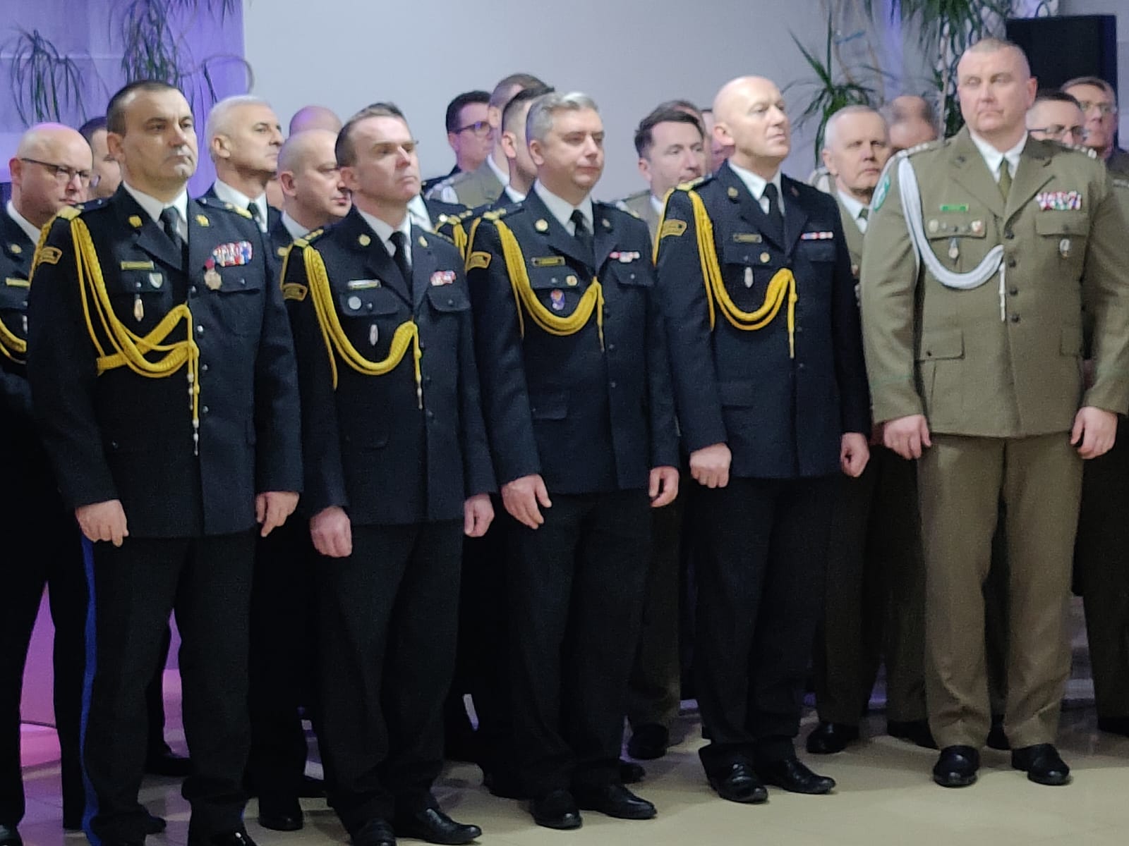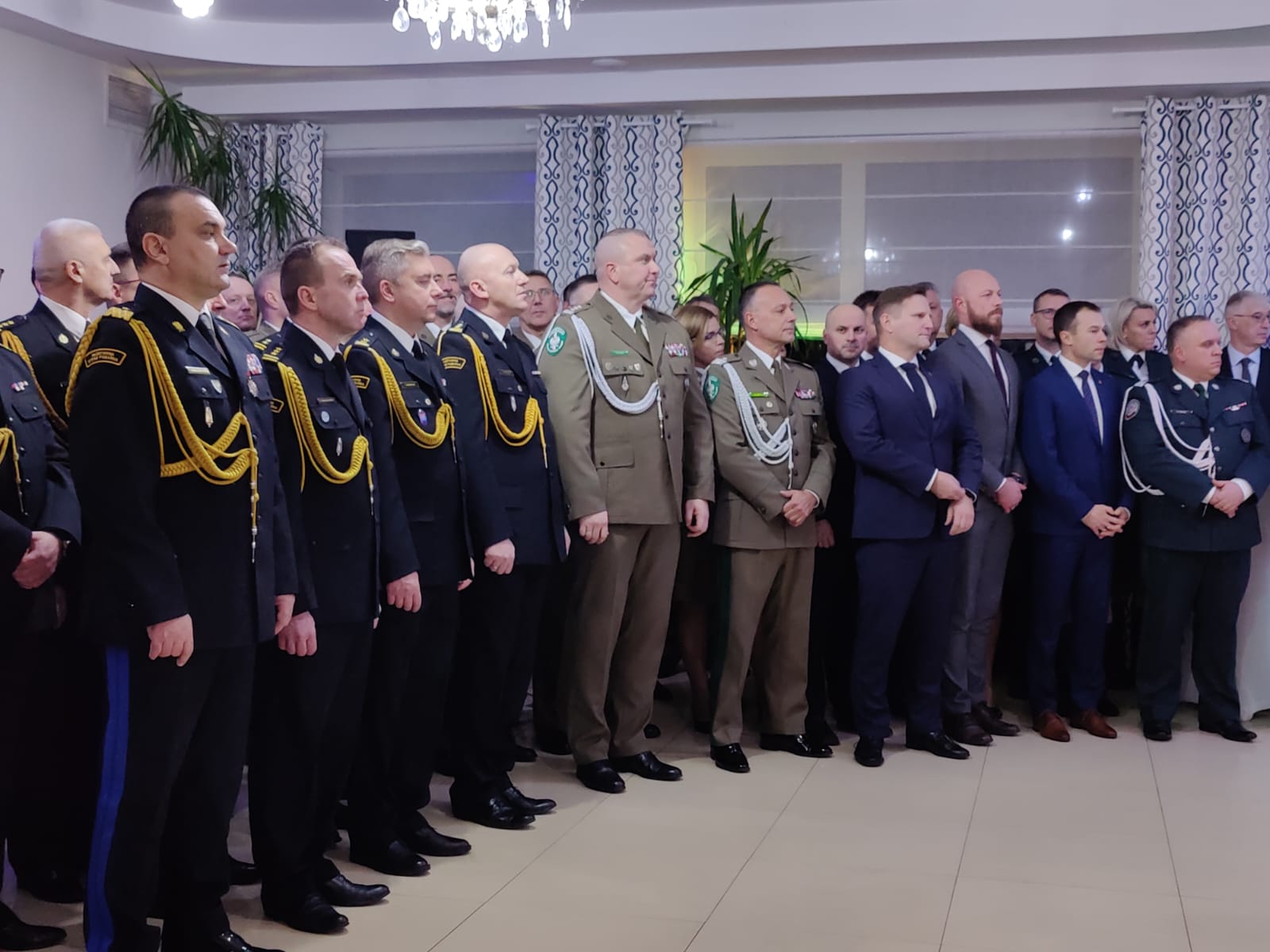 Tradycyjnie przed świętami Bożego Narodzenia przedstawiciele służb mundurowych województwa warmińsko-mazurskiego, a także przedstawiciele administracji rządowej i samorządowej oraz innych instytucji z regionu spotykali się na wigilii służb mundurowych. W tym roku gospodarzem spotkania opłatkowego, które 16 grudnia odbyło się w Waplewie, była 16. Dywizja Zmechanizowana Wojska Polskiego. Państwową Straż Pożarną reprezentował nadbryg. Tomasz Komoszyński Warmińsko-Mazurski Komendant Wojewódzki PSP wraz ze swoim Zastępcą st. bryg. Tomaszem Ostrowskim, a także komendanci powiatowi i miejscy PSP z naszego województwa. Na spotkanie oprócz funkcjonariuszy i pracowników służb przybyli także zaproszeni goście. Wśród nich m.in. Ksiądz Arcybiskup Metropolita Warmiński Józef Górzyński, Wojewoda Warmińsko-Mazurski Artur Chojecki, Wicemarszałek Województwa Warmińsko-Mazurskiego Sylwia Jaskulska, a także inni licznie zgromadzeni przedstawiciele administracji i instytucji rządowych i samorządowych. Ksiądz Arcybiskup pobłogosławił i poświęcił opłatki, po czym zgromadzeni przełamując się symbolicznie opłatkiem, złożyli sobie życzenia. O świąteczny nastrój koncertem kolęd zadbał zespół Warnijsko Kapela.