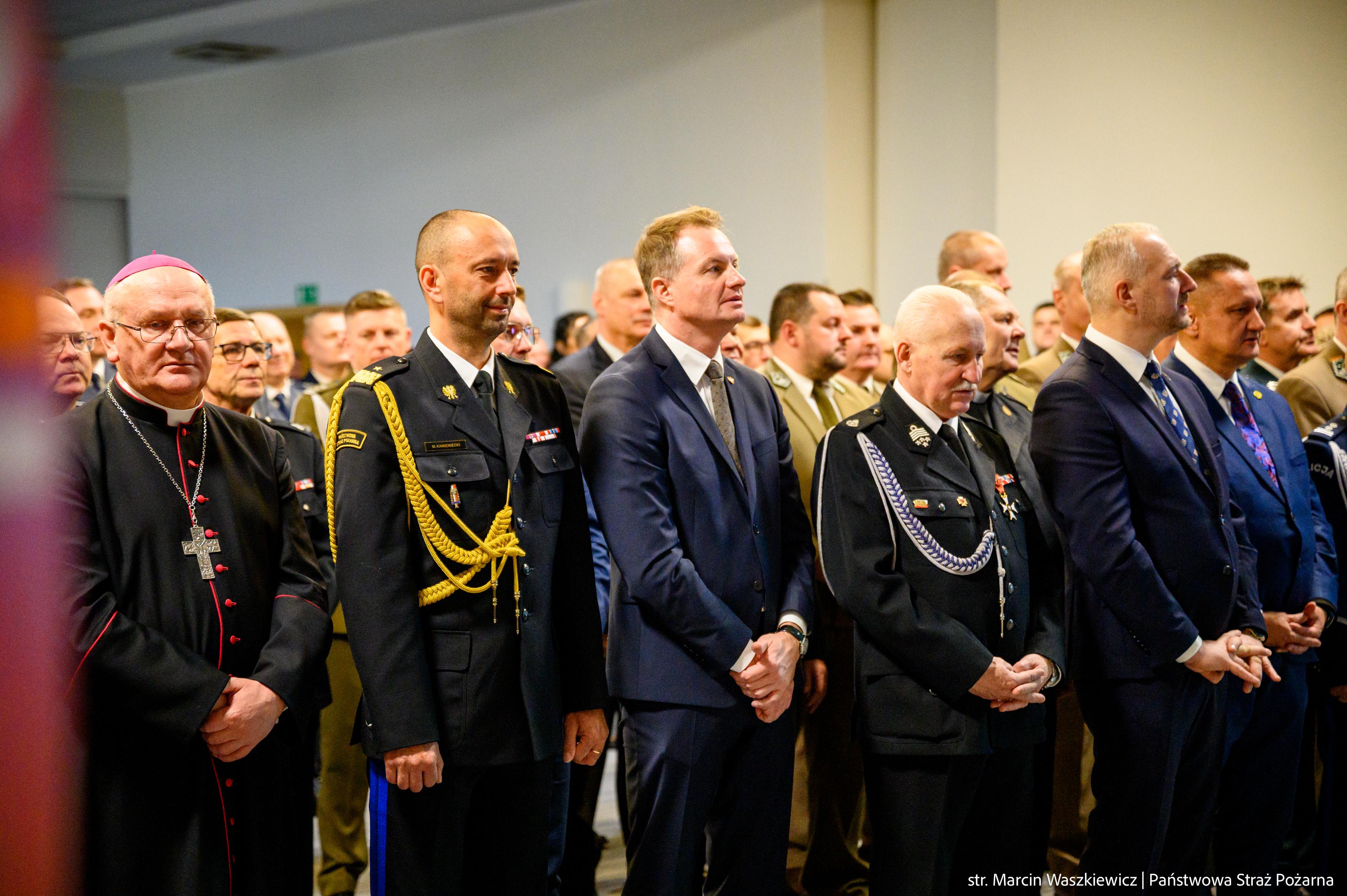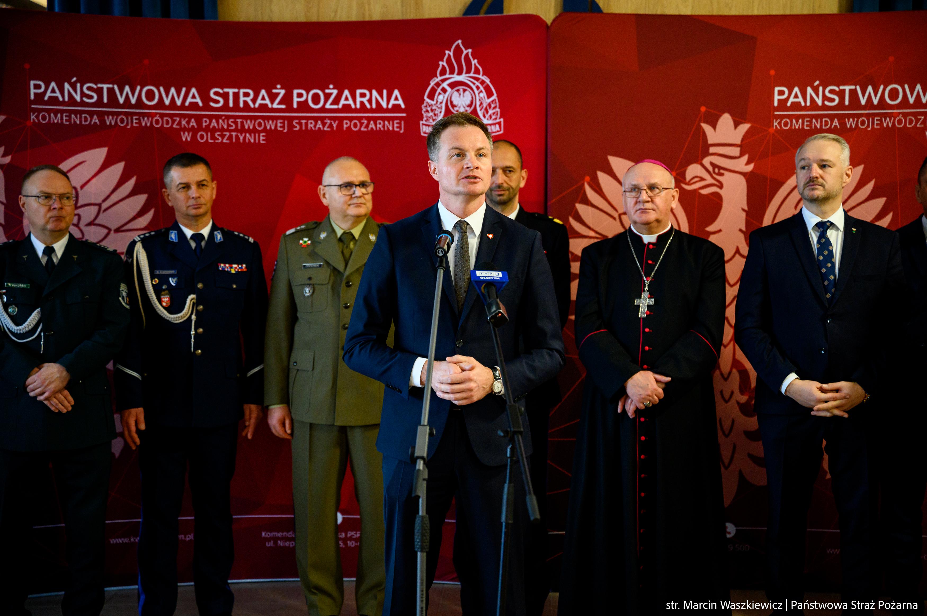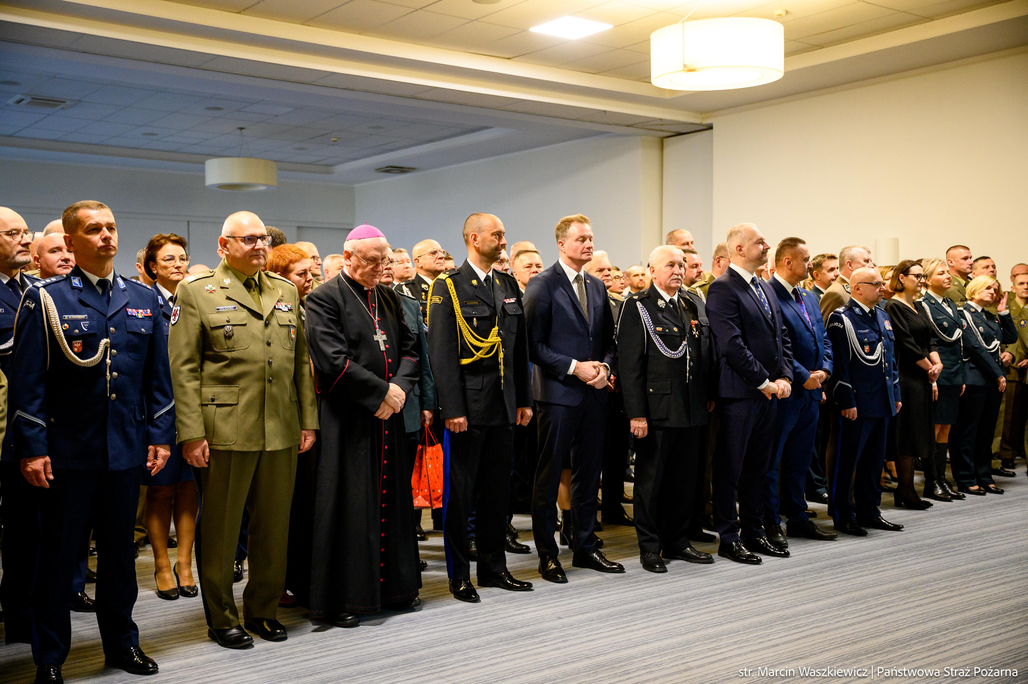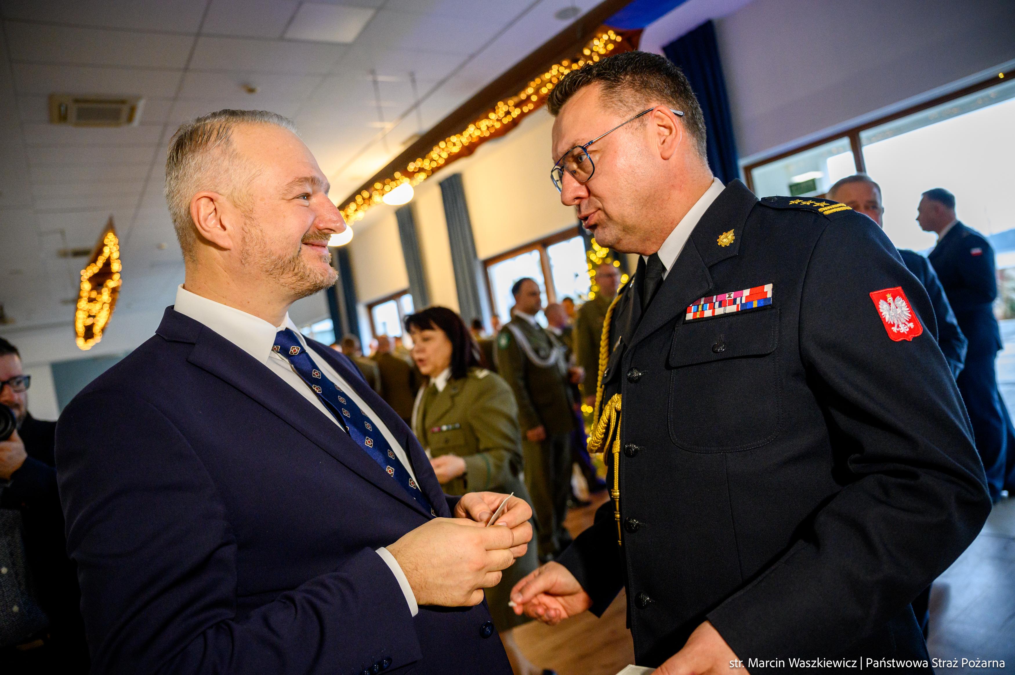 Zgromadzonych na spotkaniu opłatkowym, jako tegoroczny gospodarz przywitał nadbryg. Michał Kamieniecki Warmińsko-Mazurski Komendant Wojewódzki PSP, a pośród nich obecni byli między innymi: