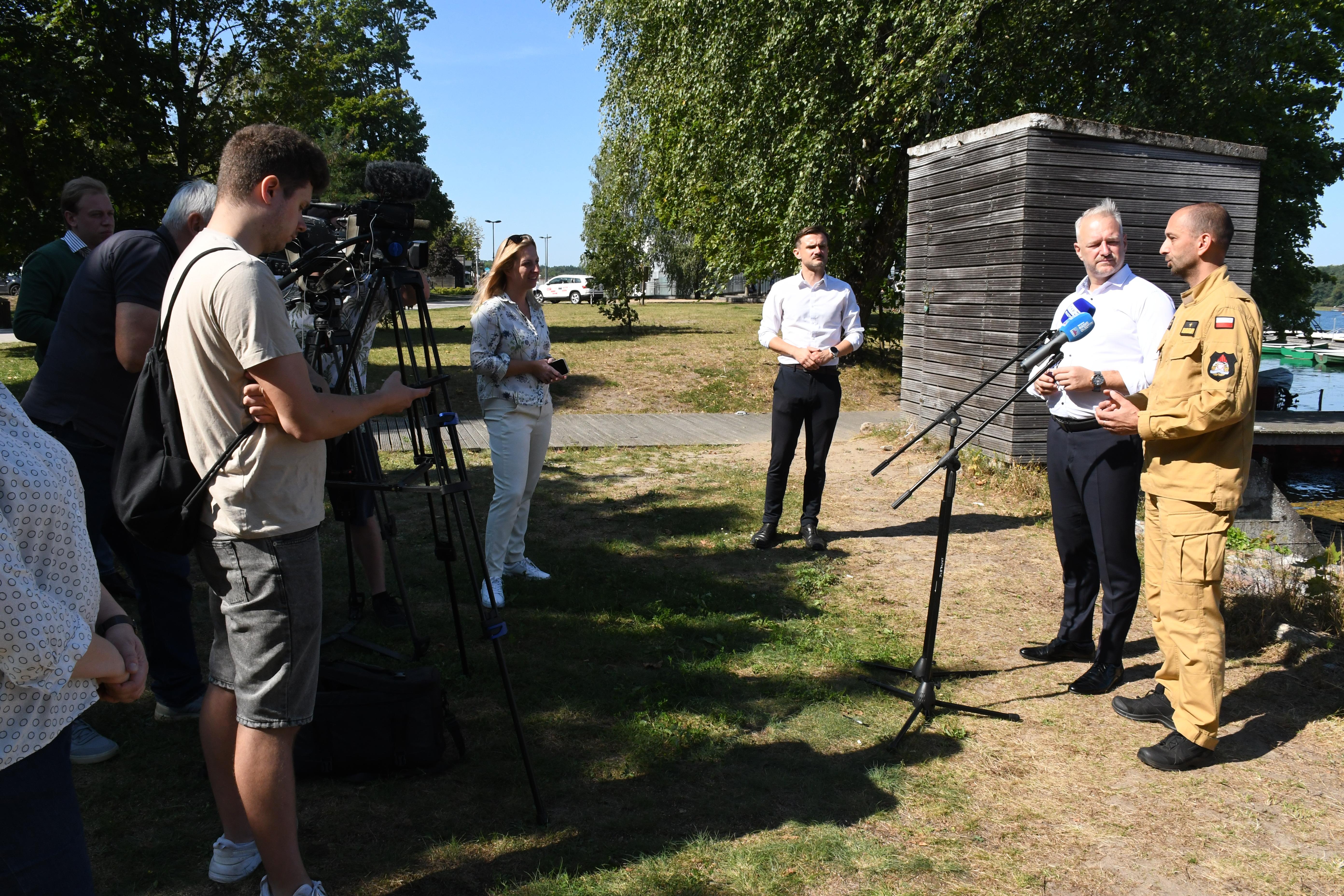 Dziś (27.08.2024) na plaży miejskiej w Olsztynie odbył się briefing prasowy Wojewody Warmińsko-Mazurskiego Radosława Króla i Warmińsko-Mazurskiego Komendanta Wojewódzkiego Państwowej Straży Pożarnej nadbryg. Michała Kamienieckiego. Tematyką briefingu było bezpieczeństwo na akwenach w naszym województwie. Wojewoda poinformował o przekazaniu 300 tys. zł na zakup 4 łodzi ratowniczych do komend PSP w: Nidzicy, Piszu, Węgorzewie i Elblągu. Łodzie zostaną zakupione w montażu finansowym ze środków wojewody oraz samorządów.