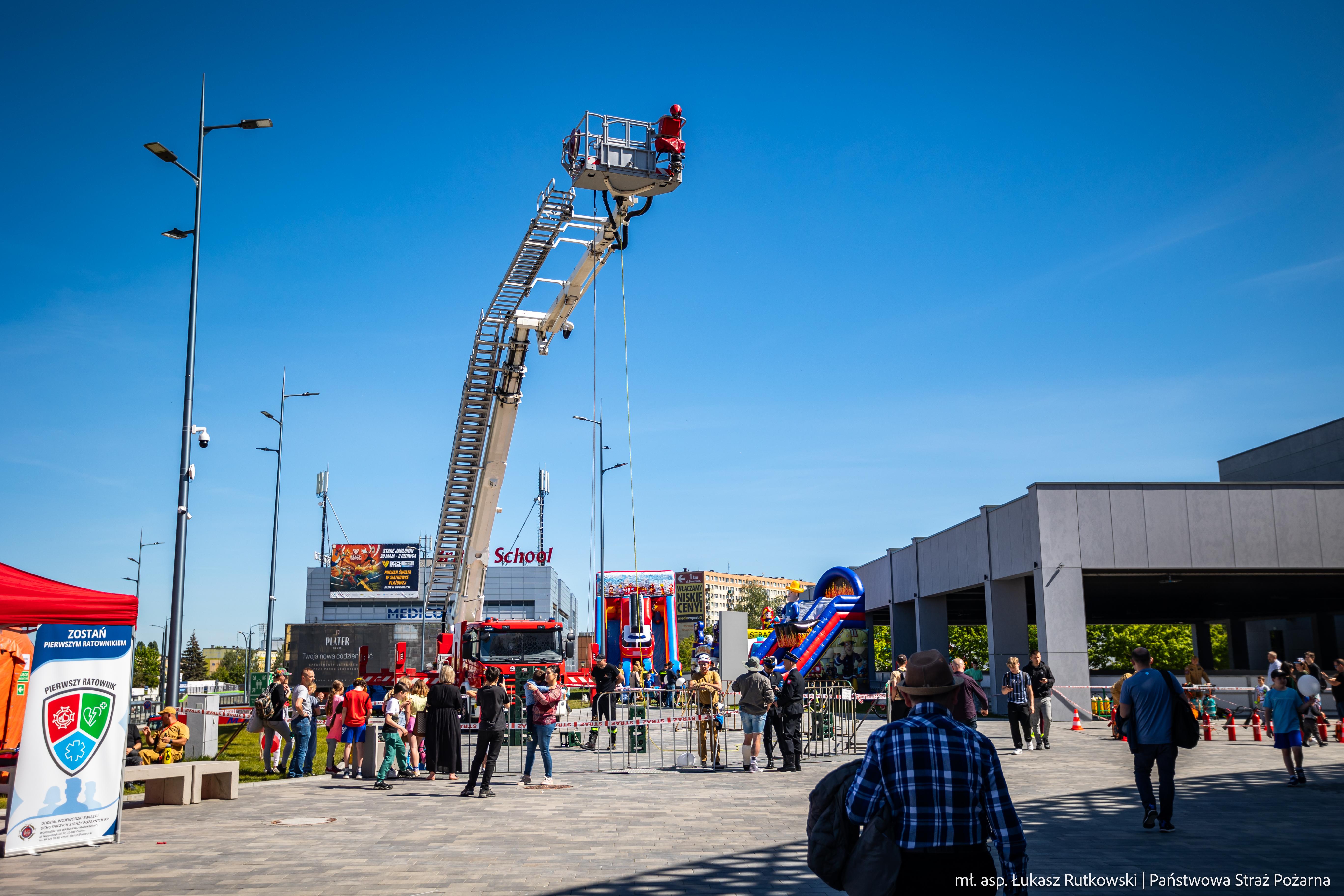 Tego dnia przy hali „Urania” odbył się również otwarty festyn strażacki, gdzie dla zgromadzonych czekało wiele atrakcji, a aktywni uczestnicy festynu mogli liczyć na nagrody, które wręczył st. bryg. Tomasz Ostrowski Zastępca Warmińsko-Mazurskiego Komendanta Wojewódzkiego PSP.