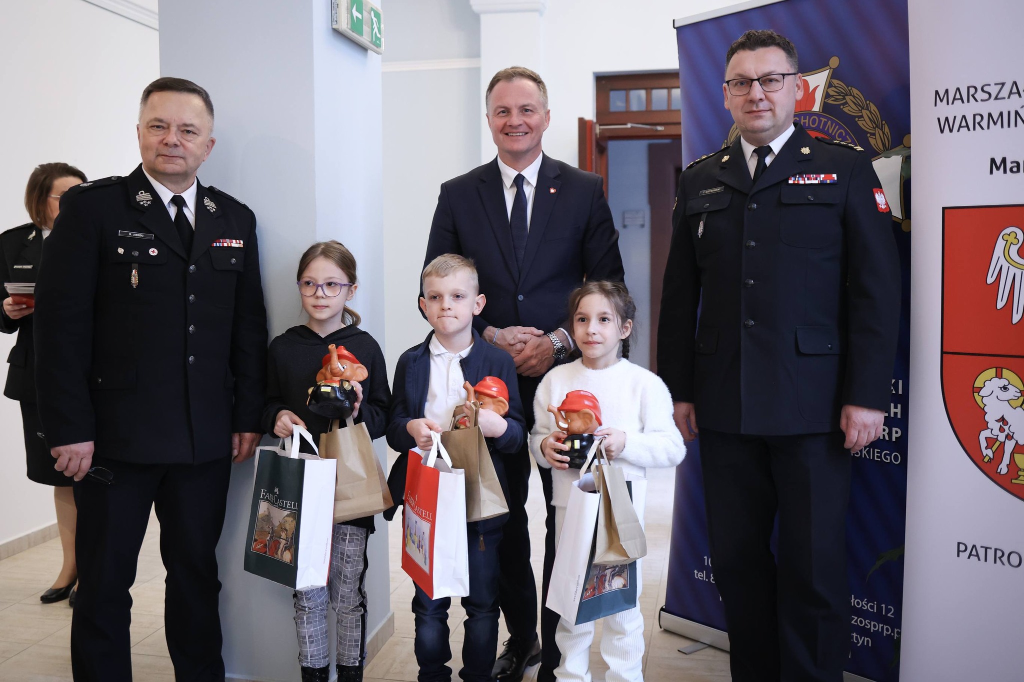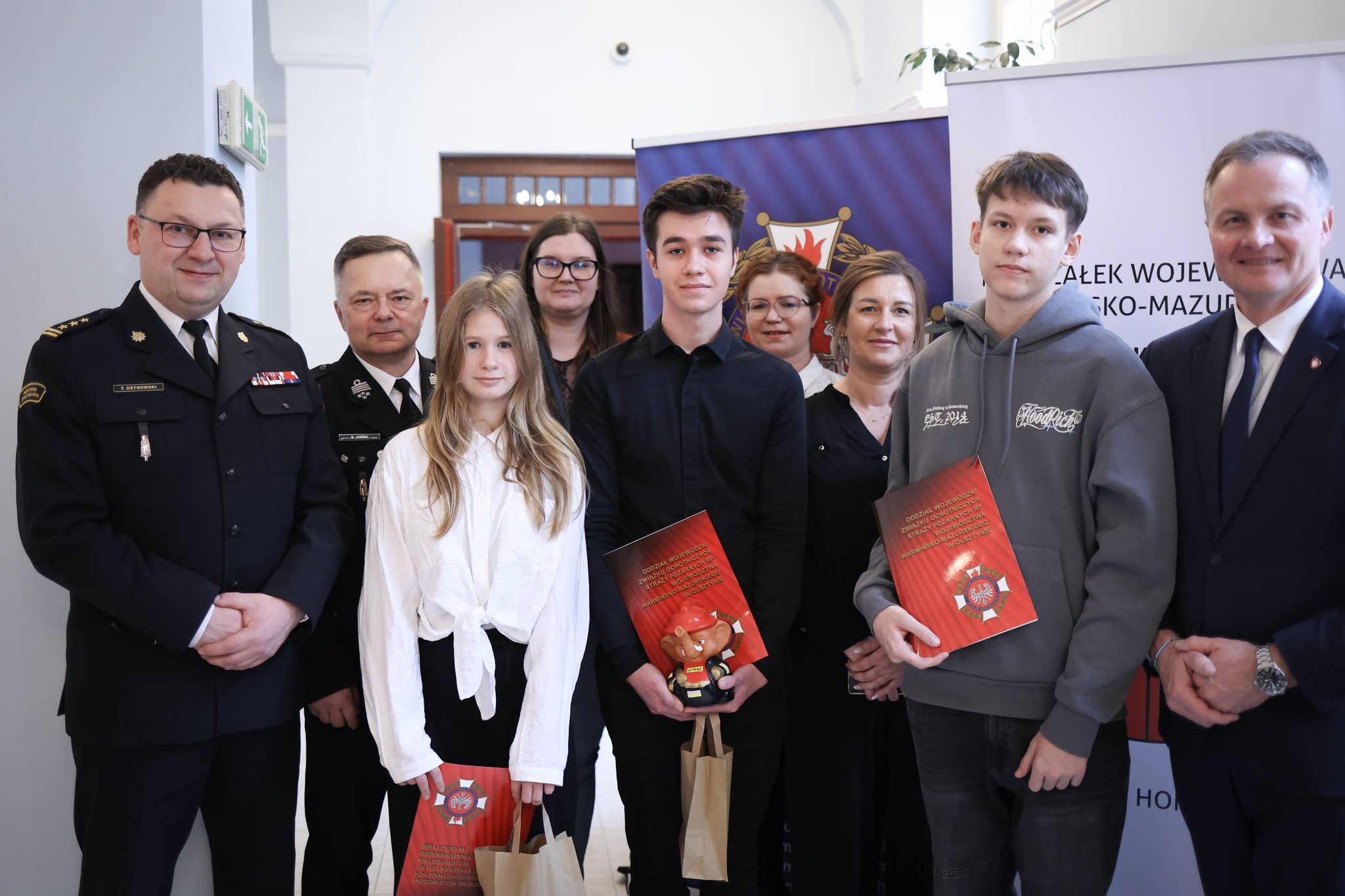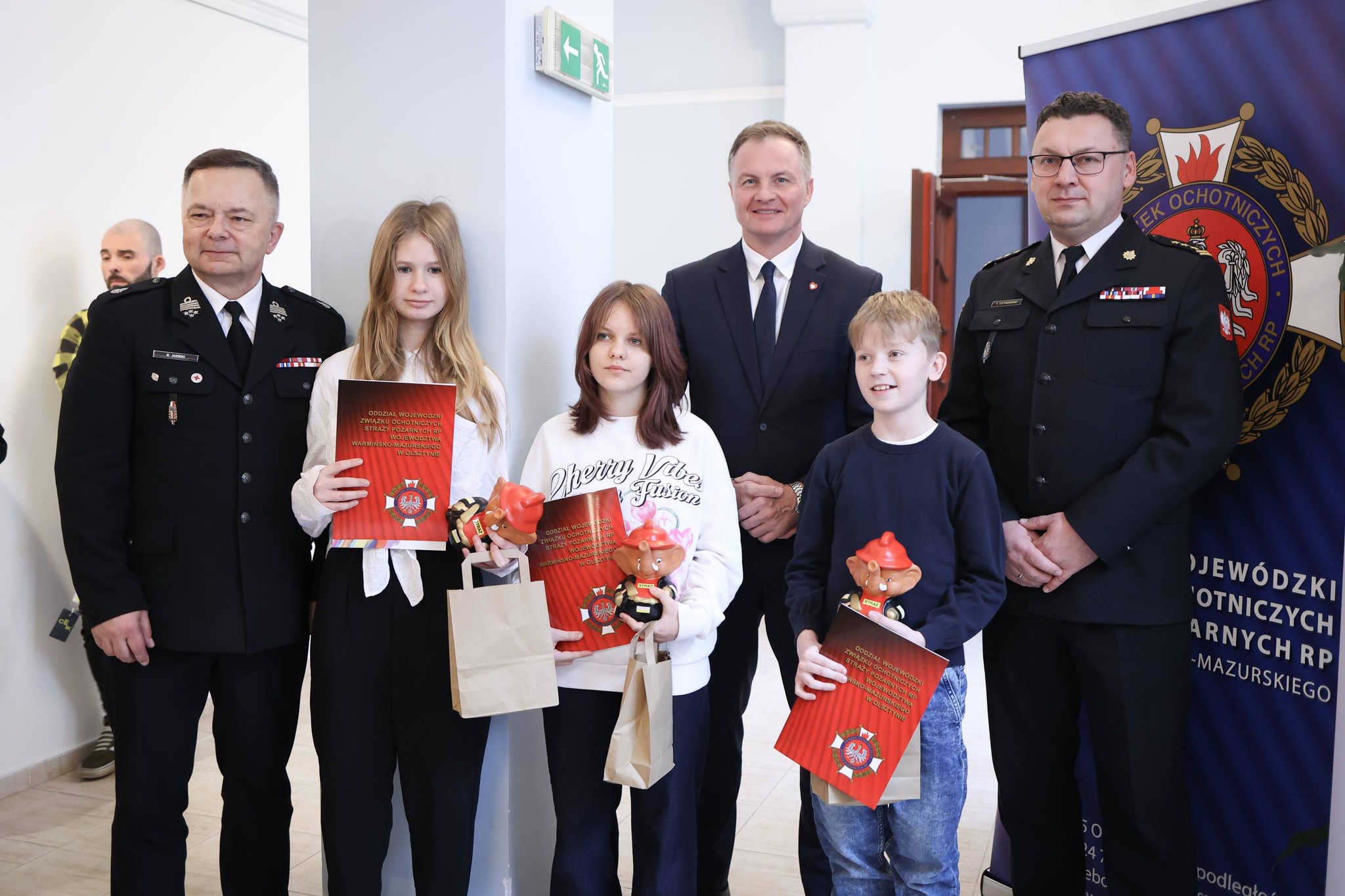 Uroczystego wręczenia wyróżnień i nagród dokonali Marcin Kuchciński Marszałek Województwa Warmińsko-Mazurskiego, st. bryg. Tomasz Ostrowski Zastępca Warmińsko-Mazurskiego Komendanta Wojewódzkiego Państwowej Straży Pożarnej oraz dh Maciej Jasiński Dyrektor Zarządu Wykonawczego ZOSP RP w Olsztynie.