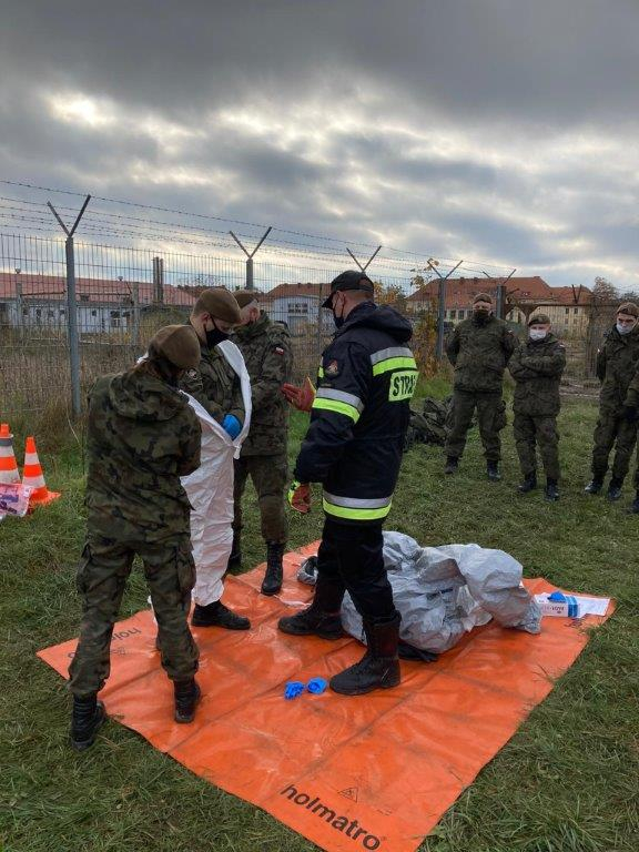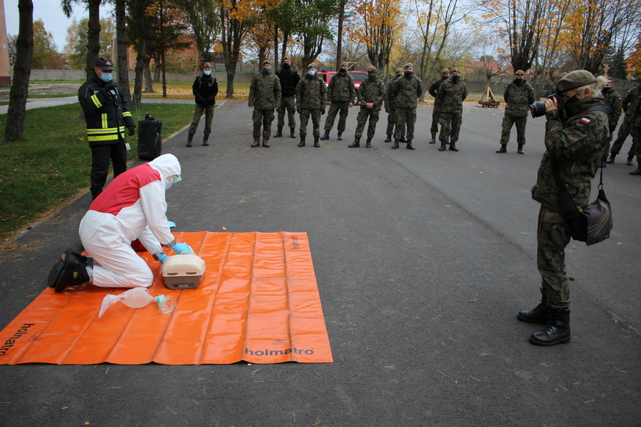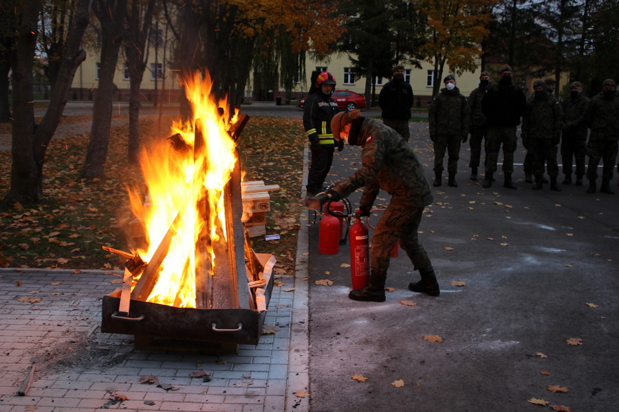 Strażacy omówili zasady postępowania, alarmowania i przeprowadzania ewakuacji z budynków koszarowych oraz zaprezentowali wytyczne dotyczące udzielania pomocy medycznej w zakresie resuscytacji krążeniowo-oddechowej z wykorzystaniem manekinów oraz postępowania wobec zagrożenia COVID-19. Żołnierze mieli okazję przećwiczyć zasady obsługi podręcznego sprzętu gaśniczego oraz nabyć wiedzę w zakresie grup pożarów i prawidłowego wykorzystania gaśnic.