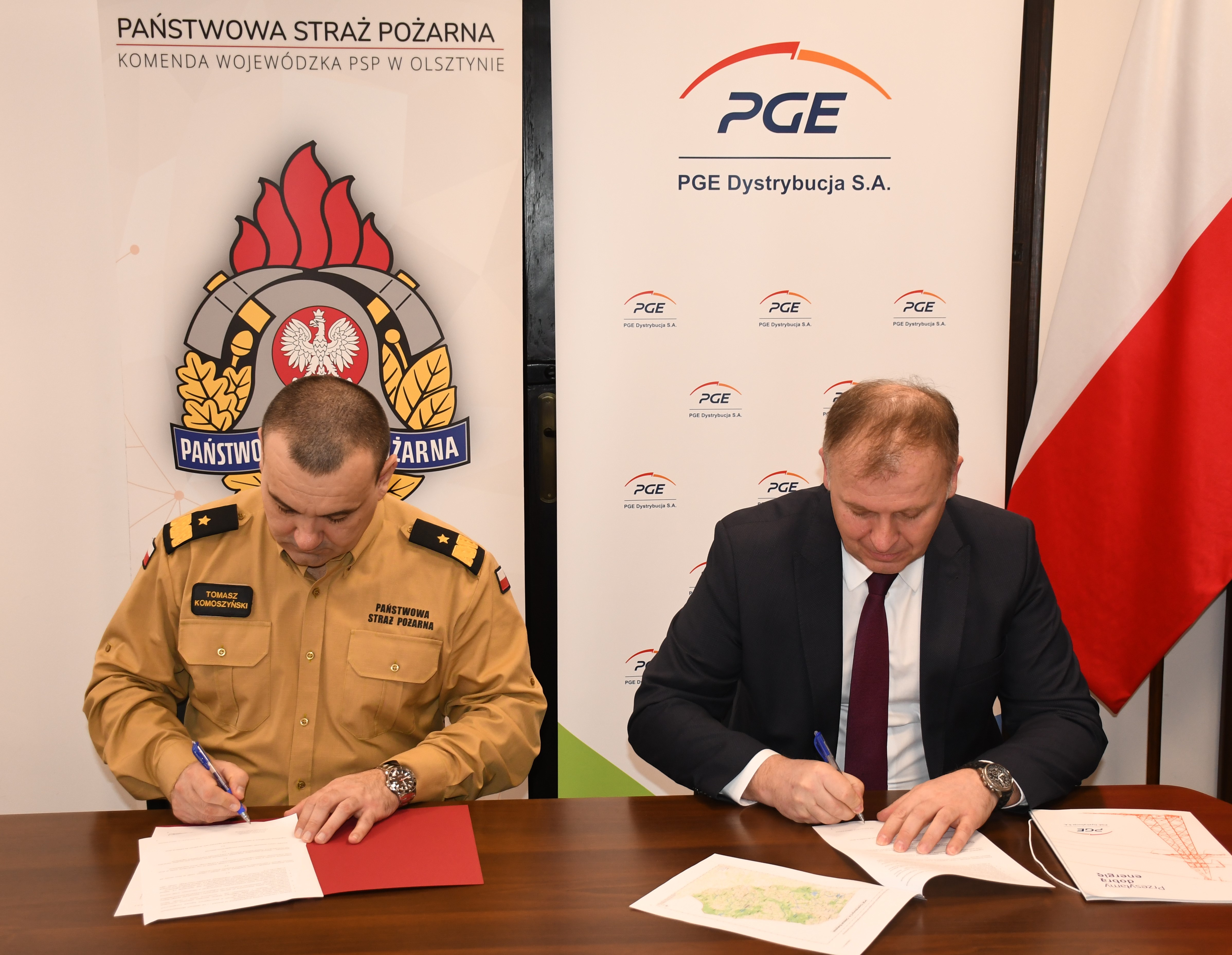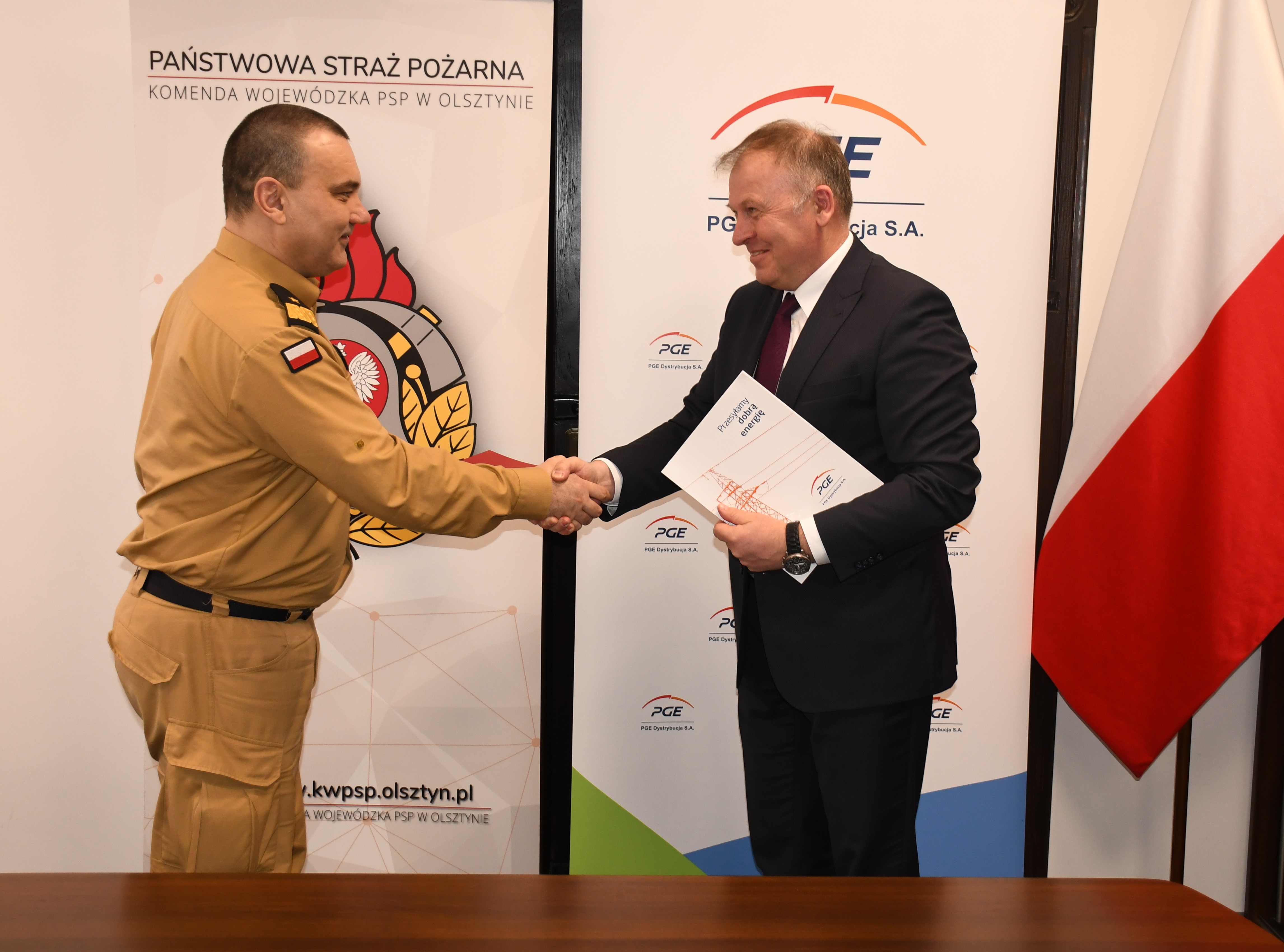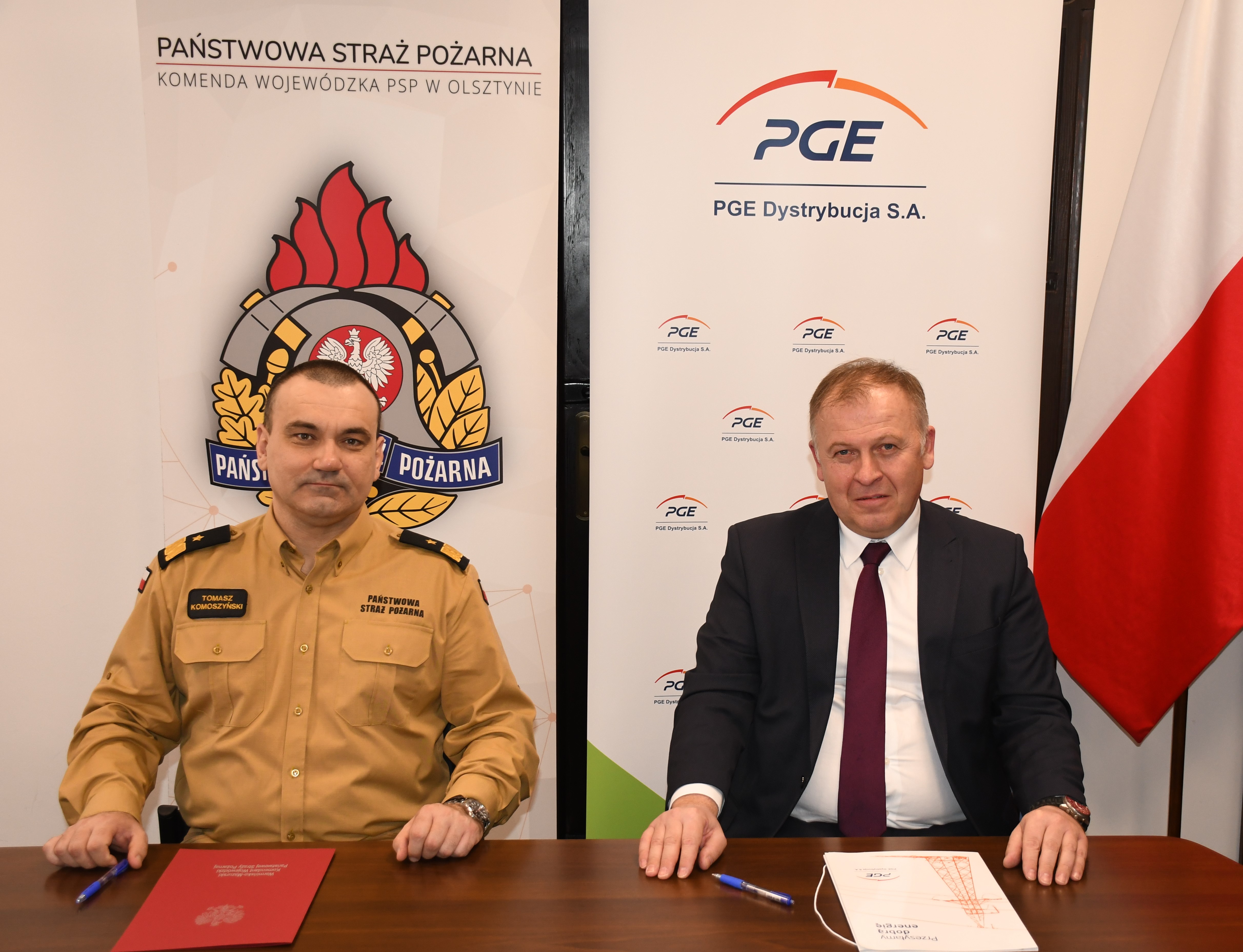 Komenda Wojewódzka Państwowej Straży Pożarnej w Olsztynie i PGE Dystrybucja Oddział Białystok podpisały list intencyjny o współpracy. Porozumienie zostało zawarte 17 lutego w Komendzie Wojewódzkiej Państwowej Straży Pożarnej w Olsztynie. Podpisy na liście intencyjnym złożyli: nadbryg. Tomasz Komoszyński – Warmińsko-Mazurski Komendant Wojewódzki PSP i Jacek Płoński – Dyrektor Generalny PGE Dystrybucja Oddziału Białystok.