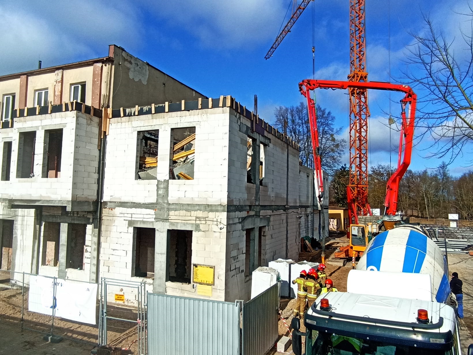 Kilka minut po godzinie jedenastej 3 marca na placu budowy domu kultury w Piszu doszło do wypadku. Podczas zalewania stropu betonem zwaliła się konstrukcja szalunkowa i przygniotła pracownika. Do akcji ratowniczej zadysponowano zastępy pożarnicze z jednostki ratowniczo-gaśniczej w Piszu oraz okoliczne jednostki Ochotniczych Straży Pożarnych w sumie siedem zastępów. Na miejsce zdarzenia wyjechał także Komendant Powiatowy Państwowej Straży Pożarnej w Piszu. Na miejscu wypadku strażacy na piętrze zastali zawaloną konstrukcję szalunkową stropu i zwały świeżego betonu, pod którymi znajdował się jeden z pracowników. Mężczyzna był przytomny, jednak nie mógł się wydostać spod zawalonej konstrukcji. Strażacy wykonali dostęp do poszkodowanego i go ewakuowali na zewnątrz budynku. Mężczyzna z urazem kończyny dolnej został przekazany zespołowi Państwowego Ratownictwa Medycznego, który zabrał go do szpitala. Pomimo informacji od kierownika budowy, że nikt więcej w tym rejonie w momencie wypadku nie przebywał, strażacy podjęli decyzję o usunięciu zawaliska, po to, aby upewnić się, że nikt więcej nie został ranny. Na miejsce wypadku przyjechał dźwig, z którego pomocą sukcesywnie usuwane były elementy zawalonego stropu. Przyczyny wypadku ustala Policja.