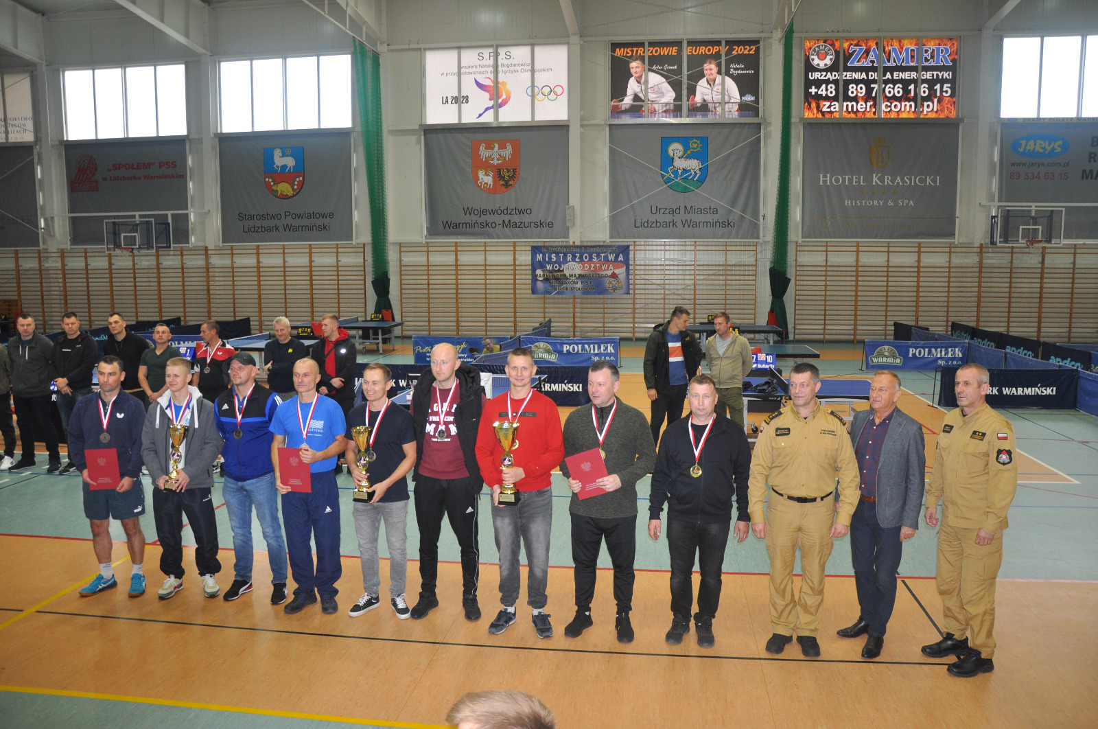 W czwartek 19 października w Lidzbarku Warmińskim odbyły się XXIV Mistrzostwa Województwa Warmińsko-Mazurskiego Strażaków Państwowej Straży Pożarnej w Tenisie Stołowym. Otwarcia zawodów dokonał st. bryg. Rafał Szymukowicz lidzbarski Komendant Powiatowy PSP. W turnieju udział wzięły drużyny reprezentujące komendy miejskie i powiatowe PSP z województwa warmińsko-mazurskiego. Zmagania sportowe obserwował między innymi Zastępca Warmińsko-Mazurskiego Komendanta Wojewódzkiego PSP st. bryg. Krzysztof Mierzejewski. Walka przy pingpongowych stołach była niezwykle zacięta i pasjonująca. Zawodnicy zaprezentowali wiele znakomitych zagrań, na niemal zawodowym poziomie. Po pełnym cyklu turniejowym Mistrzem Województwa Strażaków PSP została drużyna z Komendy Powiatowej PSP w Nowym Mieście Lubawskim. Indywidualnym Mistrzem Województwa został Jacek Kołodyński z nidzickiej Komendy Powiatowej PSP.
