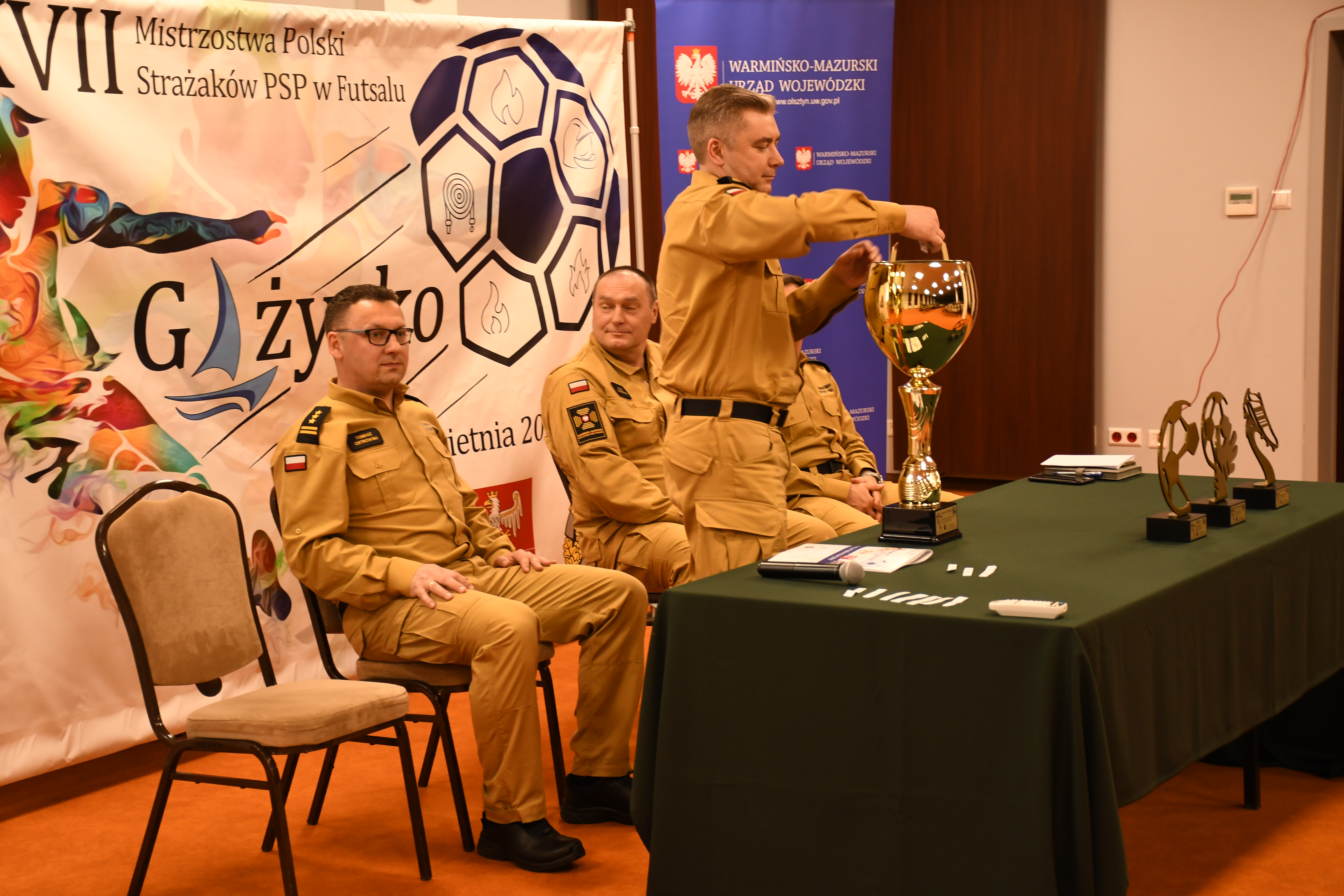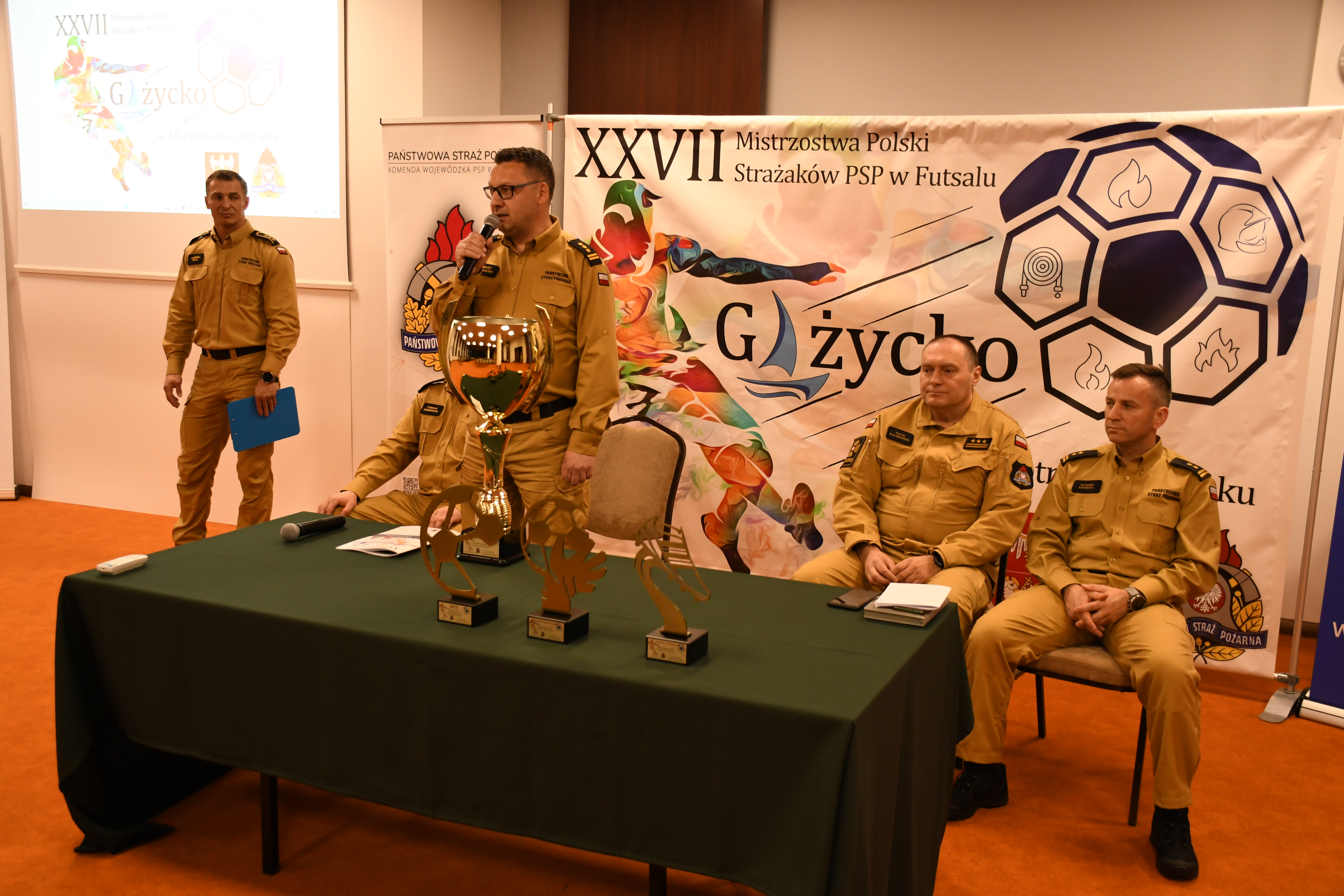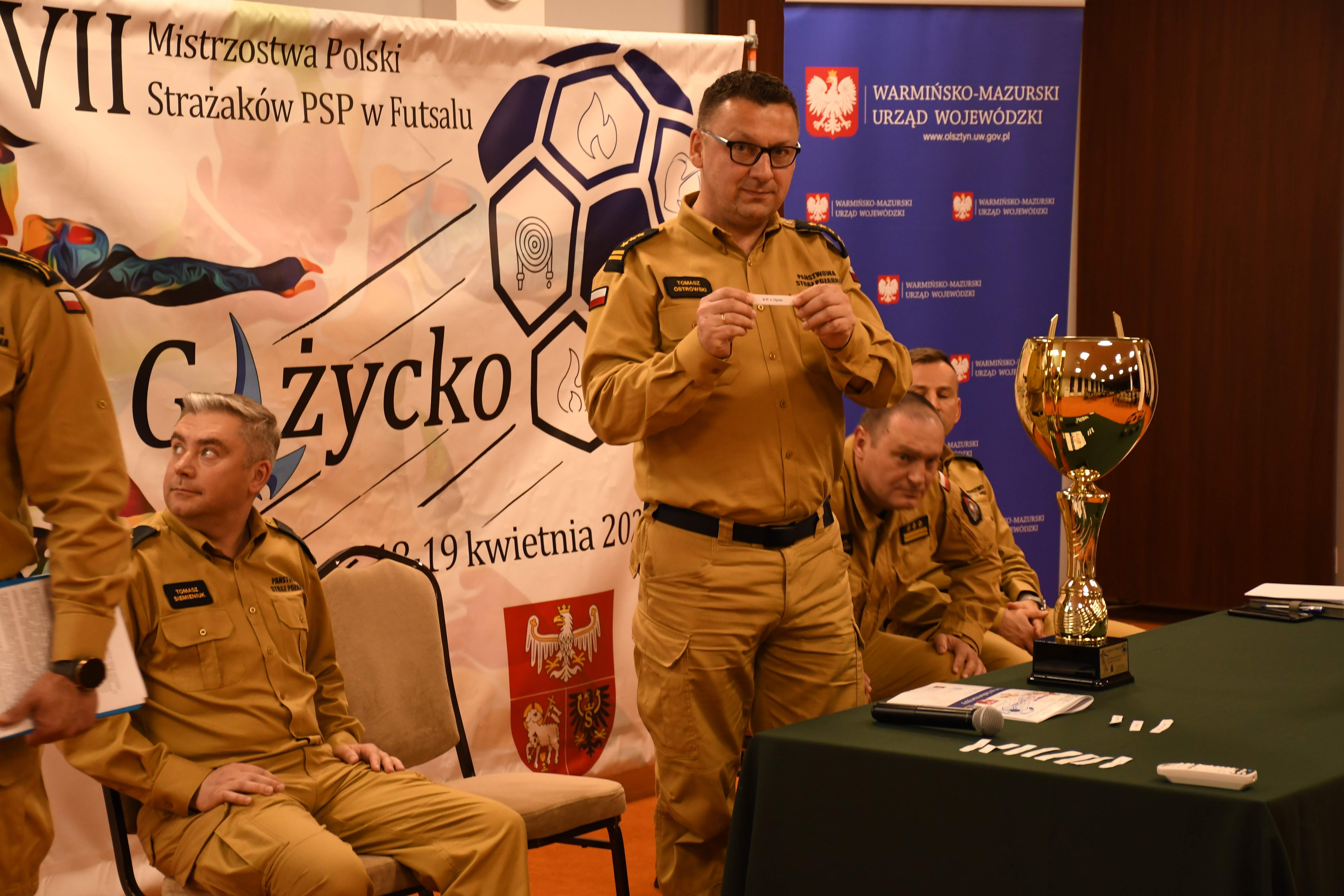 XXVII Mistrzostwa Polski Strażaków Państwowej Straży Pożarnej w Futsalu – Giżycko 2023 wystartowały. W Centralnym Ośrodku Sportu w Giżycku odbyła się odprawa kapitanów drużyn i losowanie grup turniejowych. Inaugurację spotkania w imieniu nadbryg. Tomasza Komoszyńskiego Warmińsko-Mazurskiego Komendanta Wojewódzkiego PSP, rozpoczął st. bryg. Tomasz Ostrowski Zastępca Warmińsko-Mazurskiego Komendanta Wojewódzkiego PSP, który przywitał wszystkie drużyny na giżyckiej ziemi. Następnie rozlosowano drużyny do czterech grup turniejowych.