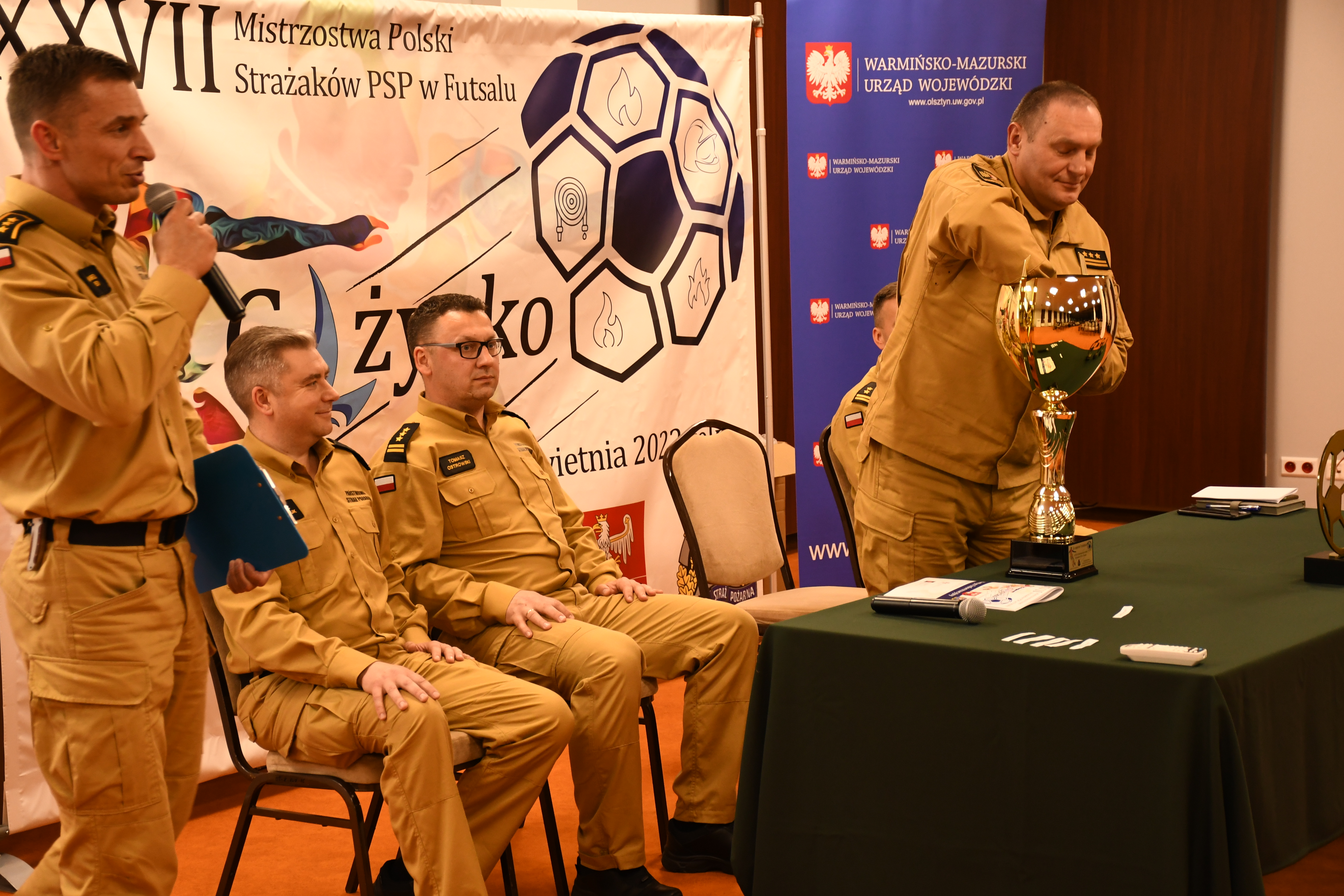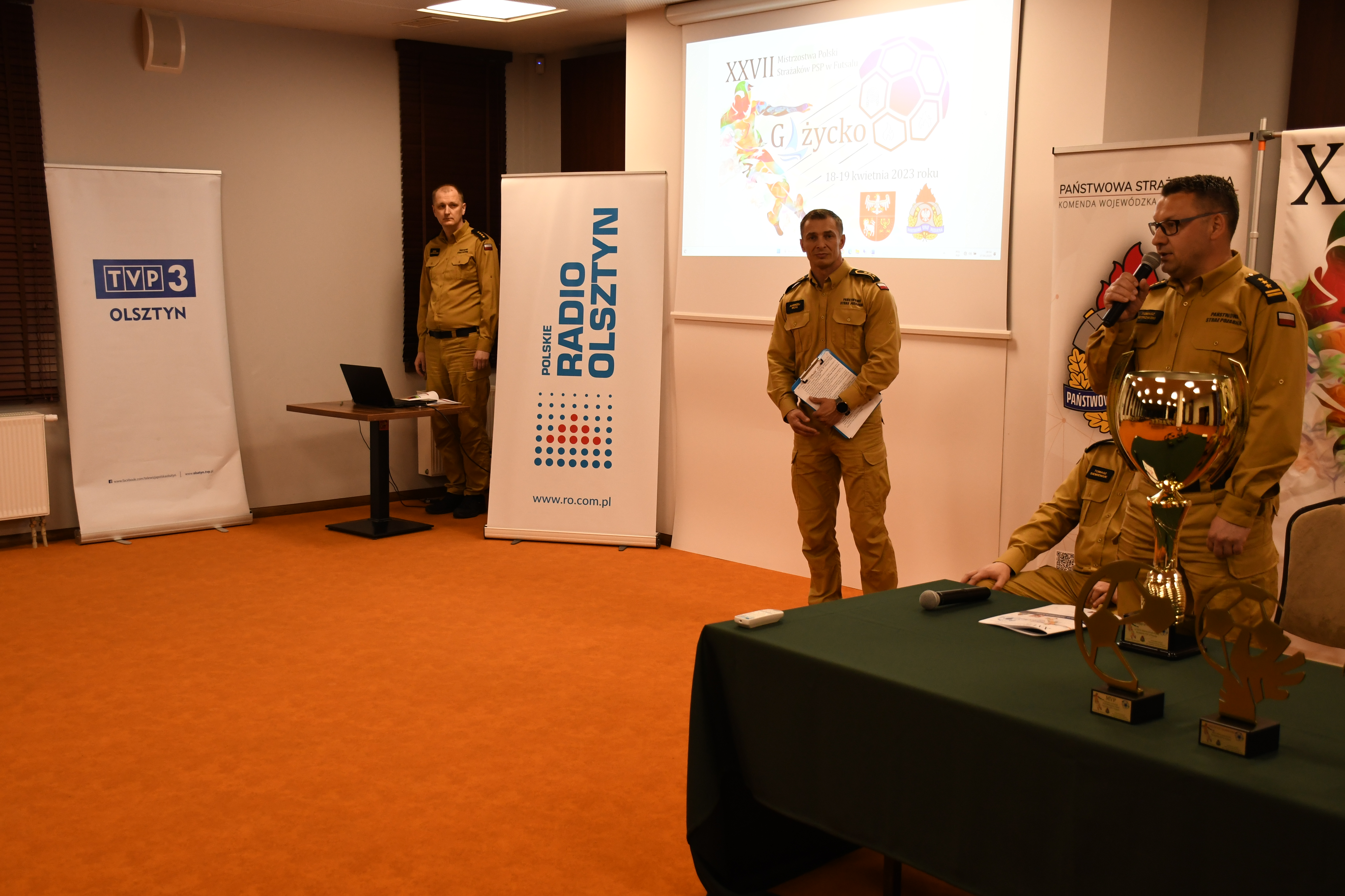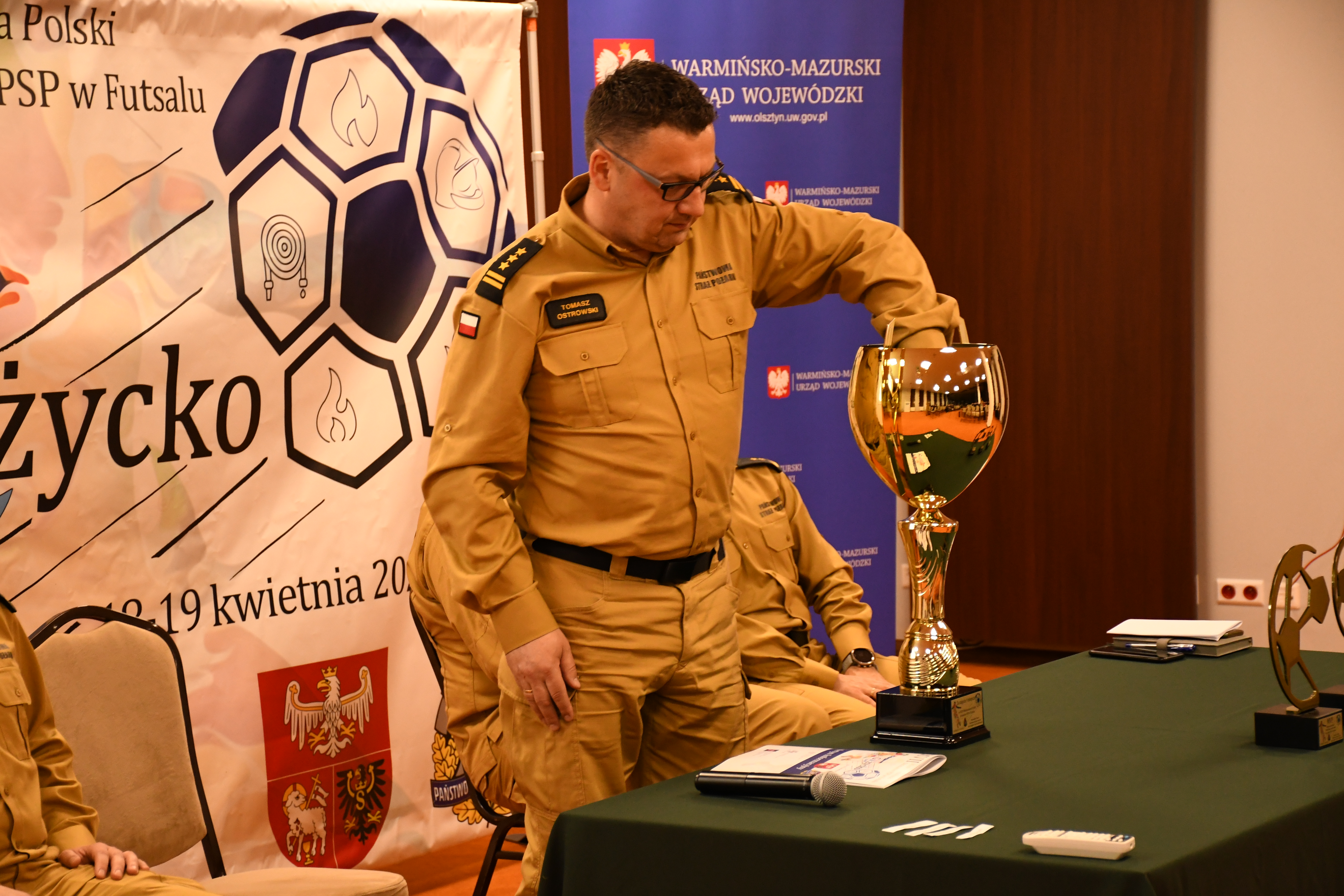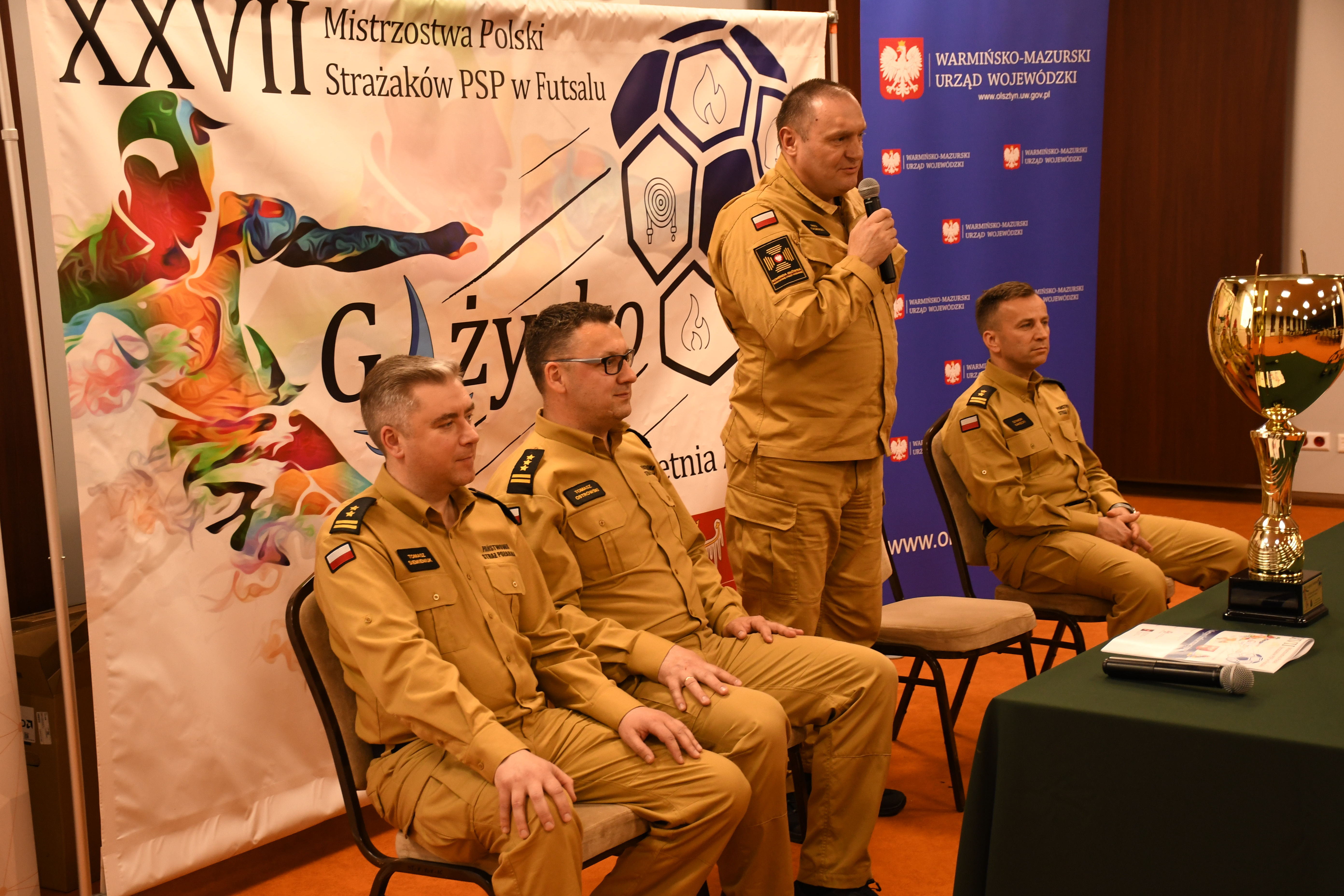 XXVII Mistrzostwa Polski Strażaków Państwowej Straży Pożarnej w Futsalu – Giżycko 2023 wystartowały. W Centralnym Ośrodku Sportu w Giżycku odbyła się odprawa kapitanów drużyn i losowanie grup turniejowych. Inaugurację spotkania w imieniu nadbryg. Tomasza Komoszyńskiego Warmińsko-Mazurskiego Komendanta Wojewódzkiego PSP, rozpoczął st. bryg. Tomasz Ostrowski Zastępca Warmińsko-Mazurskiego Komendanta Wojewódzkiego PSP, który przywitał wszystkie drużyny na giżyckiej ziemi. Następnie rozlosowano drużyny do czterech grup turniejowych.