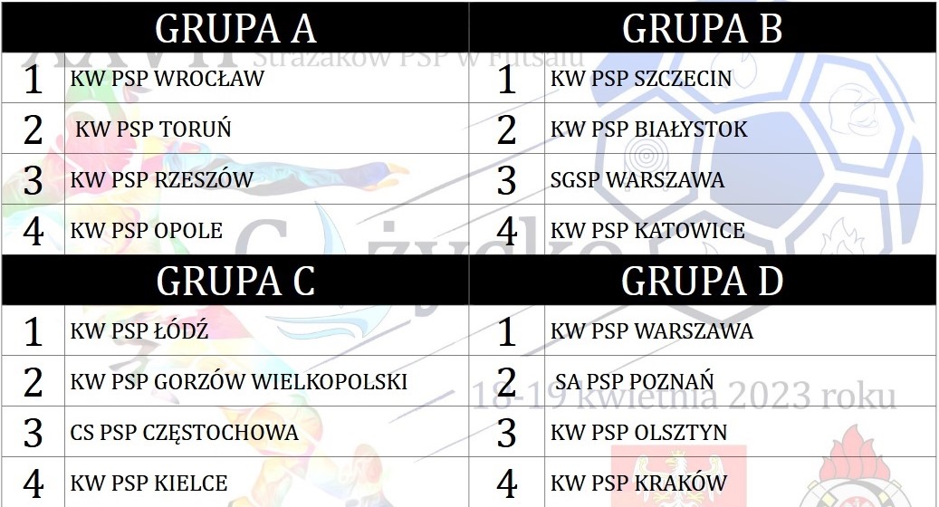 XXVII Mistrzostwa Polski strażaków PSP w Futsalu – losowanie grup