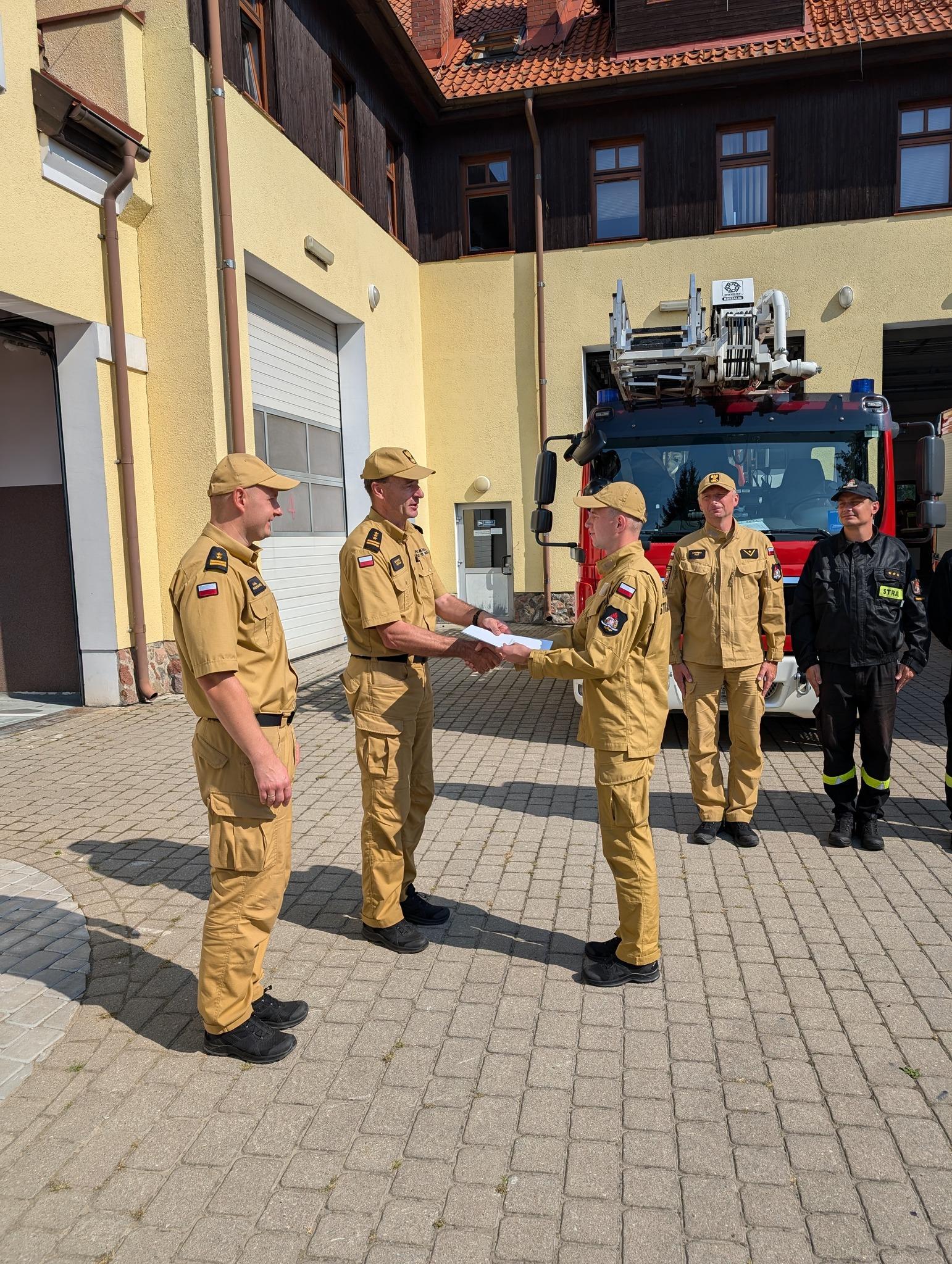 W trakcie wizytacji Zastępca Warmińsko-Mazurskiego Komendanta Wojewódzkiego PSP wręczył nagrodę przyznaną przez Komendanta Głównego Państwowej Straży Pożarnej nadbryg. Mariusza Feltynowskiego str. Marcinowi Waszkiewiczowi za zaangażowanie w wykonywaniu zadań służbowych.