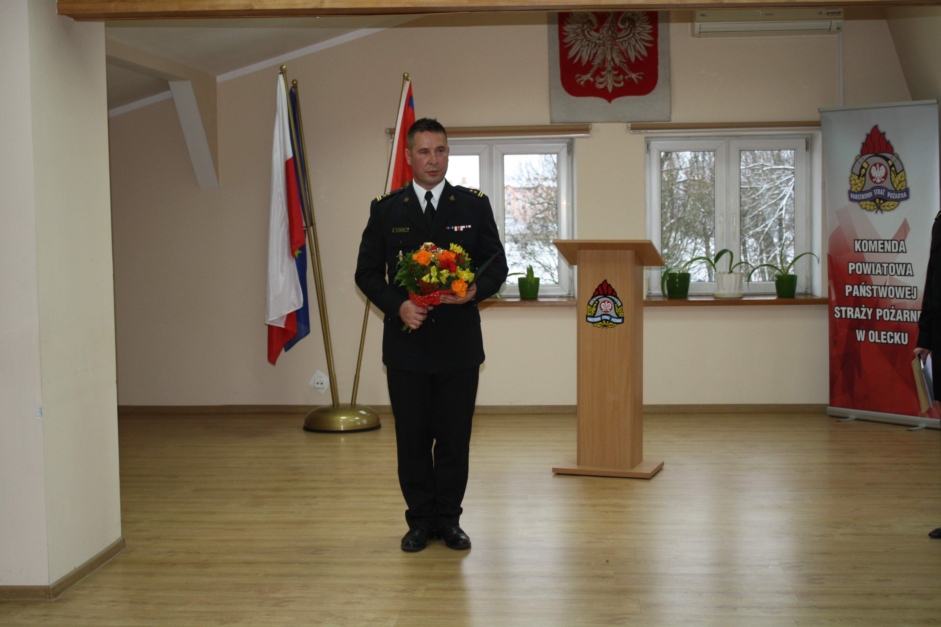 W uroczystości udział wzięli: Pan Wojciech Kossakowski – Poseł na Sejm RP, nadbryg. Tomasz Komoszyński – Warmińsko-Mazurski Komendant Wojewódzki PSP, przedstawiciele władz samorządowych na czele z Panią Marzanną Pojawą-Grajewską – Starostą Oleckim oraz funkcjonariusze i pracownicy cywilny KP PSP w Olecku.
