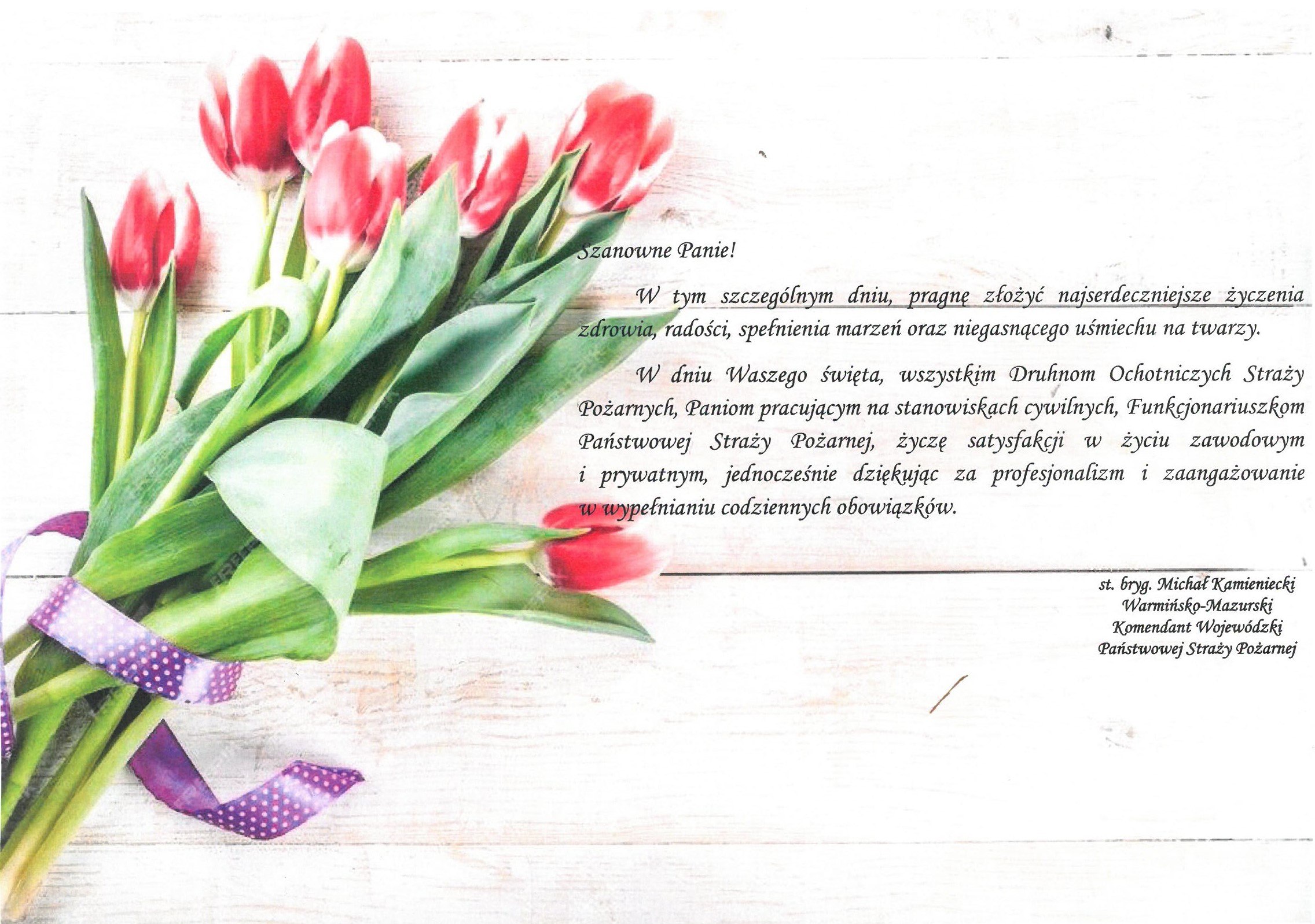 Życzenia Warmińsko-Mazurskiego Komendanta Wojewódzkiego PSP z okazji Dnia Kobiet 08.03.2024 Zdjęcia (1) Pokaż zdjęcie 1 z galerii.