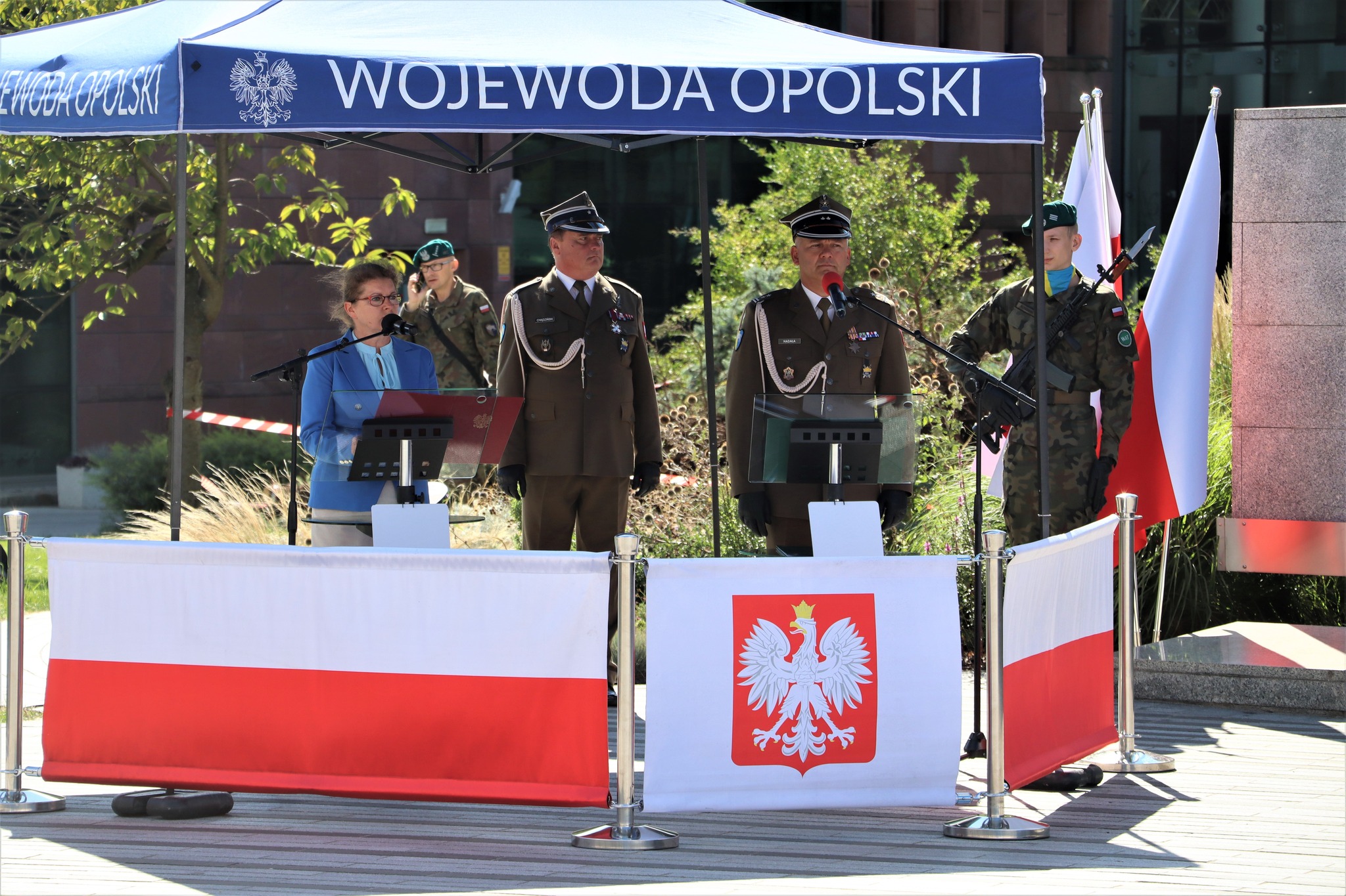 Opolski Komendant Wojewódzki PSP w Opolu st. bryg. Krzysztof Kędryk wziął udział w opolskich uroczystościach upamiętniających 83. rocznicę wybuchu II Wojny Światowej na Placu Wolności w Opolu.