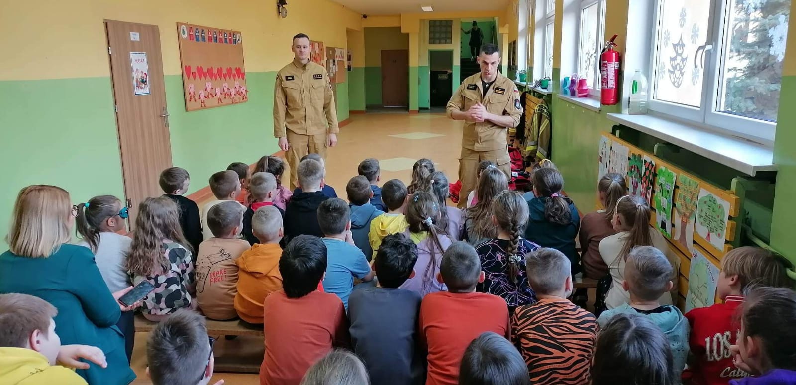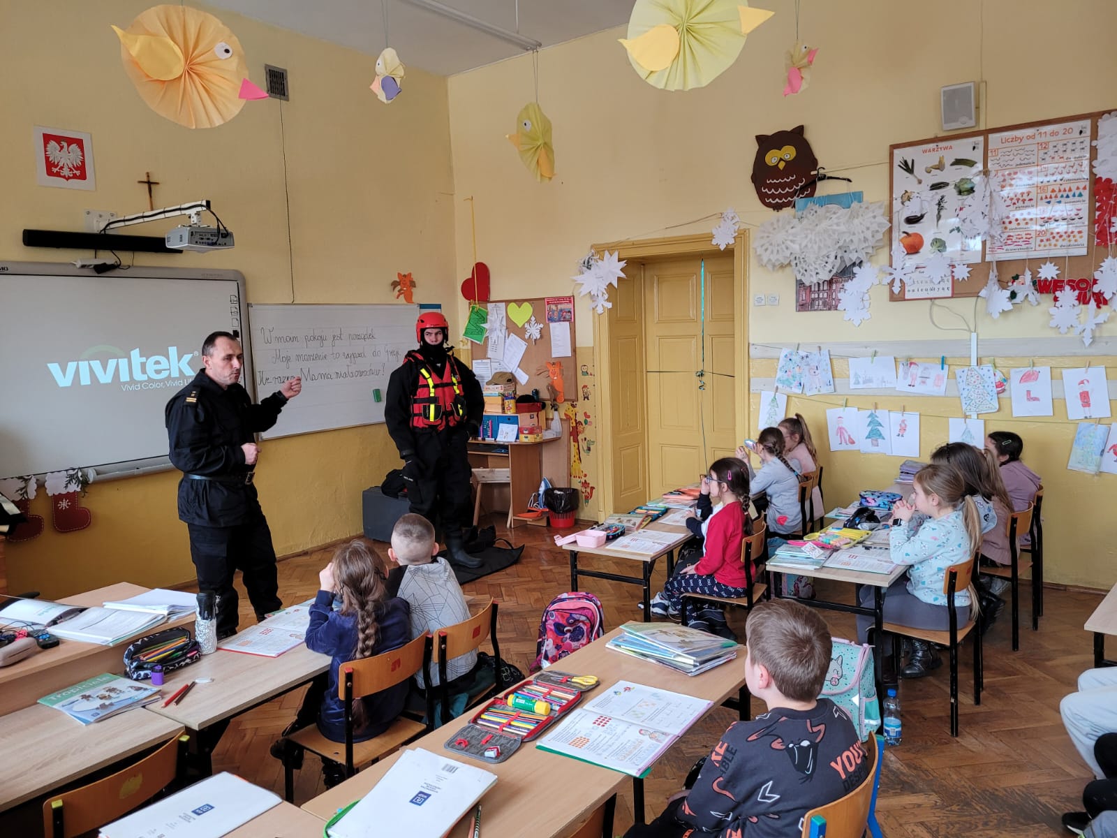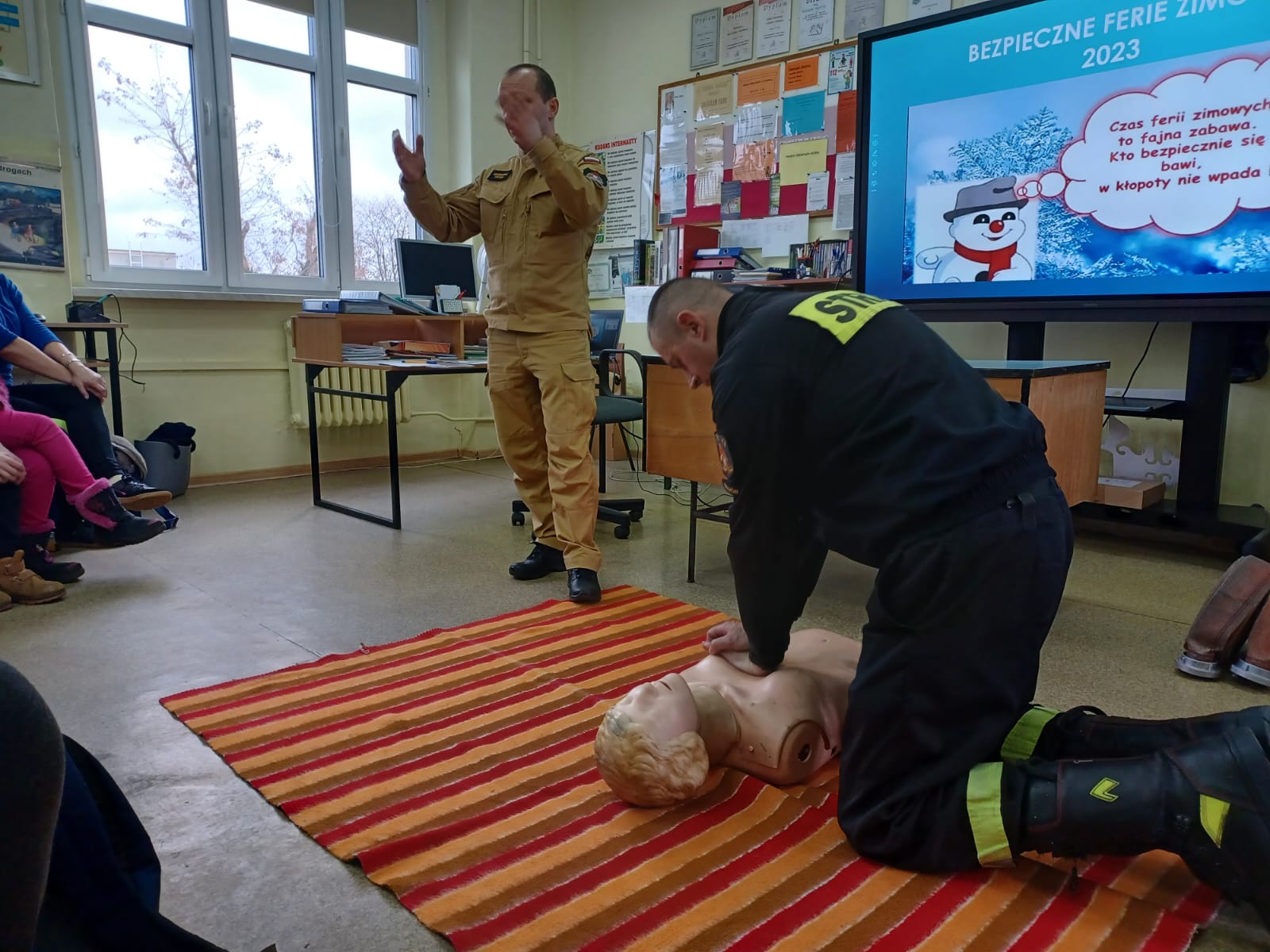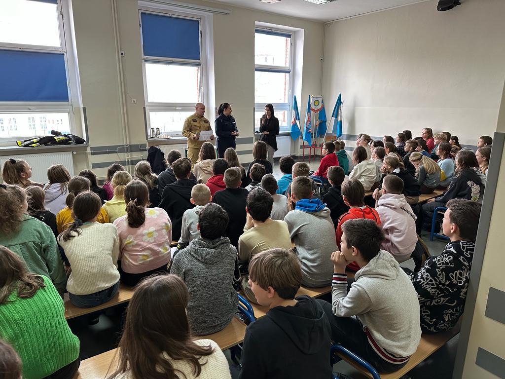 Od połowy stycznia strażacy wspólnie z policjantami odwiedzali placówki edukacyjne oraz zapraszali do swoich remiz dzieci i młodzież na spotkania, na których omawiano podstawowe zasady zachowania podczas zimowej zabawy i wypoczynku. Zwracano uwagę na niebezpieczeństwa związane z wejściem na zamarznięte akweny i zbiorniki oraz omówiono zasady udzielania pierwszej pomocy. Sporym zainteresowaniem cieszył się sprzęt ratowniczy, który strażacy prezentowali podczas przedmiotowych spotkań i pogadanek.